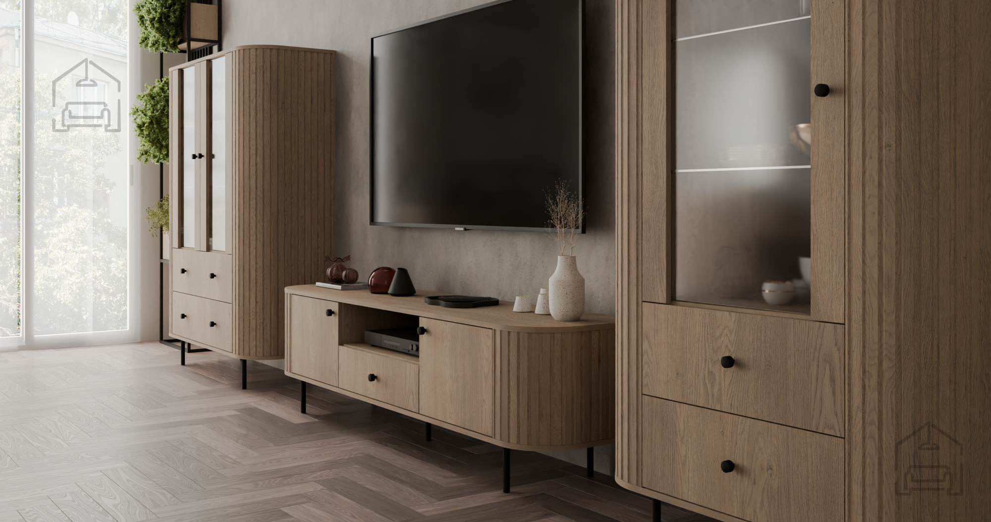 Das Wohnzimmer-Set Ovalio wird in Polen gefertigt – in der modernen Produktionsstätte von Stolarz-Lempert, die auf eine lange Tradition und präzise Holzverarbeitung zurückblickt. Die polnische Möbelindustrie ist bekannt für Qualität und Genauigkeit, sodass Sie ein Produkt erhalten, das ästhetische Raffinesse und Zuverlässigkeit vereint. Jedes Element ist benutzerfreundlich konzipiert – mit einfacher Montage, stabiler Konstruktion und durchdachten Details.