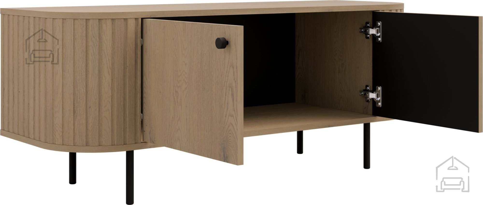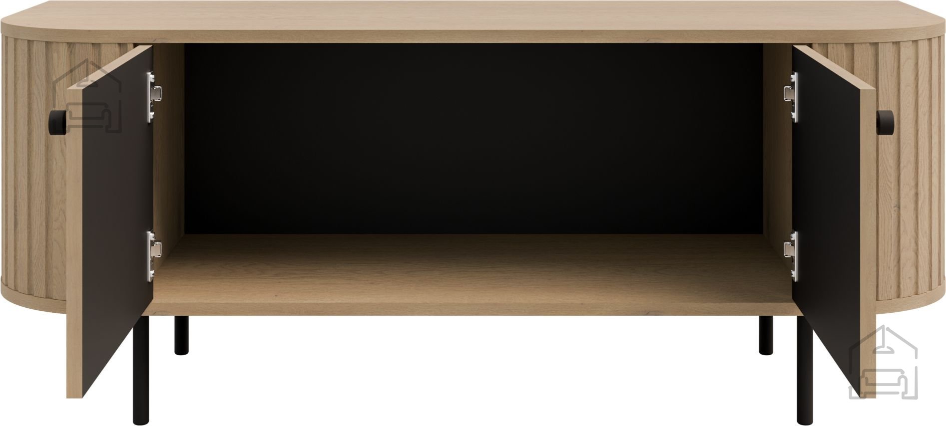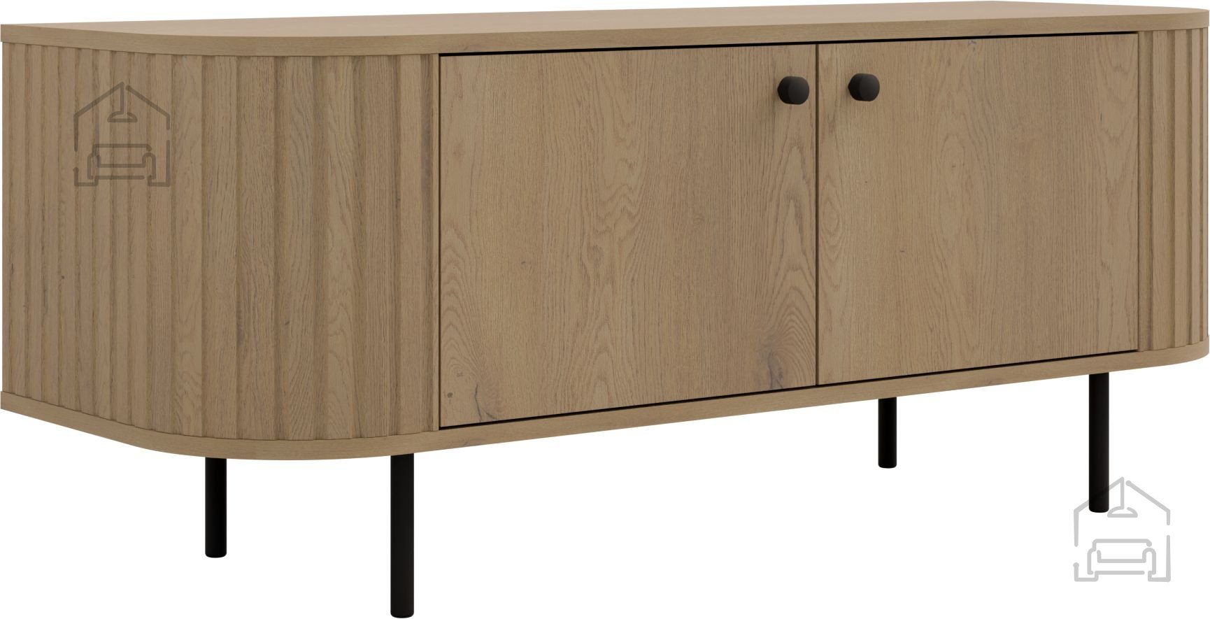 Das RTV‑Sideboard 2F Ovalio wurde für die praktische Aufbewahrung und Organisation von Multimedia‑Geräten konzipiert. Mit einer Breite von 123 cm bietet es sicheren Halt für den Fernseher, während die Tiefe von 42,3 cm ausreichend Platz für Abspielgeräte, Konsolen oder Soundsysteme schafft. Die Höhe von 50 cm sorgt für eine angenehme Sichtposition vom Sofa oder Sessel aus. Zwei geschlossene Schubladen bieten Stauraum für Kabel, Fernbedienungen und weiteres Zubehör – so bleibt das Wohnzimmer stets ordentlich.