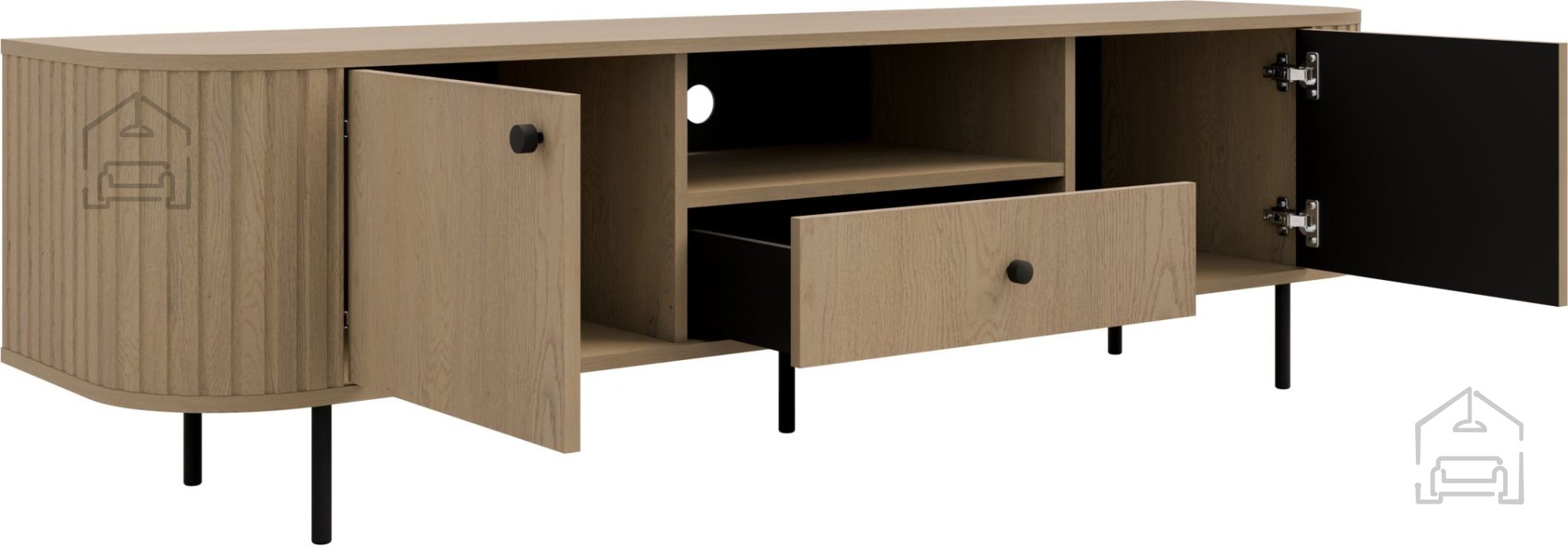 Das TV-Lowboard 2F1S Ovalio – Stolarz-Lempert ist die ideale Wahl für alle, die Wert auf ein stimmiges Zusammenspiel von Design, Funktionalität und Verarbeitungsqualität legen. Mit seiner schlichten, aber eleganten Form und der natürlichen Farbgebung passt es mühelos zu verschiedenen Wohnstilen und wird zum unverzichtbaren Bestandteil eines modernen Zuhauses. Die stabile Bauweise und die durchdachte Stauraumgestaltung sorgen dafür, dass Sie lange Freude daran haben – mit einem ansprechenden Look und einem Gefühl von Wärme und Behaglichkeit.