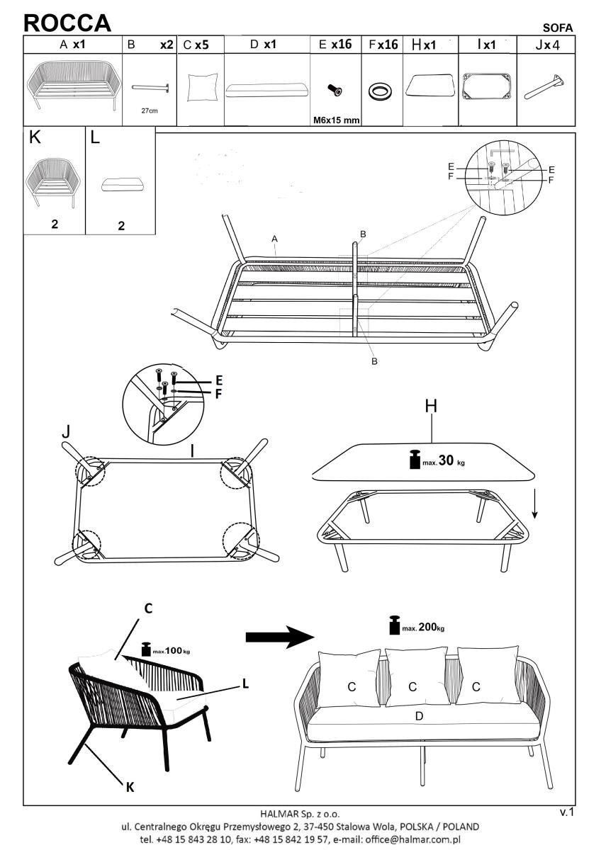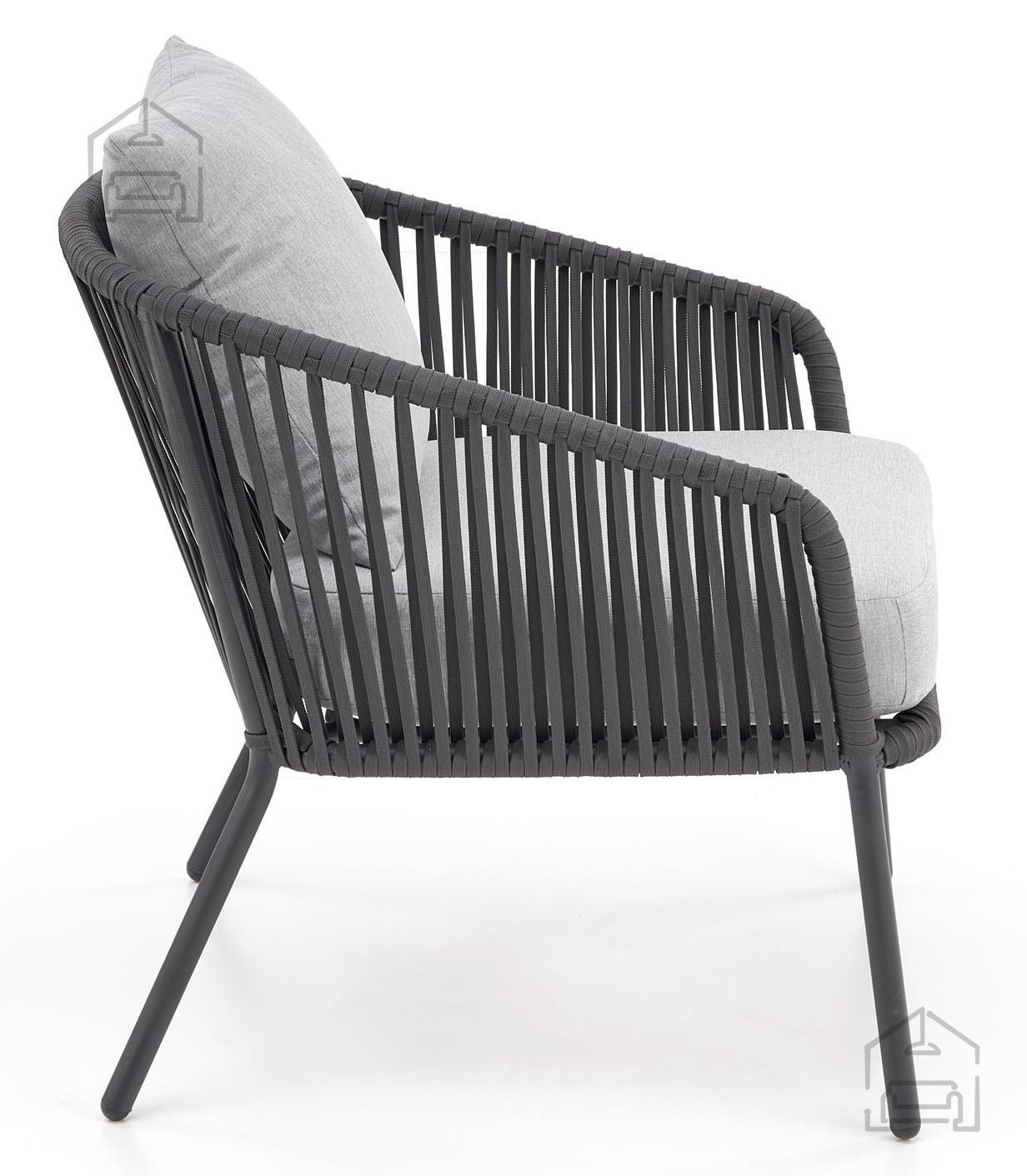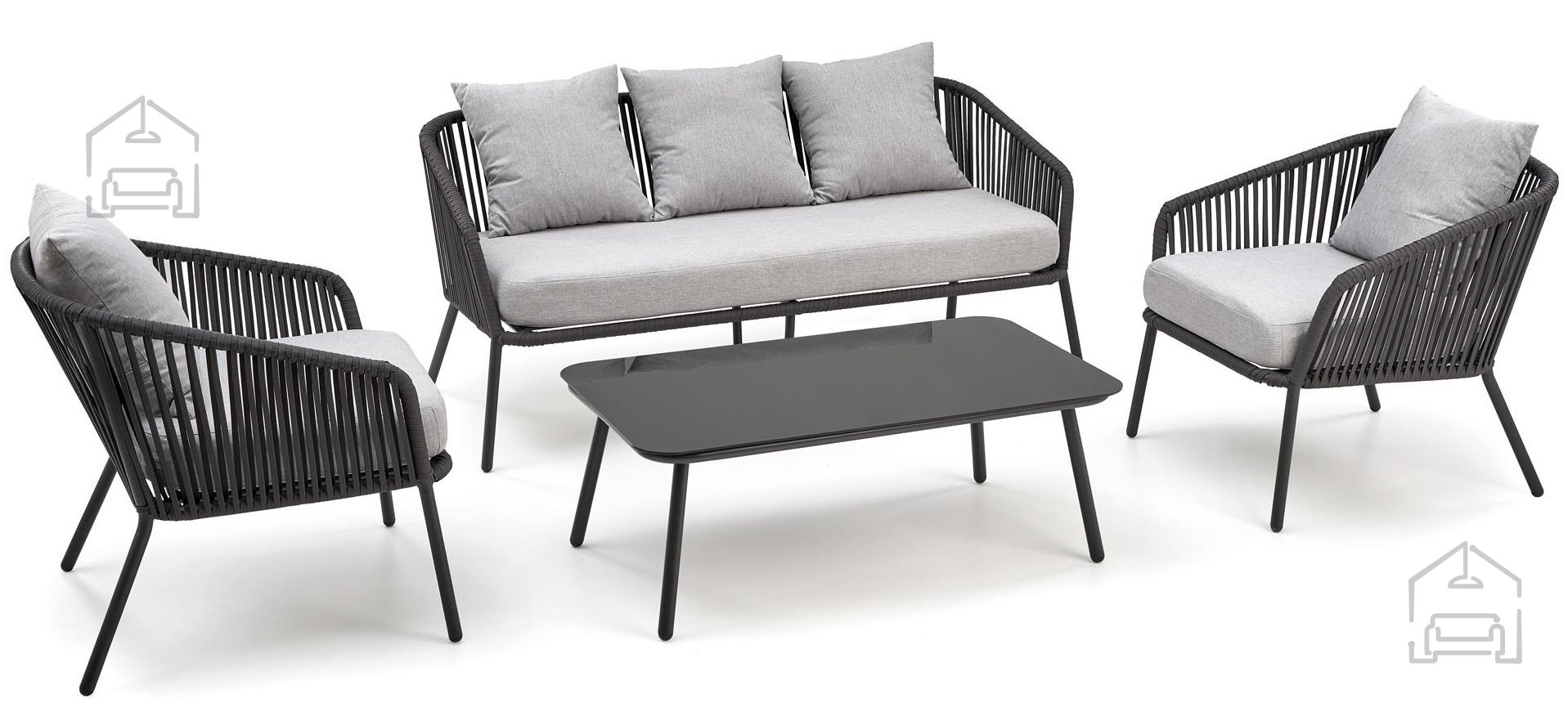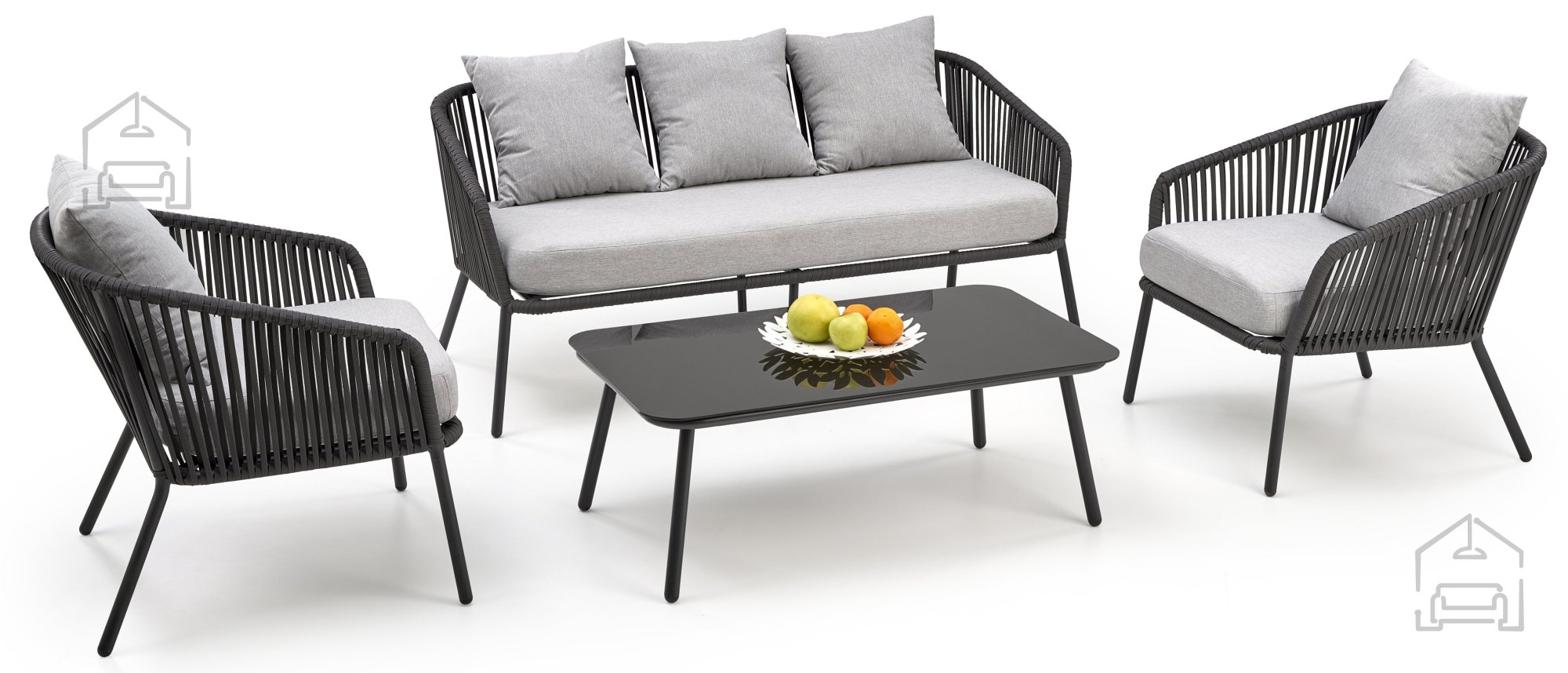 Das Gartenmöbel-Set Rocca – Halmar ist die ideale Wahl für alle, die ihren Außenbereich in eine gemütliche Wohlfühloase zum Entspannen und Zusammensitzen verwandeln möchten. Die Kombination aus pulverbeschichtetem Aluminium, hochwertigem Stoff sowie eleganten Details aus Seil und Glas schafft ein harmonisches Gleichgewicht zwischen Funktionalität und Ästhetik. Das Set besteht aus einem Sofa, zwei Sesseln und einem Couchtisch – eine gelungene Mischung aus Großzügigkeit und Kompaktheit, die sowohl auf einer geräumigen Terrasse als auch auf einem kleineren Balkon perfekt zur Geltung kommt.
