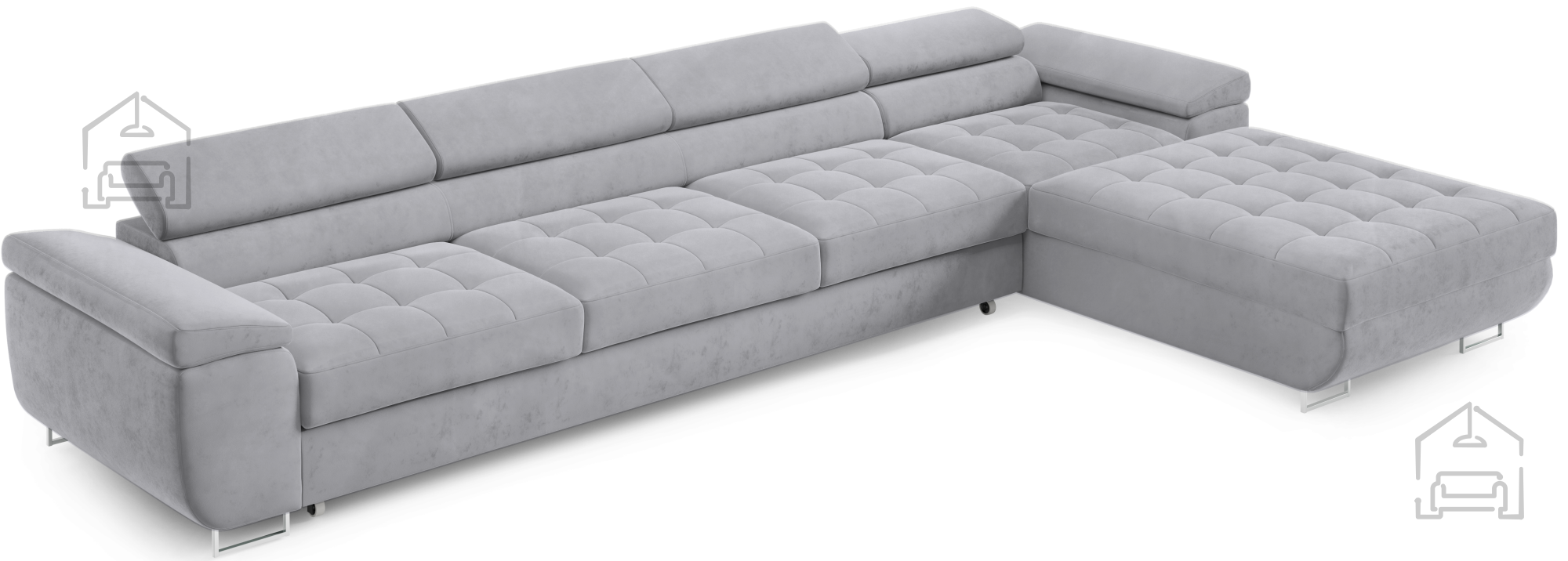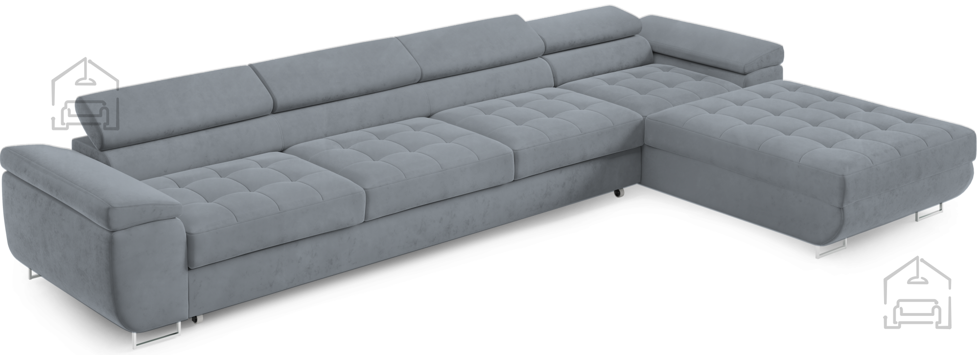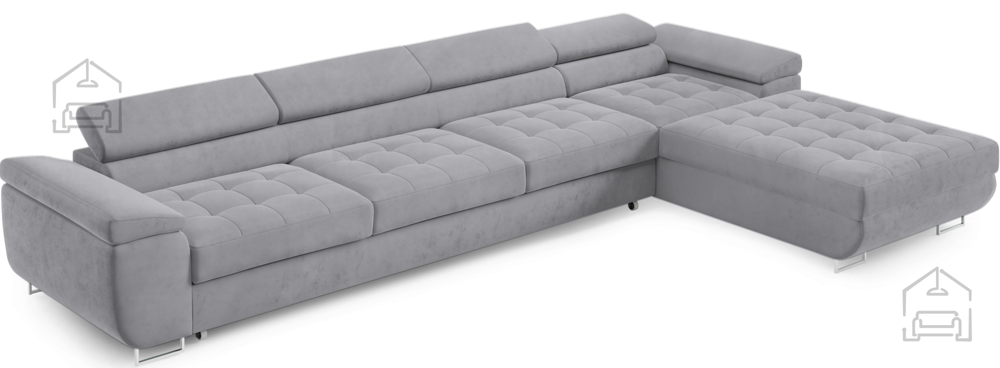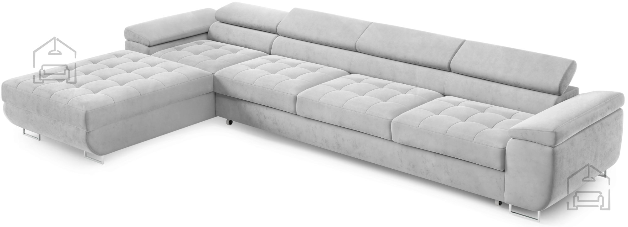 Für zusätzlichen Komfort im Alltag sorgen die verstellbaren Kopfstützen, mit denen sich Höhe und Neigung individuell anpassen lassen. So findet jeder seine ideale Position zum Entspannen, Fernsehen oder Lesen. Durchdacht in der Gestaltung, verfügt die Garnitur außerdem über einen großzügigen Bettkasten, in dem sich Decken, Kissen oder andere Accessoires praktisch verstauen lassen – besonders nützlich in kleineren Wohnungen, wo Stauraum immer willkommen ist.