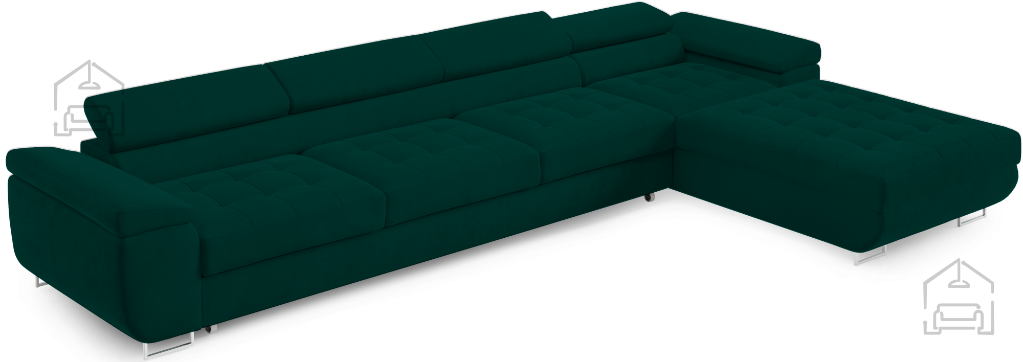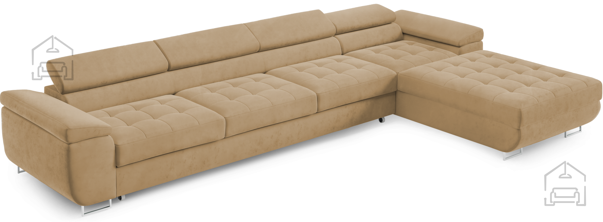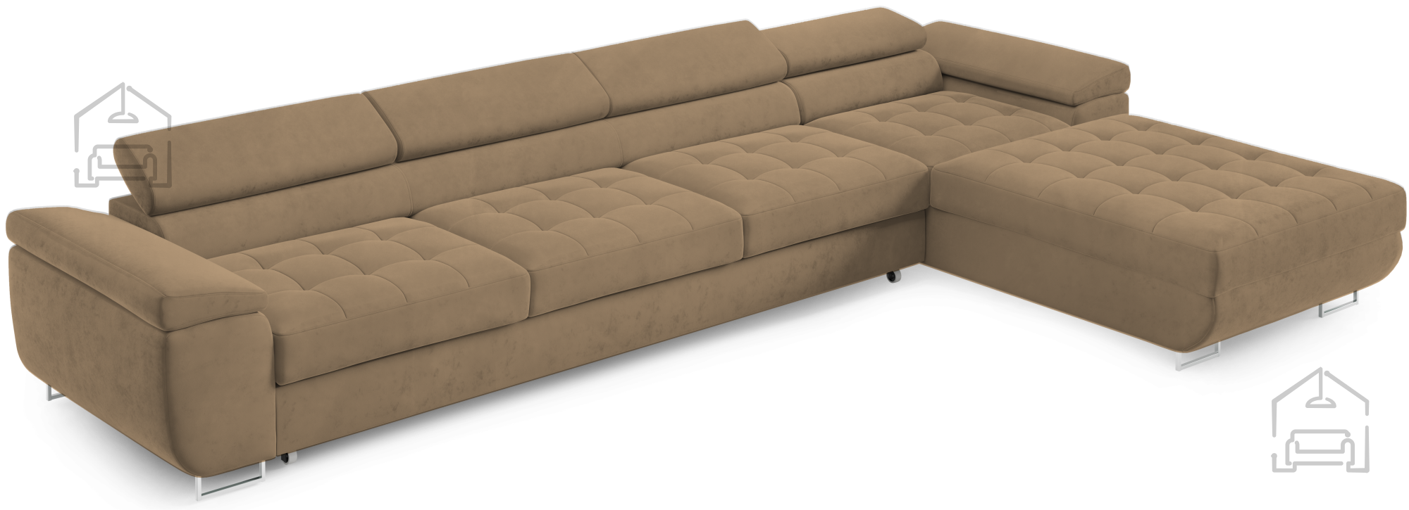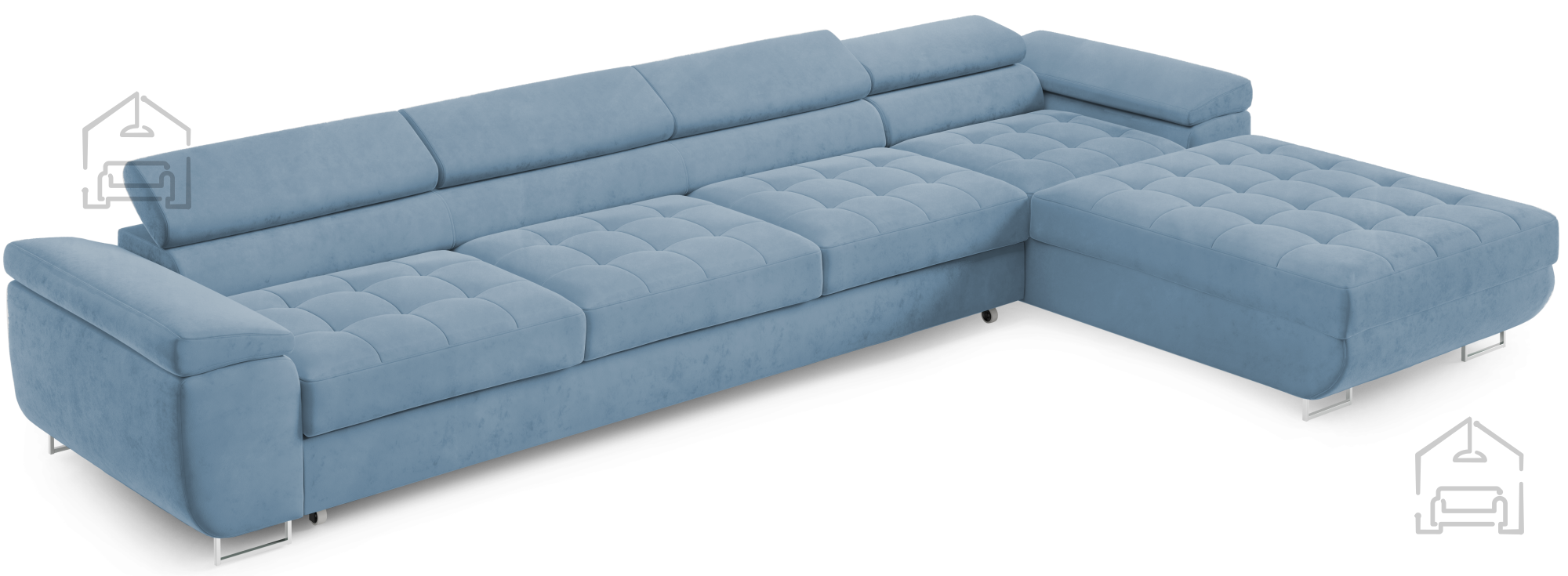 Für zusätzlichen Komfort im Alltag sorgen die verstellbaren Kopfstützen, mit denen sich Höhe und Neigung individuell anpassen lassen. So findet jeder seine ideale Position zum Entspannen, Fernsehen oder Lesen. Durchdacht in der Gestaltung, verfügt die Garnitur außerdem über einen großzügigen Bettkasten, in dem sich Decken, Kissen oder andere Accessoires praktisch verstauen lassen – besonders nützlich in kleineren Wohnungen, wo Stauraum immer willkommen ist.