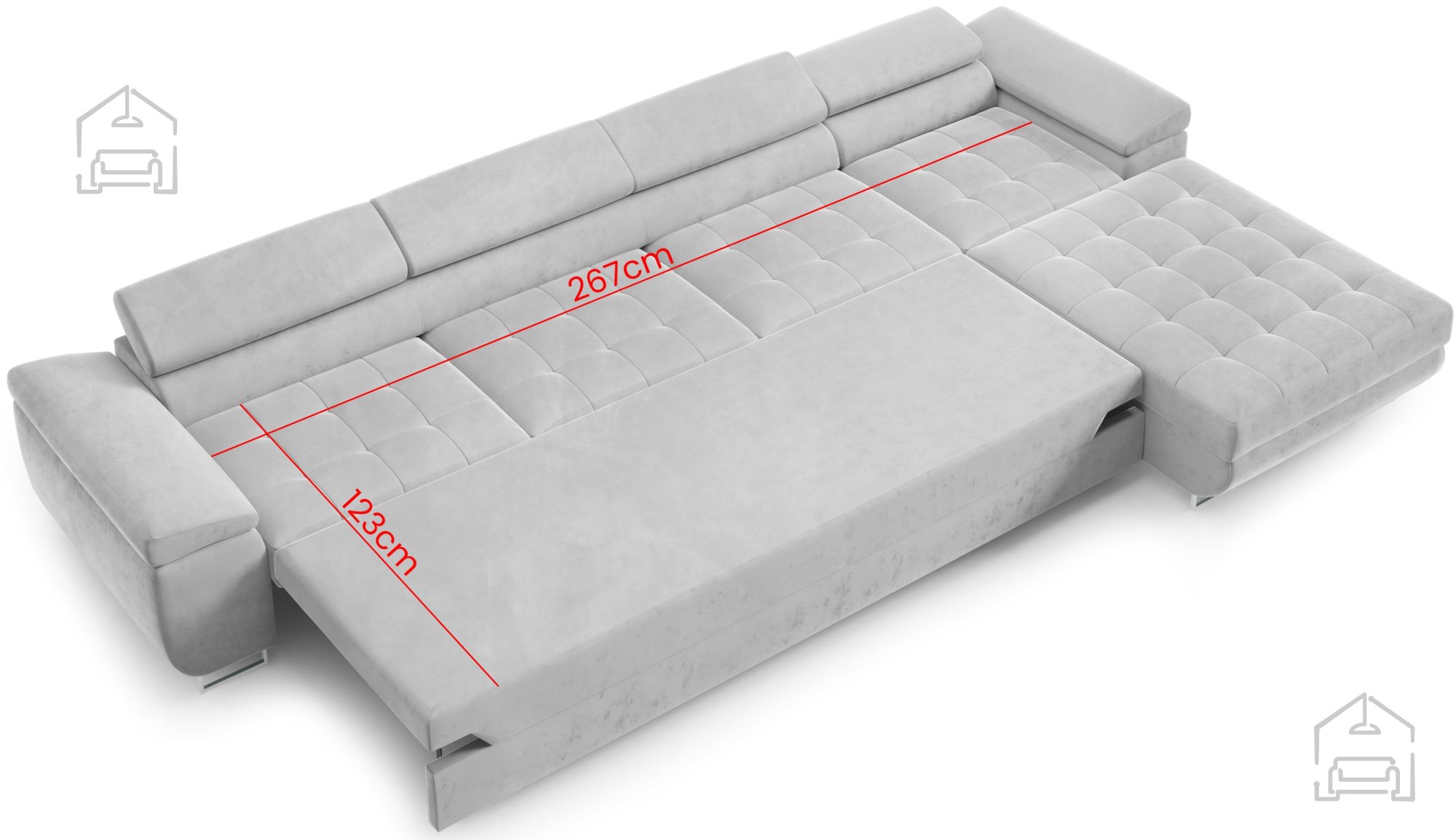 Ein besonderes Highlight der Benjamin 155 XL ist der integrierte Dolphin-Mechanismus. Dieses bewährte System ermöglicht es, die Couch mit wenigen Handgriffen in ein Bett zu verwandeln – ganz ohne großen Aufwand. Der untere Teil wird einfach nach vorne gezogen und anschließend angehoben, sodass eine gerade Liegefläche entsteht. Das Bettmaß von 125×250 cm bietet ausreichend Platz für zwei Personen und macht die Couch zu einer praktischen Schlafgelegenheit für Gäste.