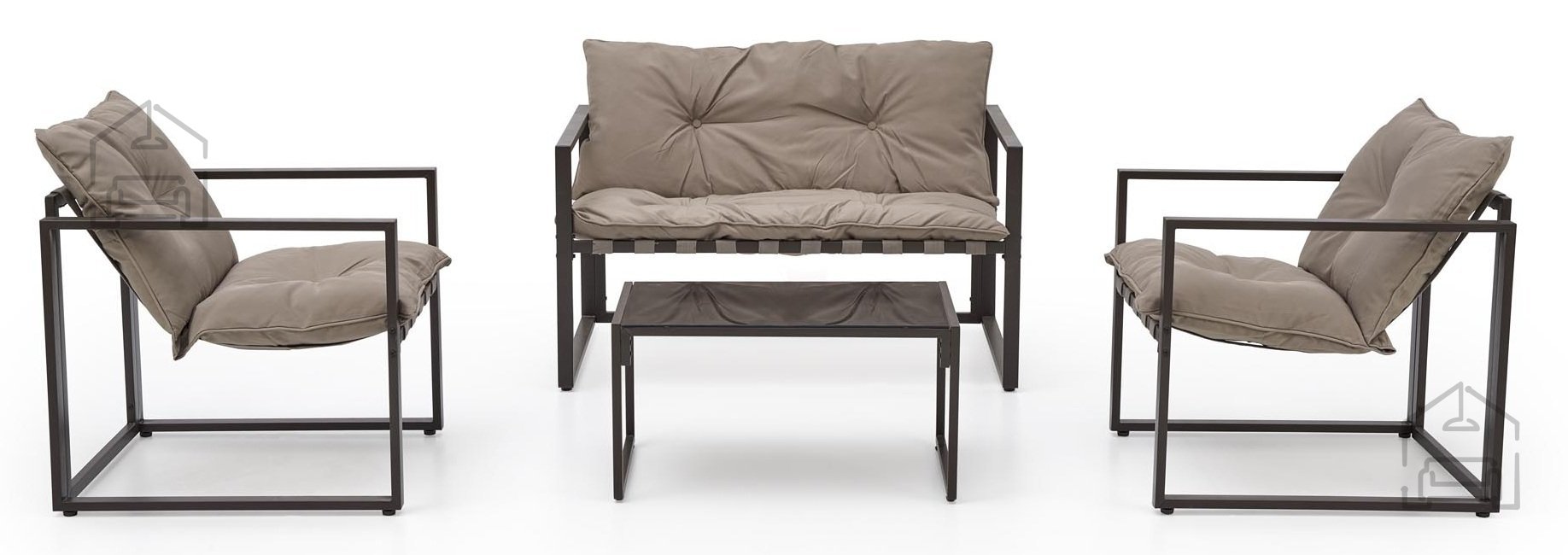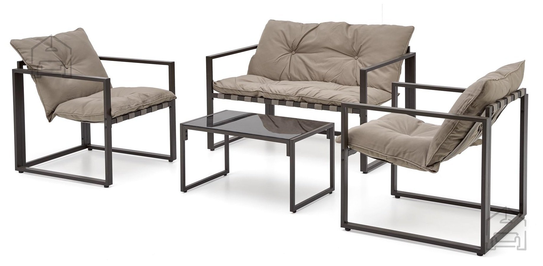 Das Gartenmöbel-Set Shark – Halmar ist die perfekte Wahl für alle, die eine elegante und zugleich robuste Lösung für entspannte Stunden im Freien suchen. Die Kombination aus pulverbeschichtetem Stahl, Glas und hochwertigem Stoff in Dunkelbraun–Cappuccino sorgt für ein harmonisches Gesamtbild, das sowohl im Garten als auch auf der Terrasse oder dem Balkon eine gute Figur macht. Das Set besteht aus einem Sofa, zwei Sesseln und einem Couchtisch – ideal für gemütliches Sitzen und geselliges Beisammensein an der frischen Luft.