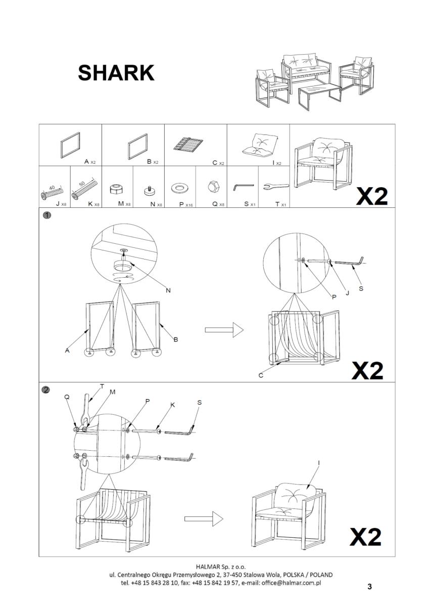 Das Gartenmöbel-Set Shark wird in der Fabrik von Halmar in Polen gefertigt – ein Garant für geprüfte Qualität und sorgfältige Verarbeitung. Halmar ist eine bekannte Marke im Bereich der Innen- und Außeneinrichtung und steht für modernes Design kombiniert mit praktischer Funktionalität. Ihre Produkte zeichnen sich durch hochwertige Materialien, Liebe zum Detail und eine lange Lebensdauer aus.