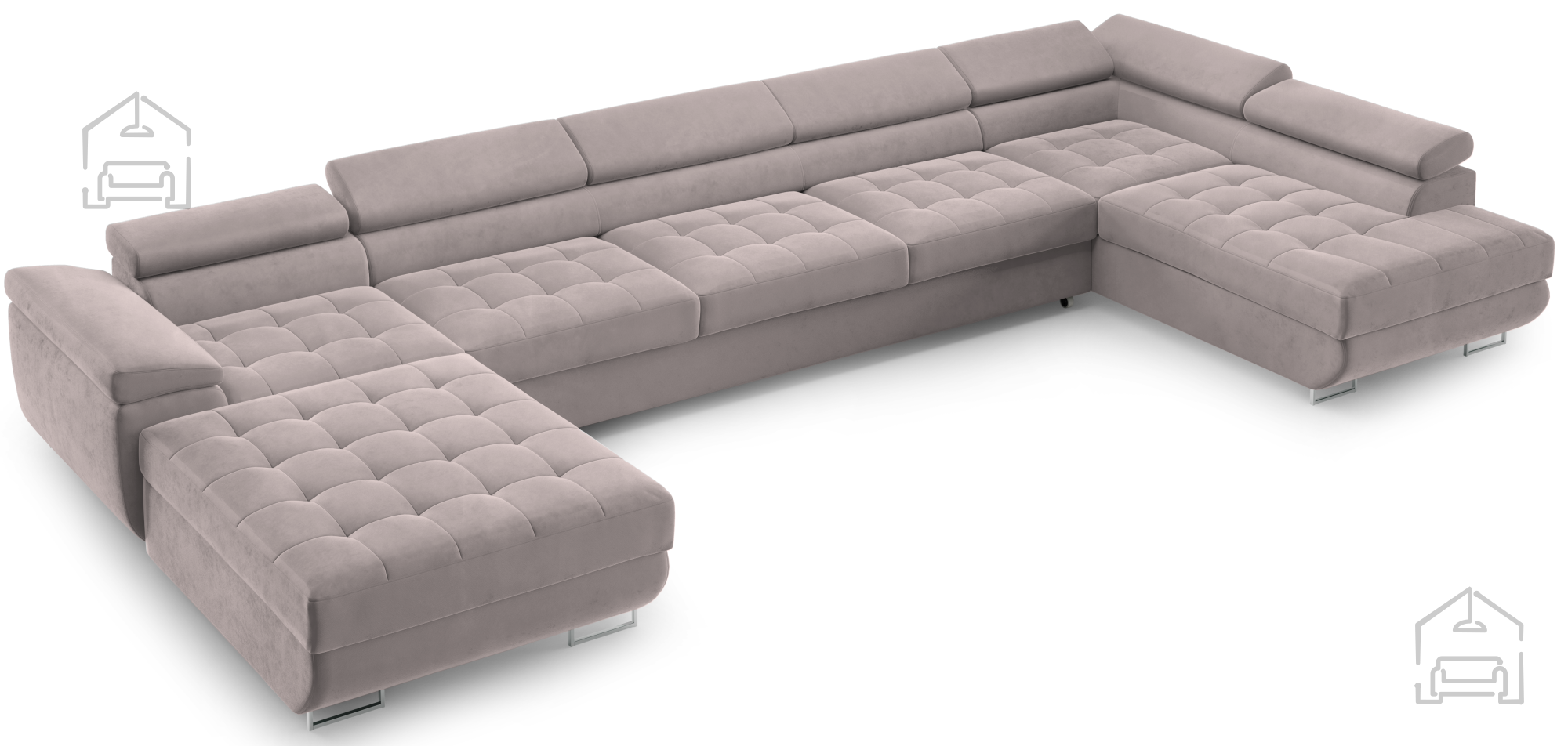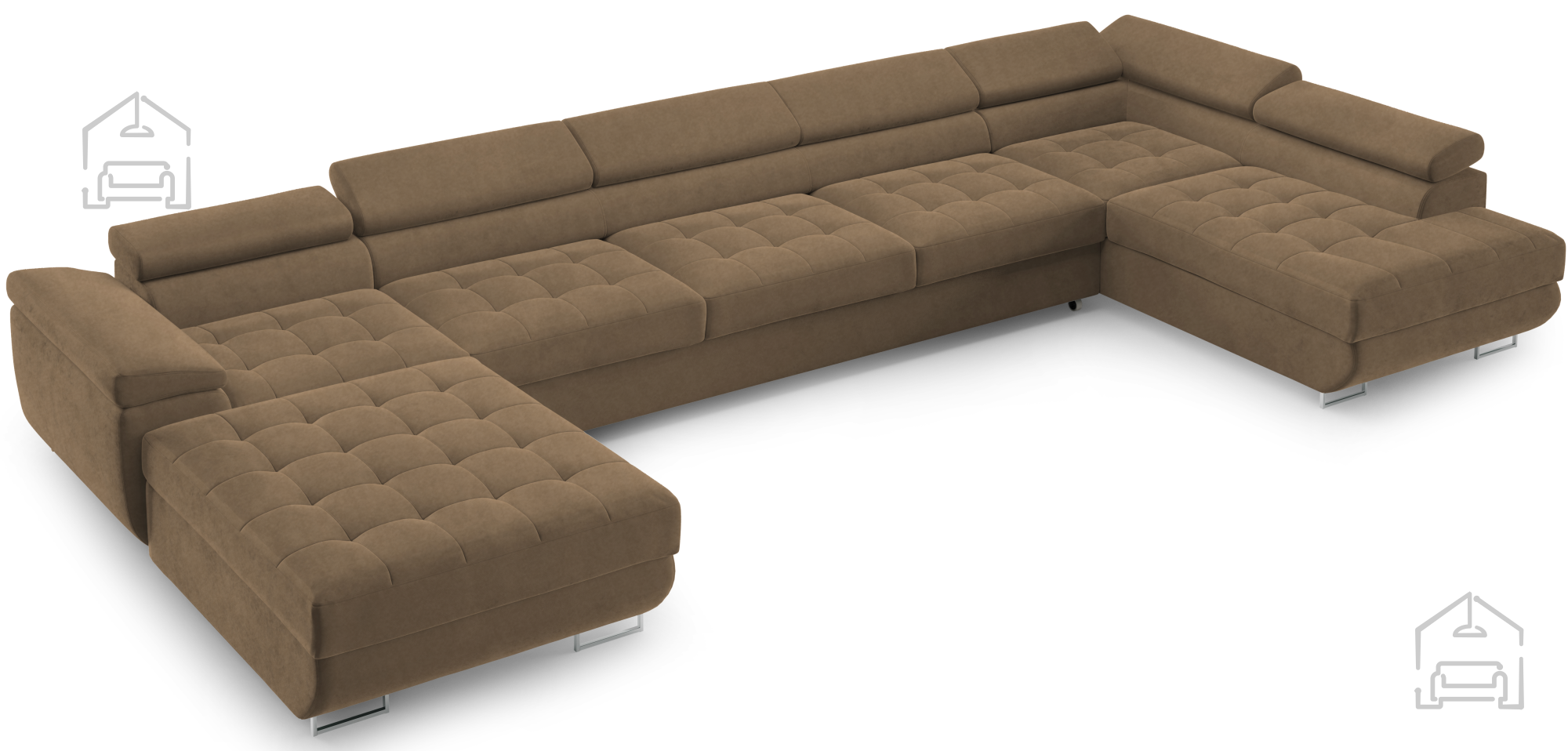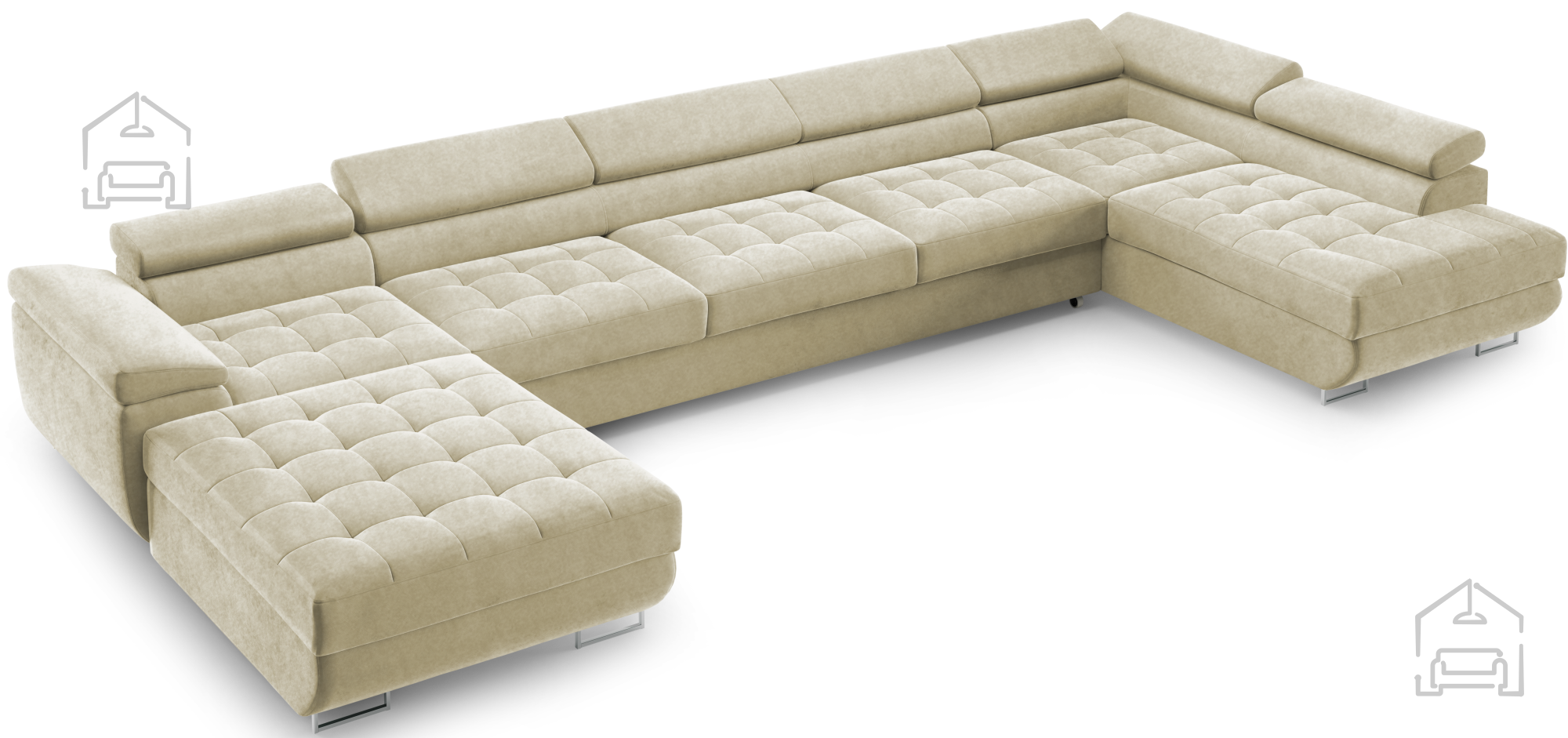 Das Wave-Spring-Federkernsystem verhindert ein Einsinken der Sitzfläche und sorgt für gleichmäßigen Komfort. Die Polsterschicht darüber verleiht zusätzliche Weichheit und ein angenehmes Sitz- und Liegegefühl. Die verstellbaren Kopfstützen bieten ergonomische Unterstützung für Nacken und Kopf – ein Pluspunkt für entspanntes Sitzen. So entsteht ein Möbelstück, das nicht nur optisch überzeugt, sondern auch im Alltag höchste Bequemlichkeit bietet.
