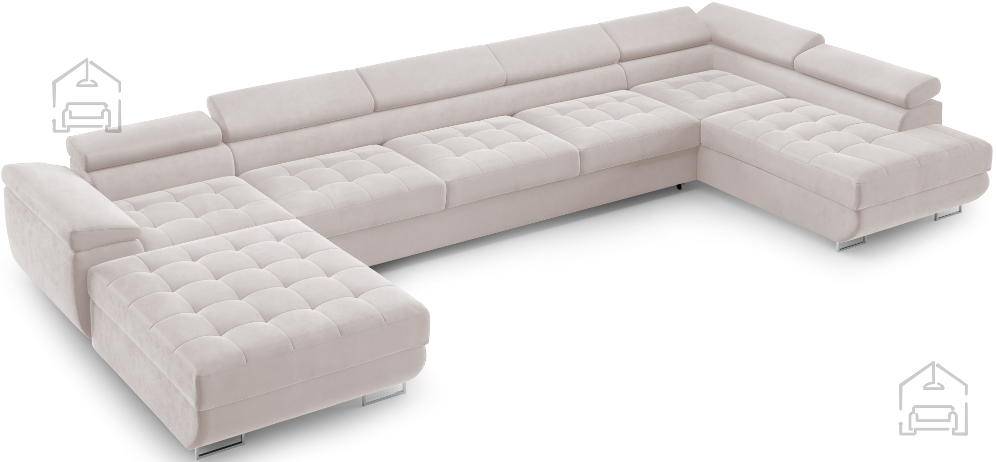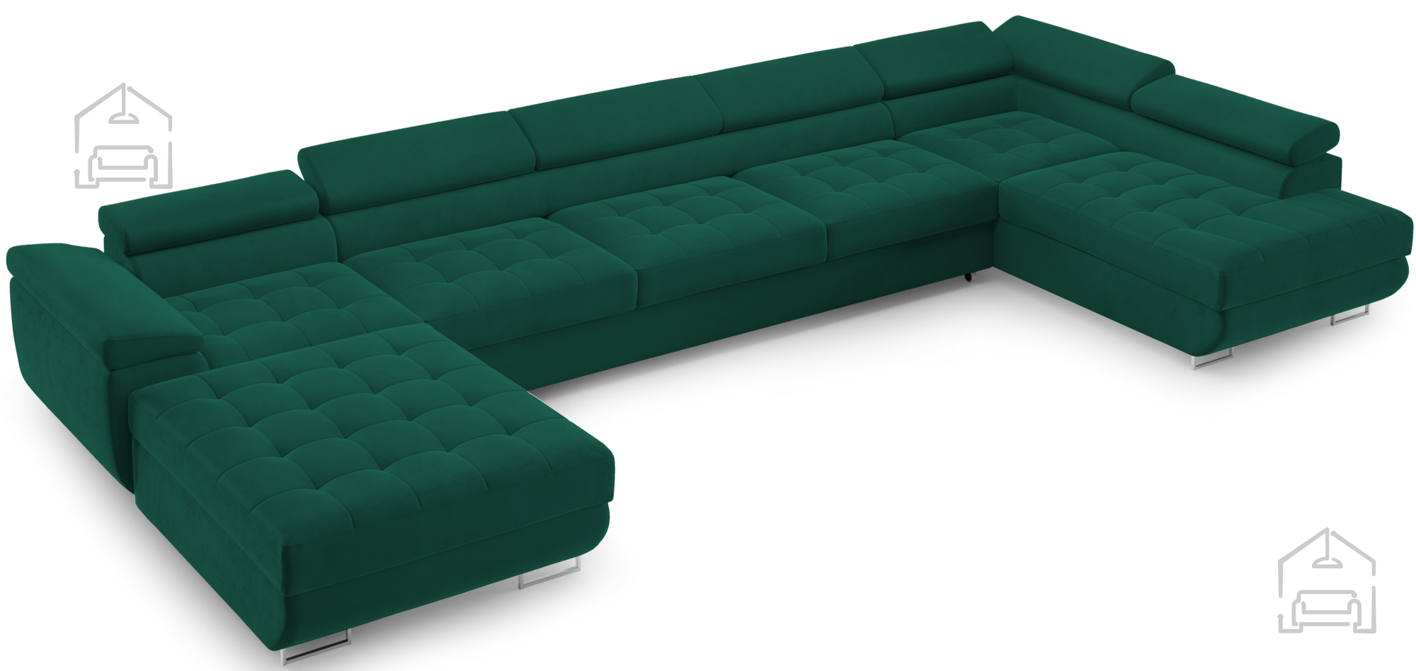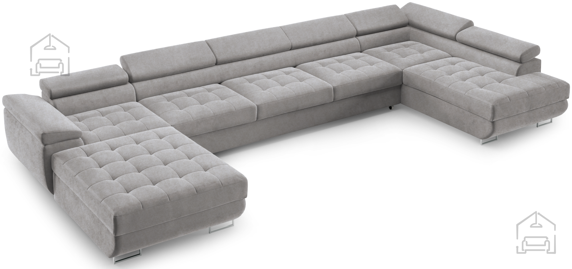 Das Wave-Spring-Federkernsystem verhindert ein Einsinken der Sitzfläche und sorgt für gleichmäßigen Komfort. Die Polsterschicht darüber verleiht zusätzliche Weichheit und ein angenehmes Sitz- und Liegegefühl. Die verstellbaren Kopfstützen bieten ergonomische Unterstützung für Nacken und Kopf – ein Pluspunkt für entspanntes Sitzen. So entsteht ein Möbelstück, das nicht nur optisch überzeugt, sondern auch im Alltag höchste Bequemlichkeit bietet.