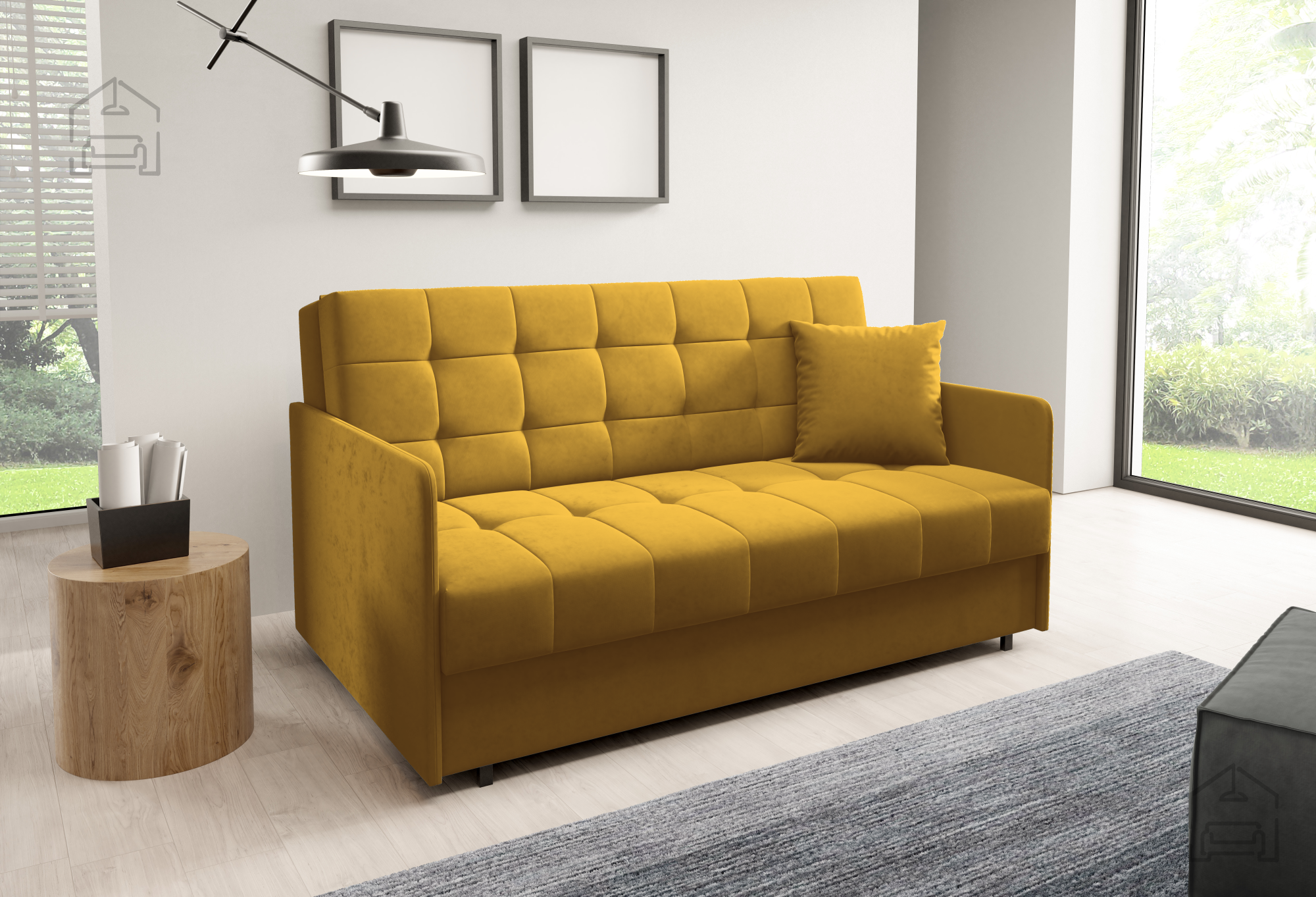 Das elegante Zweisitzer-Sofa Sally 4 von PKMebel vereint Funktionalität, Komfort und eine einfache Umwandlung in ein Bett. Dieses Modell wurde als ideale Lösung für kleinere Räume, Jugendzimmer oder Gästeapartments entwickelt, wo jedes Detail zählt. Dank des Teleskopmechanismus lässt sich Sally 4 mühelos in ein bequemes Bett mit einer Liegefläche von 150x196 cm verwandeln – perfekt für erholsamen Schlaf zu zweit.
