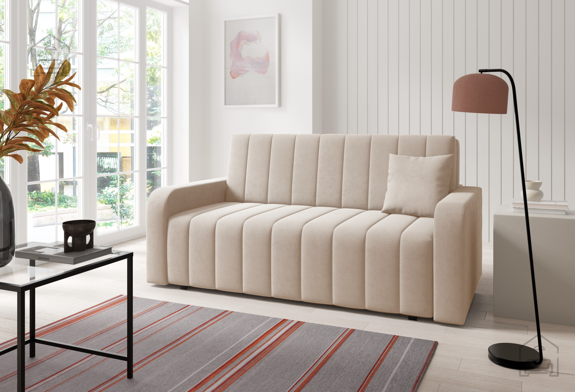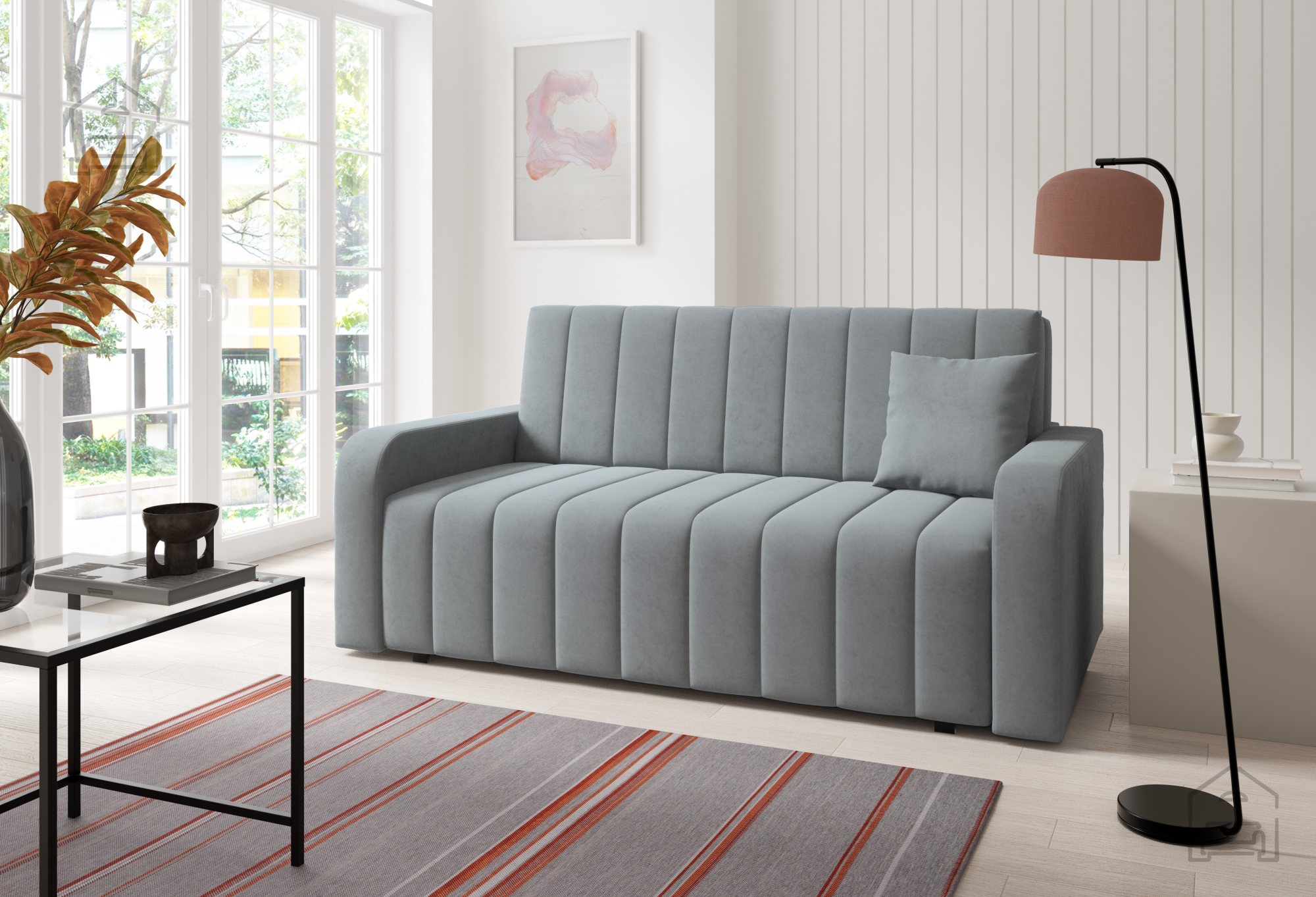 Das Zweisitzer-Sofa Marko 4 der Marke PKMebel vereint praktische Funktionalität, hohen Komfort und ein ansprechendes Design. Dieses hochwertig verarbeitete Möbelstück mit den Maßen 175x97x85 cm bietet ausreichend Platz zum Entspannen – ob im Wohnzimmer oder im Jugendzimmer. Dank des Teleskop-Mechanismus lässt sich das Sofa im Handumdrehen zu einem Bett mit einer Liegefläche von 150x196 cm ausziehen – ideal für eine oder zwei Personen. Der integrierte Bettkasten schafft zusätzlichen Stauraum für Decken, Pölster oder andere Textilien.