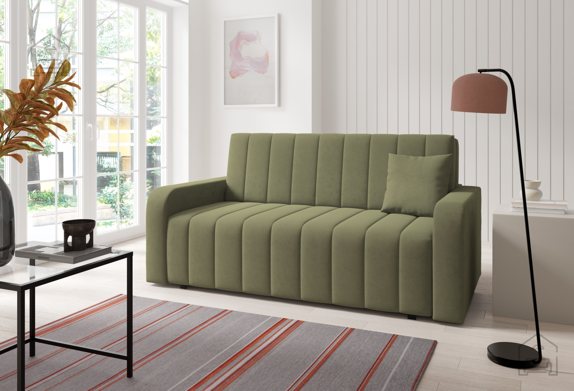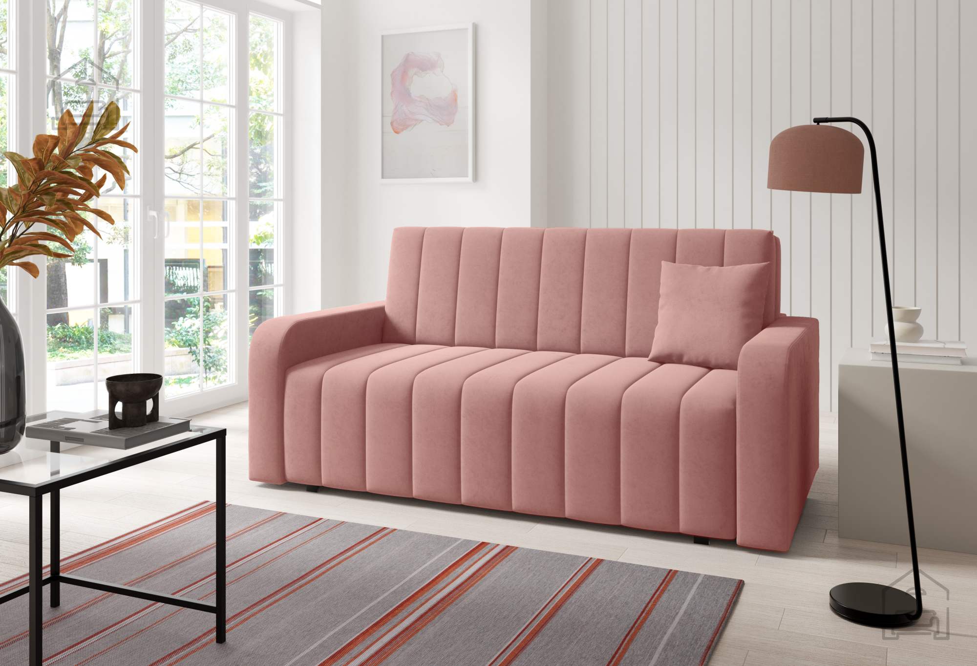 Auf dem Foto ist der Zweisitzer im Stoff Kronos 09 gezeigt – ein weiches, samtähnliches Material, das sich durch hohe Strapazierfähigkeit und Abriebfestigkeit auszeichnet. Damit ist es ideal für Familien mit Kindern oder Haustieren. Farbe und Struktur des Stoffes passen zu vielen Einrichtungsstilen, von modern bis klassisch. Neben der abgebildeten Variante ist das Sofa auch in weiteren Farben erhältlich, sodass es sich leicht an den persönlichen Geschmack und das bestehende Interieur anpassen lässt.