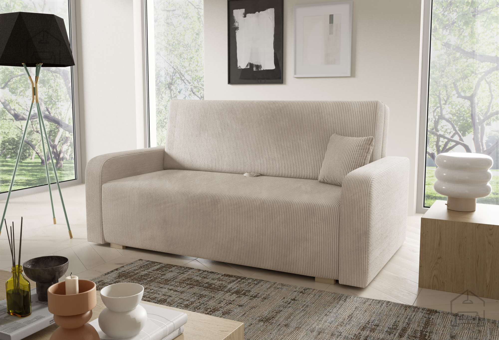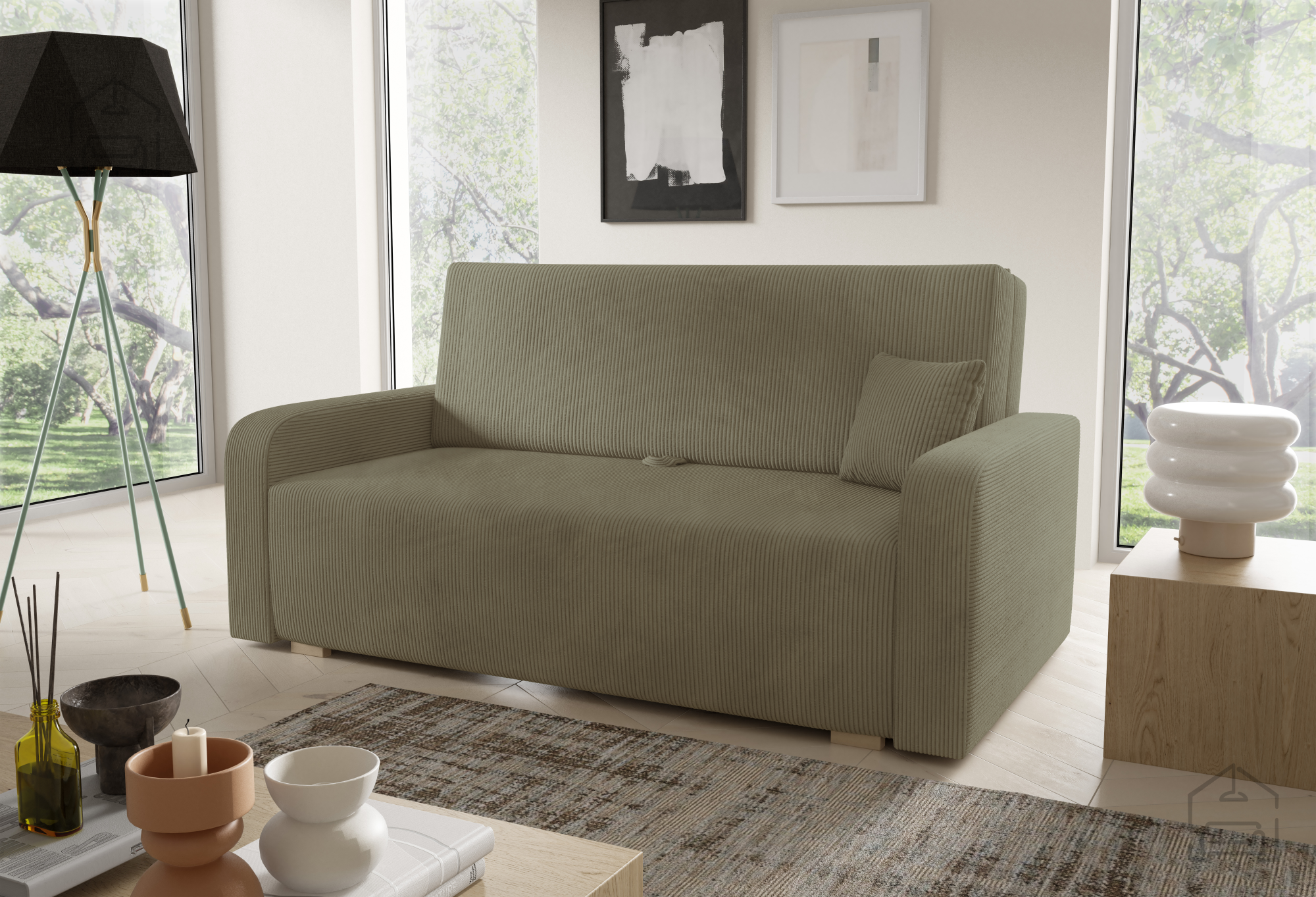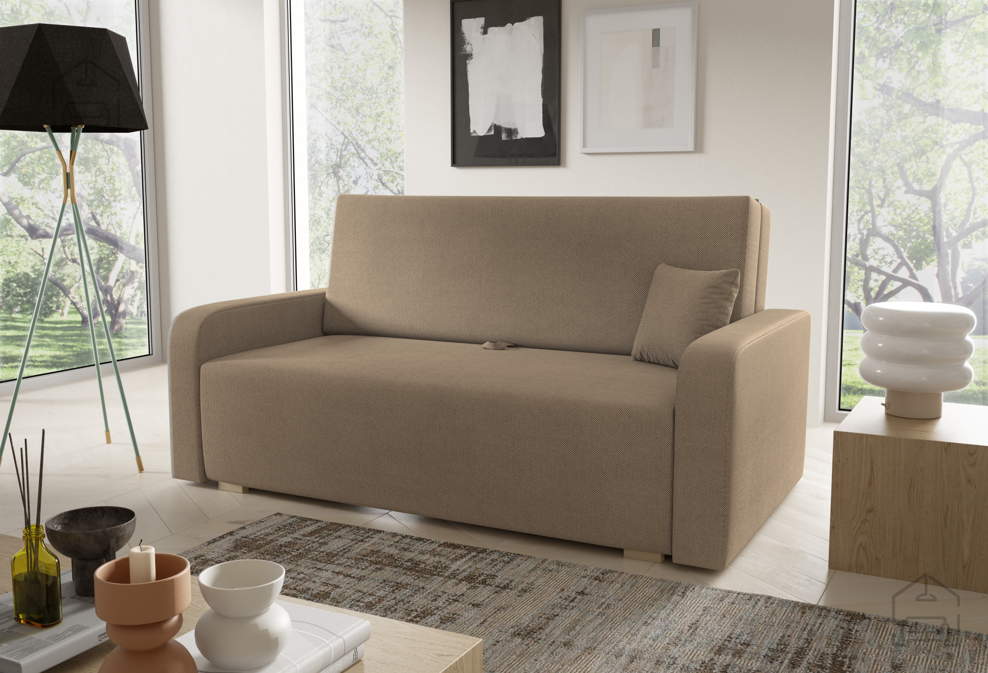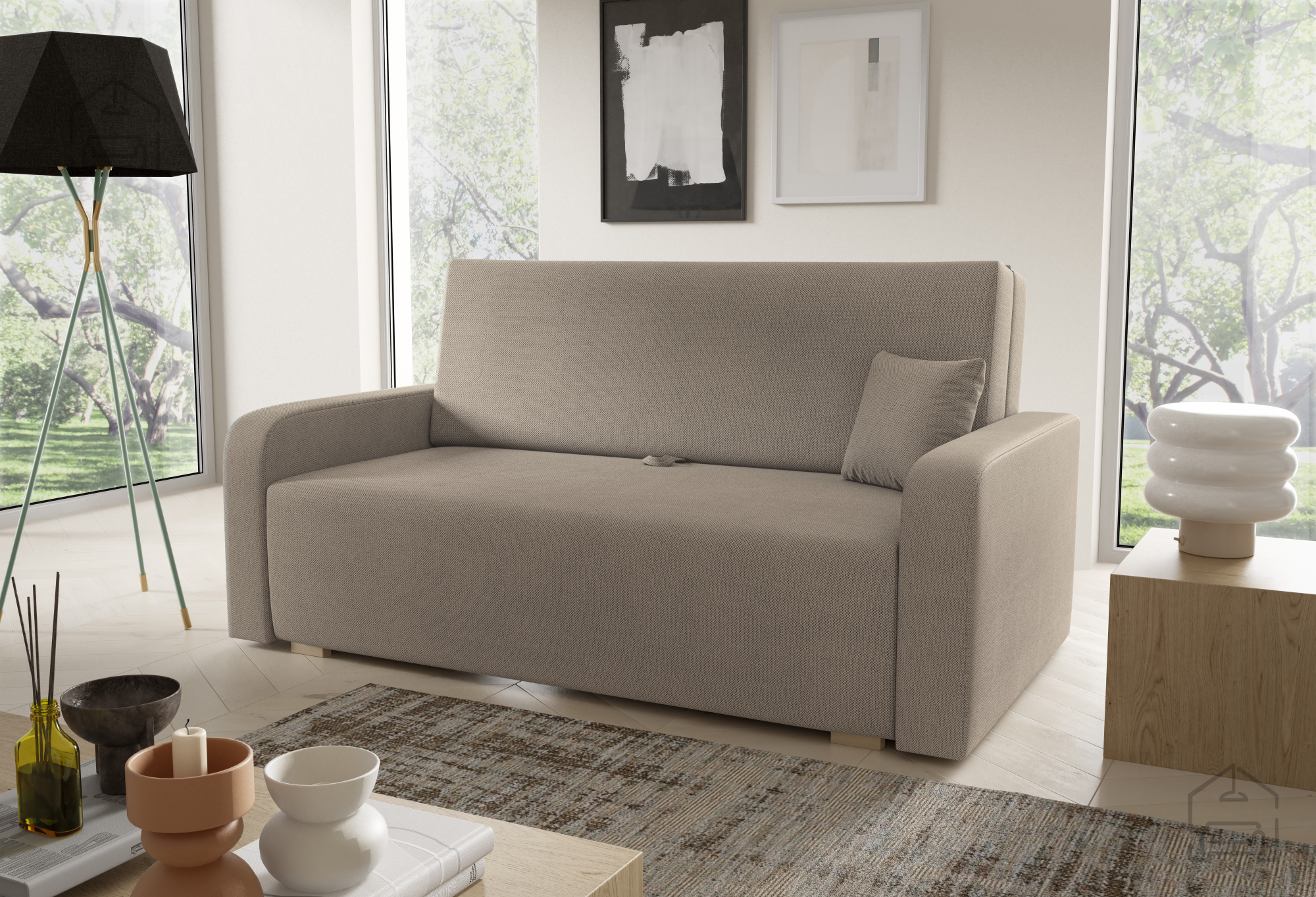 Der Holzrahmen vermittelt Wärme und Natürlichkeit, während die Wellenfedern für gute Belüftung und dauerhafte Elastizität sorgen. Der Schaumstoff behält seine Form und bietet angenehme Weichheit – das Ergebnis ist ein Möbelstück, das zum Entspannen, Lesen oder Fernsehen einlädt und zugleich eine praktische Lösung für Gäste bietet.