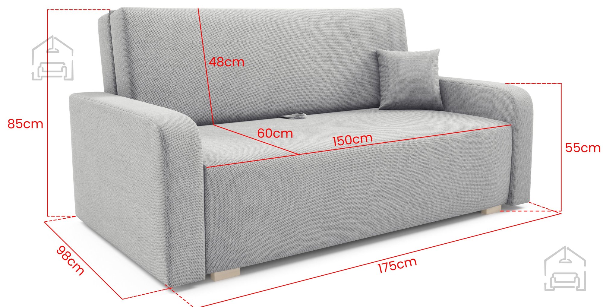 Das Modell Ness 4 überzeugt durch seine gut durchdachten Abmessungen, die eine optimale Raumnutzung im Wohnzimmer, Jugendzimmer oder in einer kleinen Wohnung ermöglichen. Die Gesamtmaße betragen 175x97x85 cm, wodurch das Sofa wenig Platz beansprucht und dennoch ausreichend Komfort zum Sitzen und Entspannen bietet. Das Design ist modern und ausgewogen – perfekt für kompakte Räume, in denen jeder Zentimeter zählt.