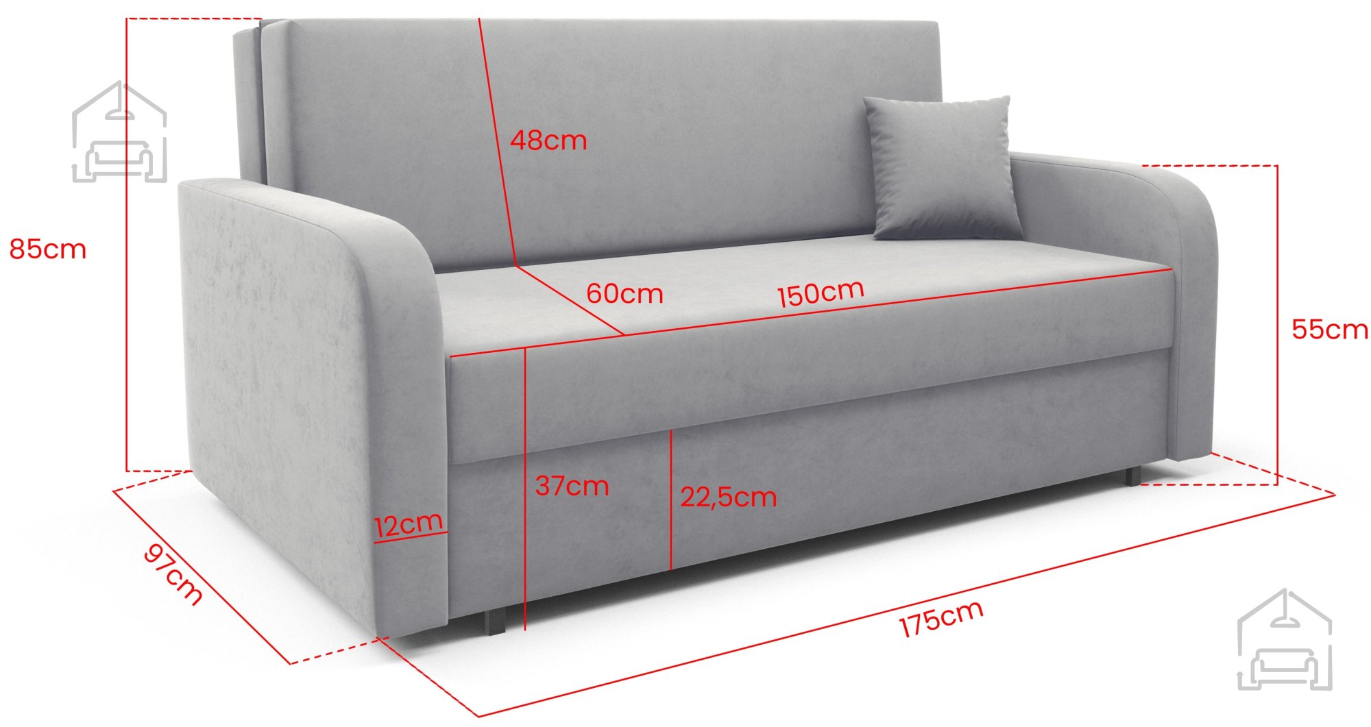 Das Zweisitzer-Sofa Feroni 4 der Marke PKMebel ist eine kompakte, aber äußerst praktische Lösung für täglichen Komfort und Funktionalität. Mit seinen Maßen von 175x97x85 cm bietet es gemütlichen Sitzplatz und lässt sich dank des Teleskop-Mechanismus im Handumdrehen in eine angenehme Liegefläche von 150x196 cm verwandeln. Diese Kombination aus Bequemlichkeit und Zweckmäßigkeit ist ideal für kleinere Wohnzimmer, Jugendzimmer oder Garçonnièren, wo jeder Quadratmeter zählt.