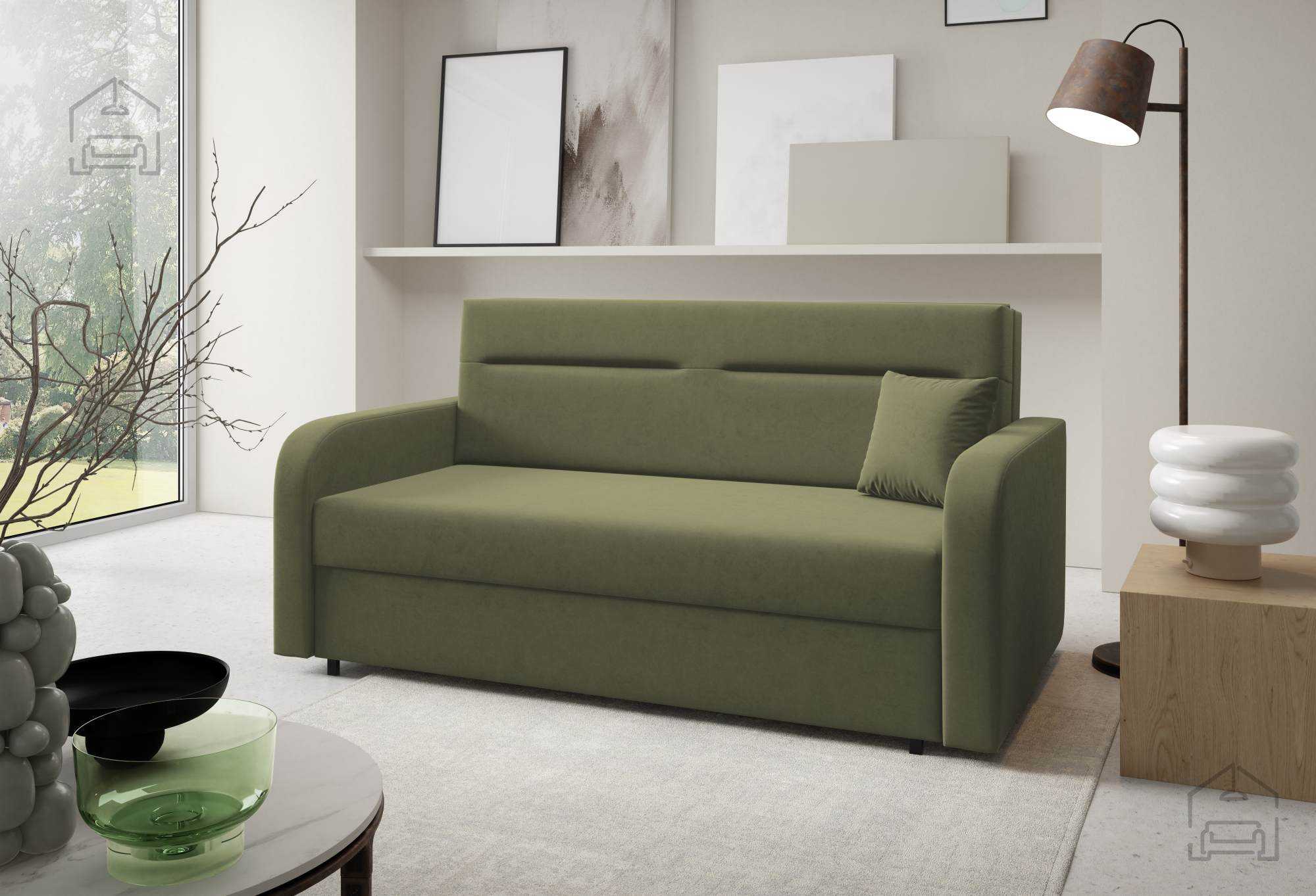 Das Gestell des Sofas besteht aus Holz und sorgt so für Stabilität und Langlebigkeit. Die Sitzfläche ist mit hochwertigem Polyurethanschaum gepolstert und verfügt über einen Wave Spring-Federkern, der gemeinsam für hohen Sitzkomfort, Elastizität und Formbeständigkeit sorgt. Diese Materialkombination garantiert entspanntes Sitzen und erholsamen Schlaf.