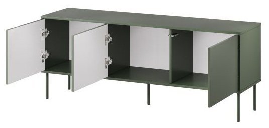 Die TV-Kommode Tresse 150 cm – Grün ist die perfekte Wahl für alle, die Wert auf Qualität, Funktionalität und modernes Design legen. Mit ihren klaren Linien, der stabilen Konstruktion und den sorgfältig gestalteten Details bietet sie eine langlebige Lösung für ein aufgeräumtes und stilvolles Wohnzimmer.