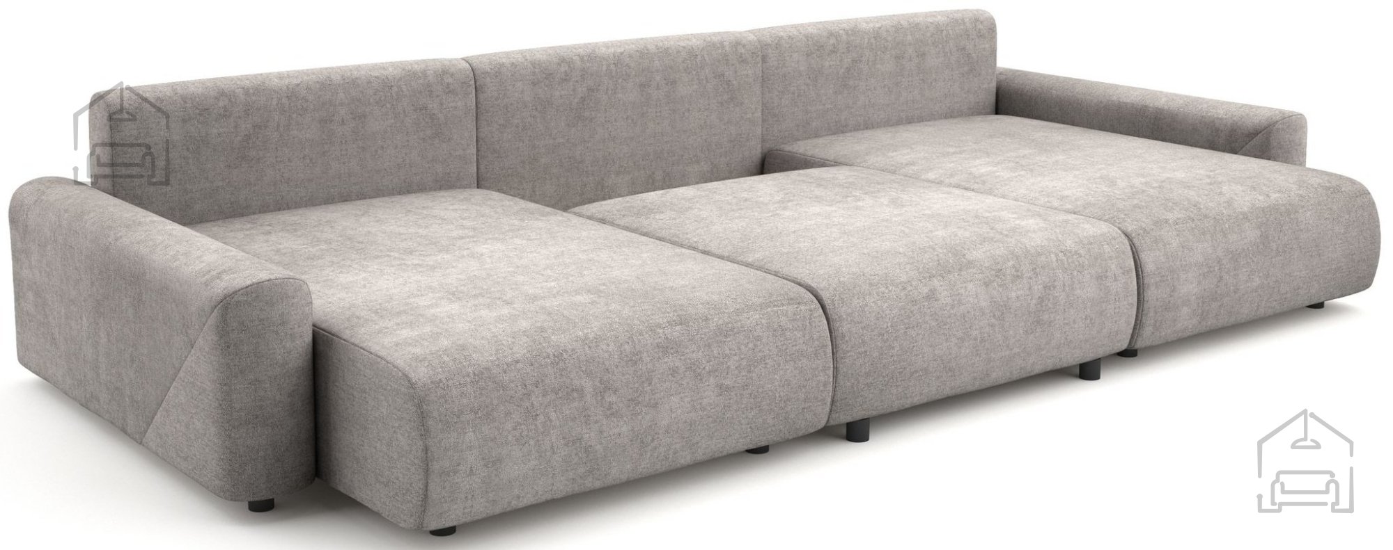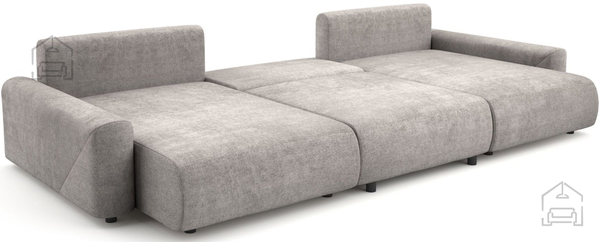 Die Wohnlandschaft Rima überzeugt mit mehreren praktischen Details, die den Alltag erleichtern. Durch den Euro-Mechanismus wird sie rasch zu einer Liegefläche von 150x295 cm, ideal für gelegentliches Schlafen oder entspanntes Ruhen. Unter dem Zweisitzer befindet sich ein Bettkasten, in dem Decken, Kissen oder andere Utensilien ordentlich verstaut werden können. So bleibt der Raum stets aufgeräumt und bereit für Gäste.