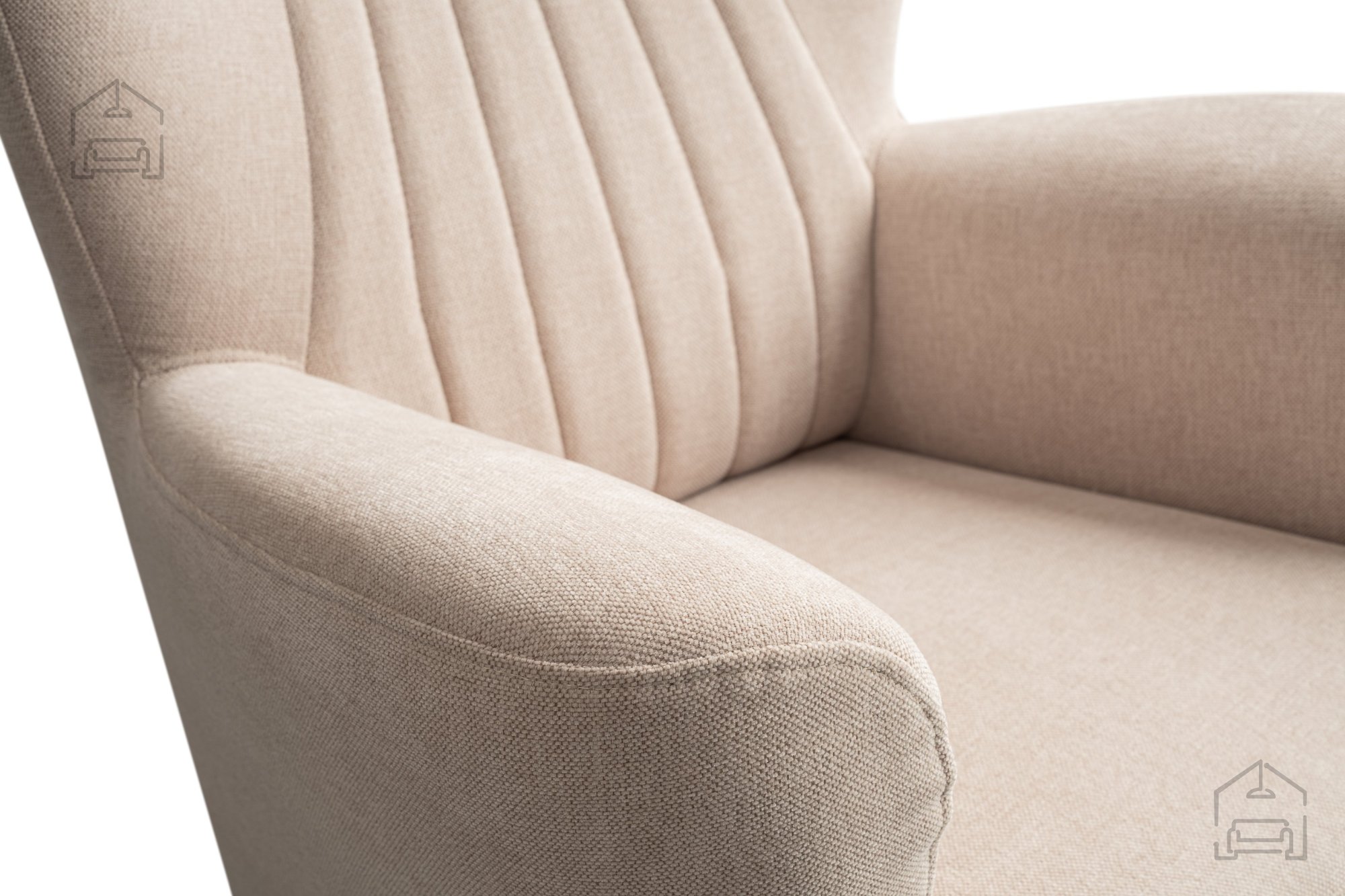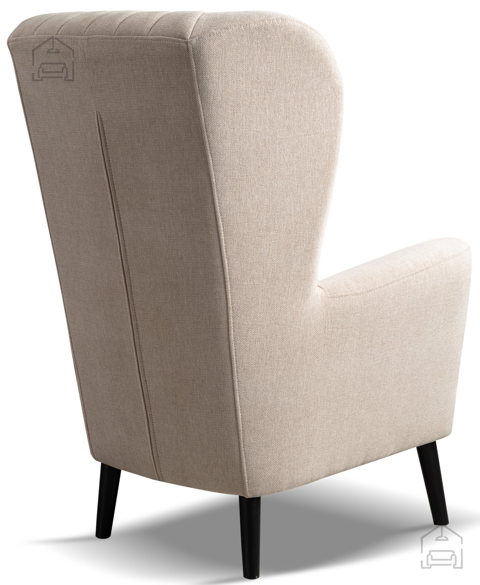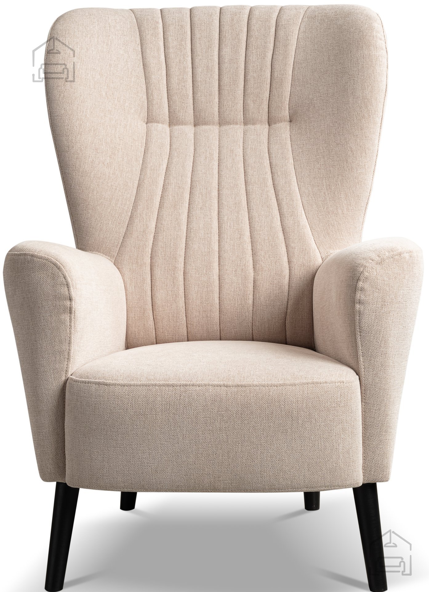 Dank seiner kompakten Maße passt der Sessel auch ideal in kleinere Wohnzimmer, Leseecken oder Schlafzimmer. Trotzdem bietet er ausreichend Platz für bequemes Sitzen, ohne wuchtig zu wirken. Der Holzrahmen bringt eine natürliche Note ins Design und sorgt zugleich für eine lange Lebensdauer.