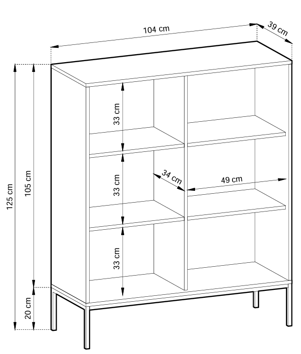 Die Kommode Nova K104 der Marke Piaski verbindet modernes Design mit der natürlichen Wärme des Farbtons Eiche Vicenza. Mit den Maßen 104x39x125 cm ist sie die ideale Lösung für alle, die ein geräumiges und zugleich stilvolles Möbelstück für Wohnzimmer, Esszimmer oder Schlafzimmer suchen. Gefertigt aus hochwertiger laminierter Spanplatte mit 16 mm Stärke überzeugt sie durch Stabilität, Robustheit und Langlebigkeit. Die Kombination aus natürlicher Holzoptik und metallischen Akzenten verleiht der Kommode einen zeitgemäßen, aber dennoch klassischen Charakter.