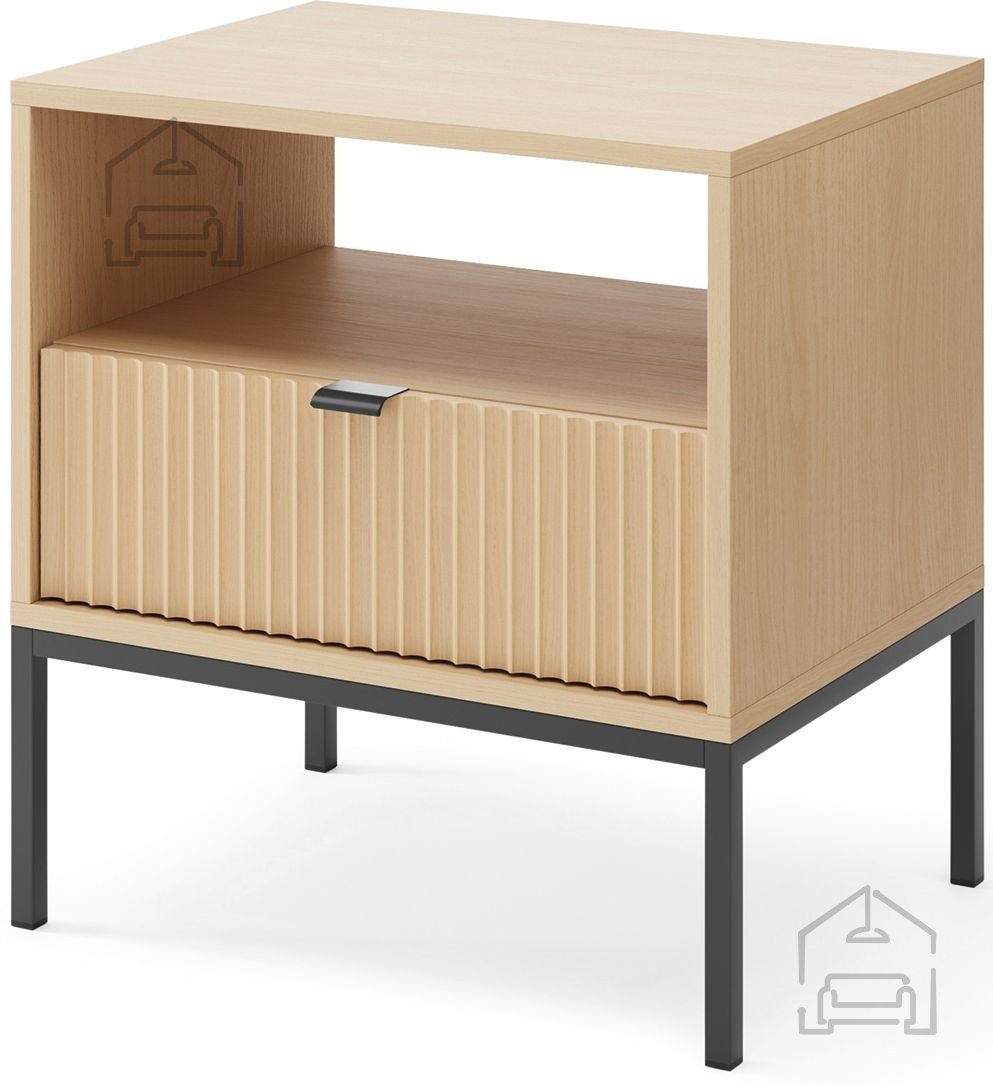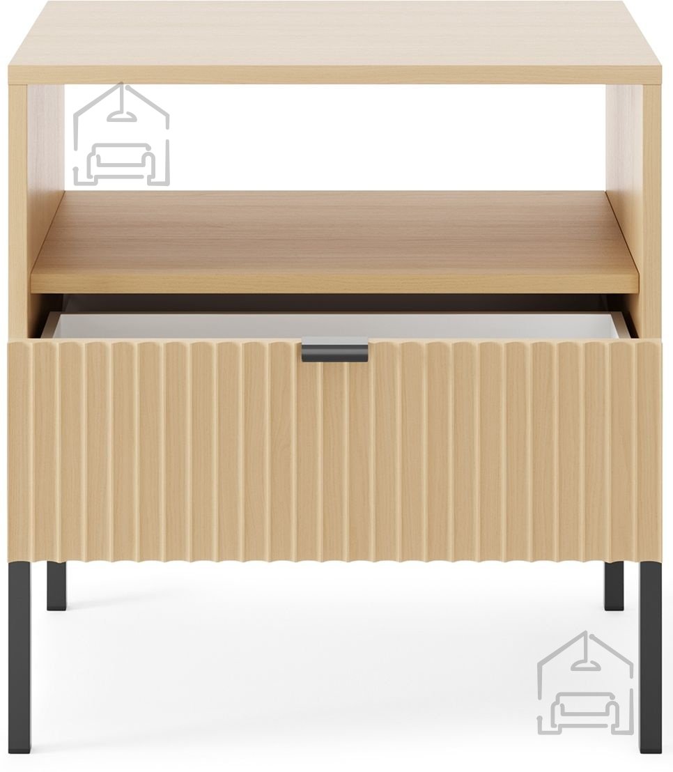 Der Nachttisch Nova S54 ist nicht nur optisch ansprechend, sondern auch funktional durchdacht. Seine Höhe ist ideal, um ihn direkt neben dem Bett zu platzieren – so haben Sie Lampe, Buch, Handy oder Wasserglas stets griffbereit. Die Kombination aus Schublade und offenem Fach bietet ausreichend Stauraum und sorgt gleichzeitig für eine luftige, aufgeräumte Optik im Schlafzimmer.