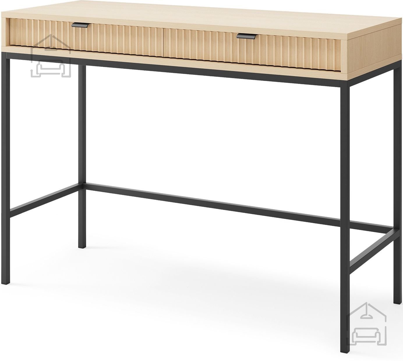 Die Konstruktion des Nova T104 verbindet praktischen Nutzen mit einem ansprechenden Design. Die laminierte Spanplatte ist kratzfest und leicht zu reinigen, sodass der Tisch auch nach Jahren noch schön aussieht. MDF-Elemente sorgen für zusätzliche Stabilität und eine saubere Kantenverarbeitung. Metallteile in Schwarz oder Gold, die für Beine und Griffe verwendet werden, setzen einen stilvollen Kontrast und verleihen dem Möbelstück einen Hauch von Industrial Chic. Diese Materialkombination macht den Schminktisch zu einem modernen Begleiter, der sich ideal für Schlafzimmer, Ankleidezimmer oder Beauty-Ecken eignet.