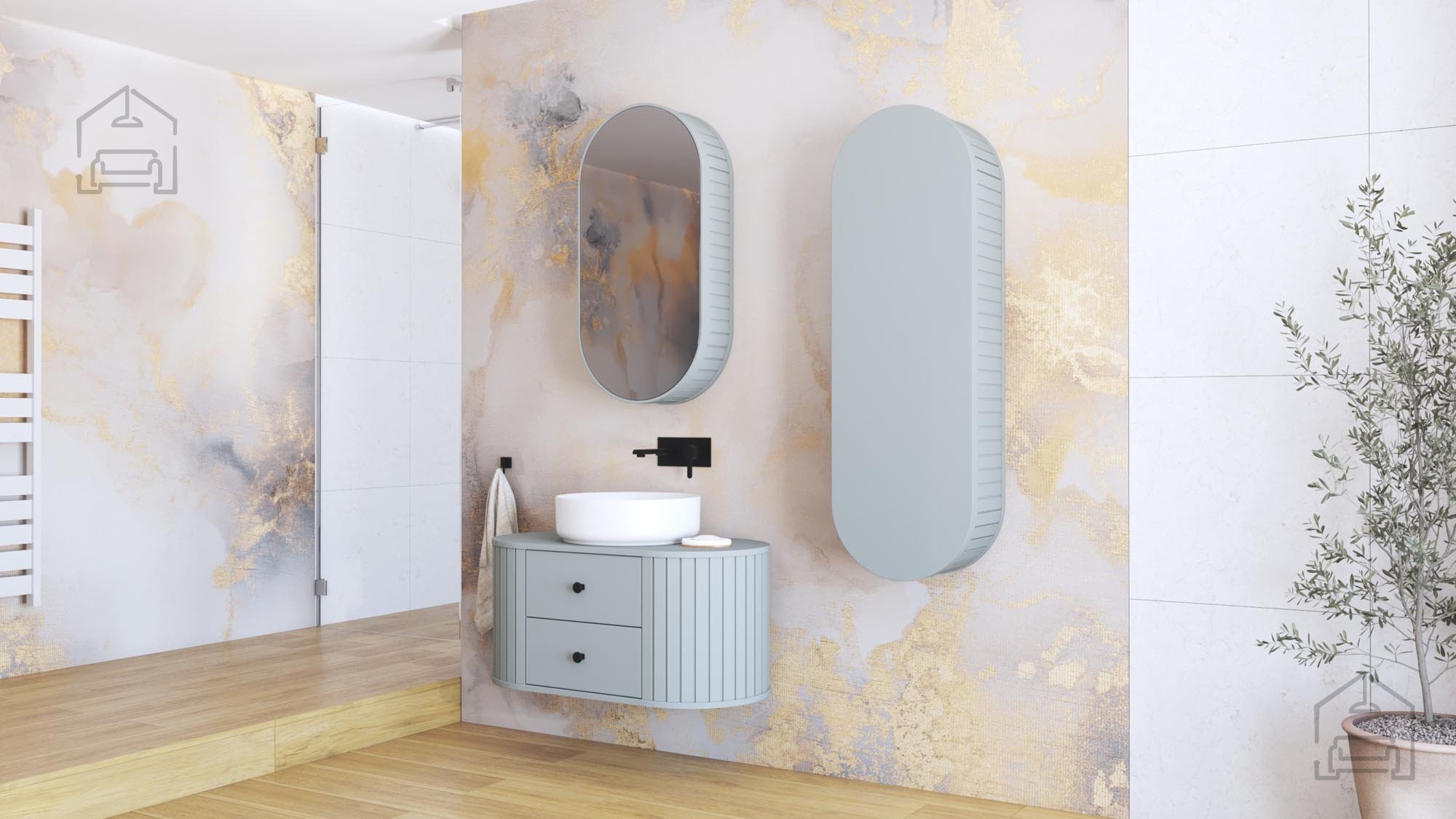 Das Modell Venezia 1D eignet sich ideal für den täglichen Gebrauch – in kleinen wie in großen Badezimmern. Dank der geringen Tiefe von 19 cm beeinträchtigt es nicht die Bewegungsfreiheit, bietet aber dennoch überraschend viel Stauraum. Der Verzicht auf Griffe und die klaren Linien lassen den Schrank optisch mit der Wand verschmelzen und schaffen so ein luftiges, großzügiges Raumgefühl. Durch sein universelles Design lässt er sich sowohl mit weiteren Elementen der Venezia-Kollektion als auch mit anderen Badmöbeln kombinieren.