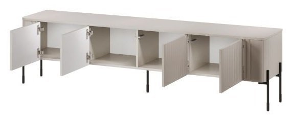 Die TV-Kommode Vera 190 cm – Halmar ist eine durchdachte Wahl für alle, die Funktionalität mit elegantem Design verbinden möchten. Mit ihrer Kombination aus Spanplatte und laminierter MDF-Oberfläche in Kaschmir präsentiert sie sich als stilvolles Möbelstück, das jeden Raum bereichert. Metallfüße und das PUSH TO OPEN-System unterstreichen den modernen Charakter, während die Proportionen eine optimale Raumnutzung im Wohnzimmer ermöglichen.