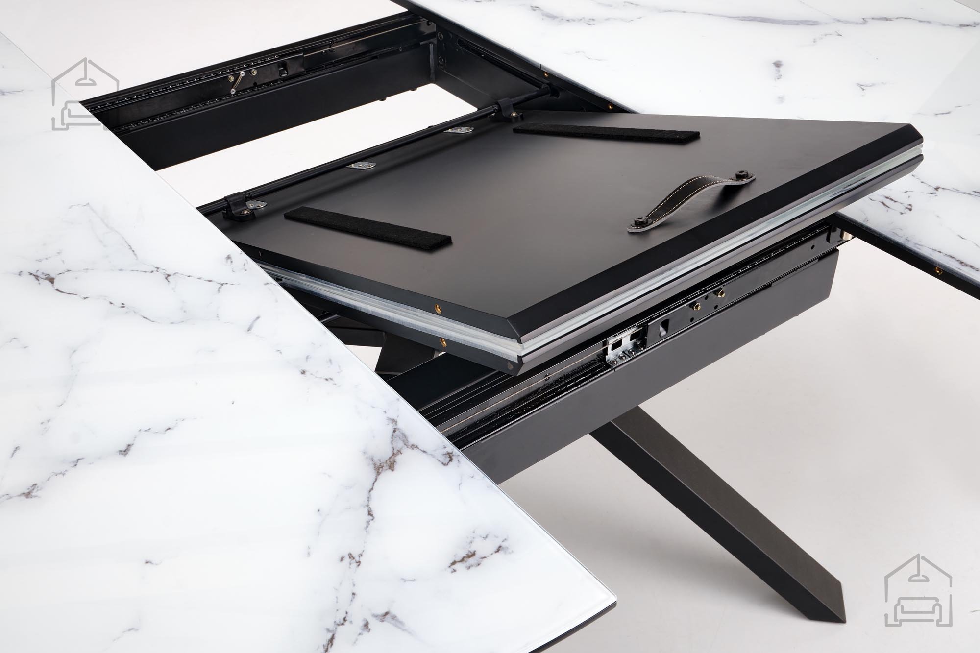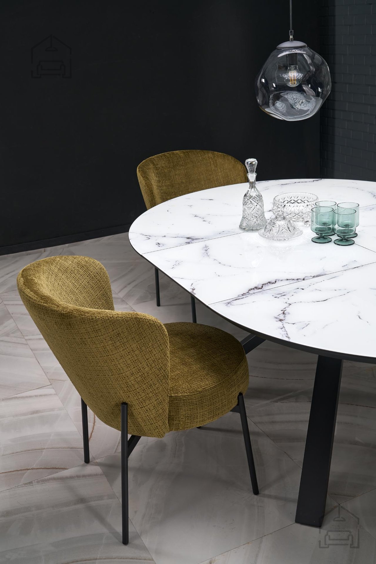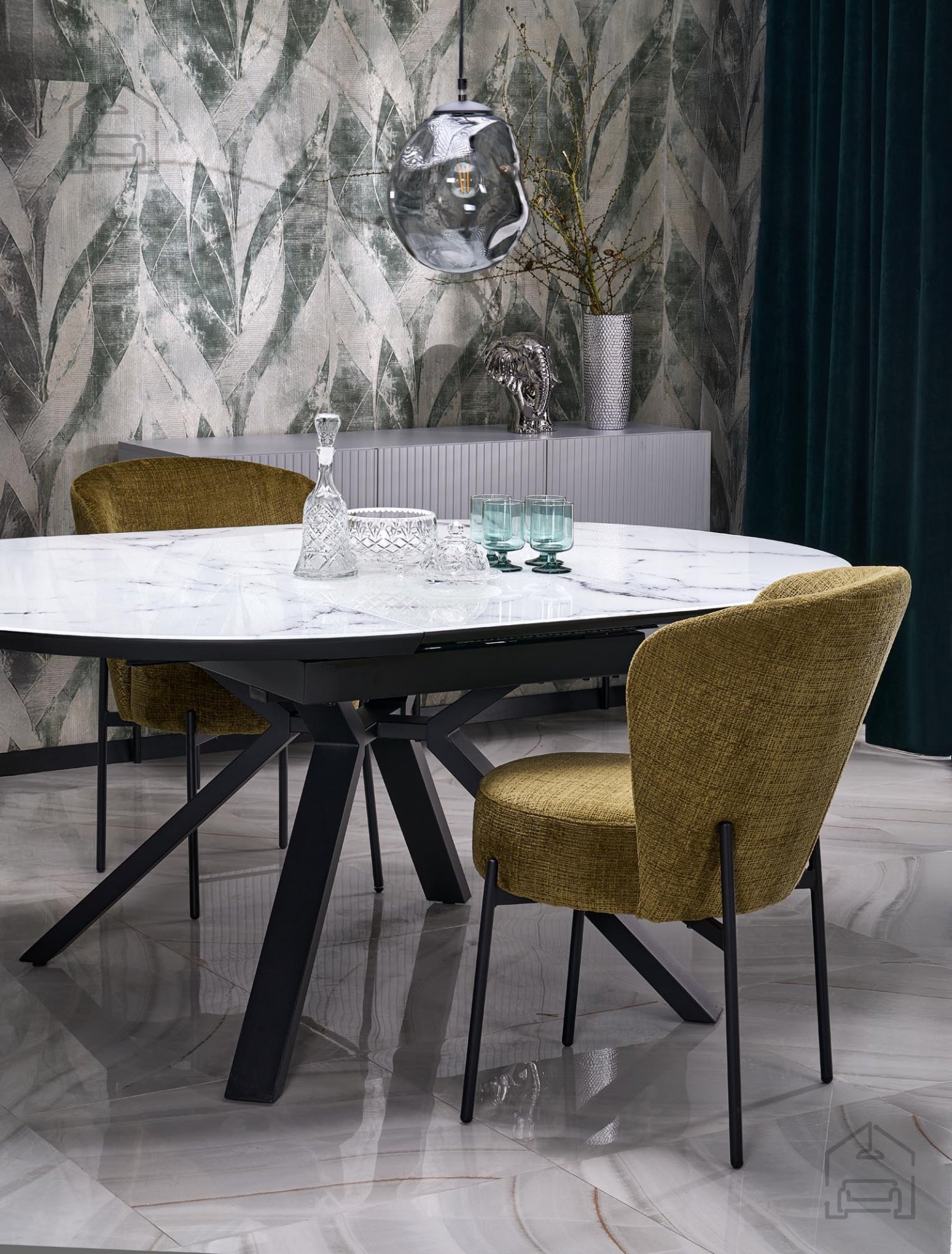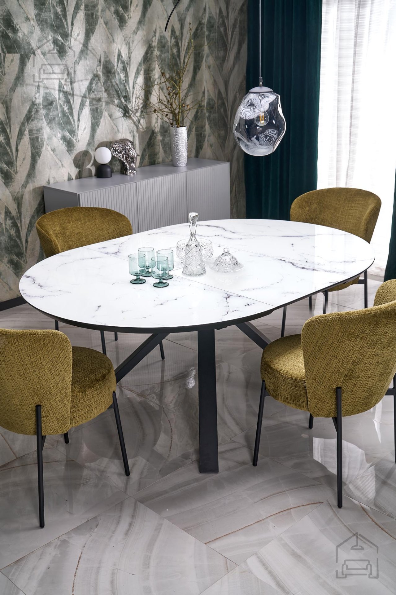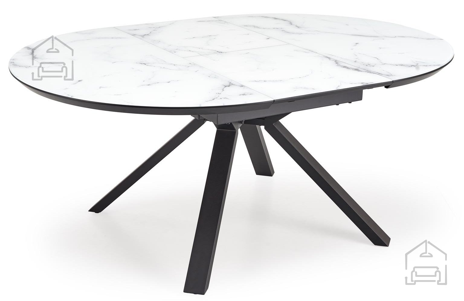 Der ausziehbare Esstisch Vertigo – Halmar vereint modernes Design, hochwertige Materialien und praktische Funktionalität. Mit seiner eleganten Kombination aus weißer Marmoroptik und schwarzen Metallbeinen bietet er ein ausgewogenes Verhältnis zwischen Ästhetik und Alltagstauglichkeit. Die Maße von 130–180/130/76 cm ermöglichen eine flexible Nutzung – von gemütlichen Familienessen bis hin zu größeren Runden mit Freunden. Dank des Ausziehmechanismus lässt sich die Tischfläche im Handumdrehen vergrößern, was ihn ideal für jedes Zuhause macht, in dem Komfort und Platzangebot geschätzt werden.