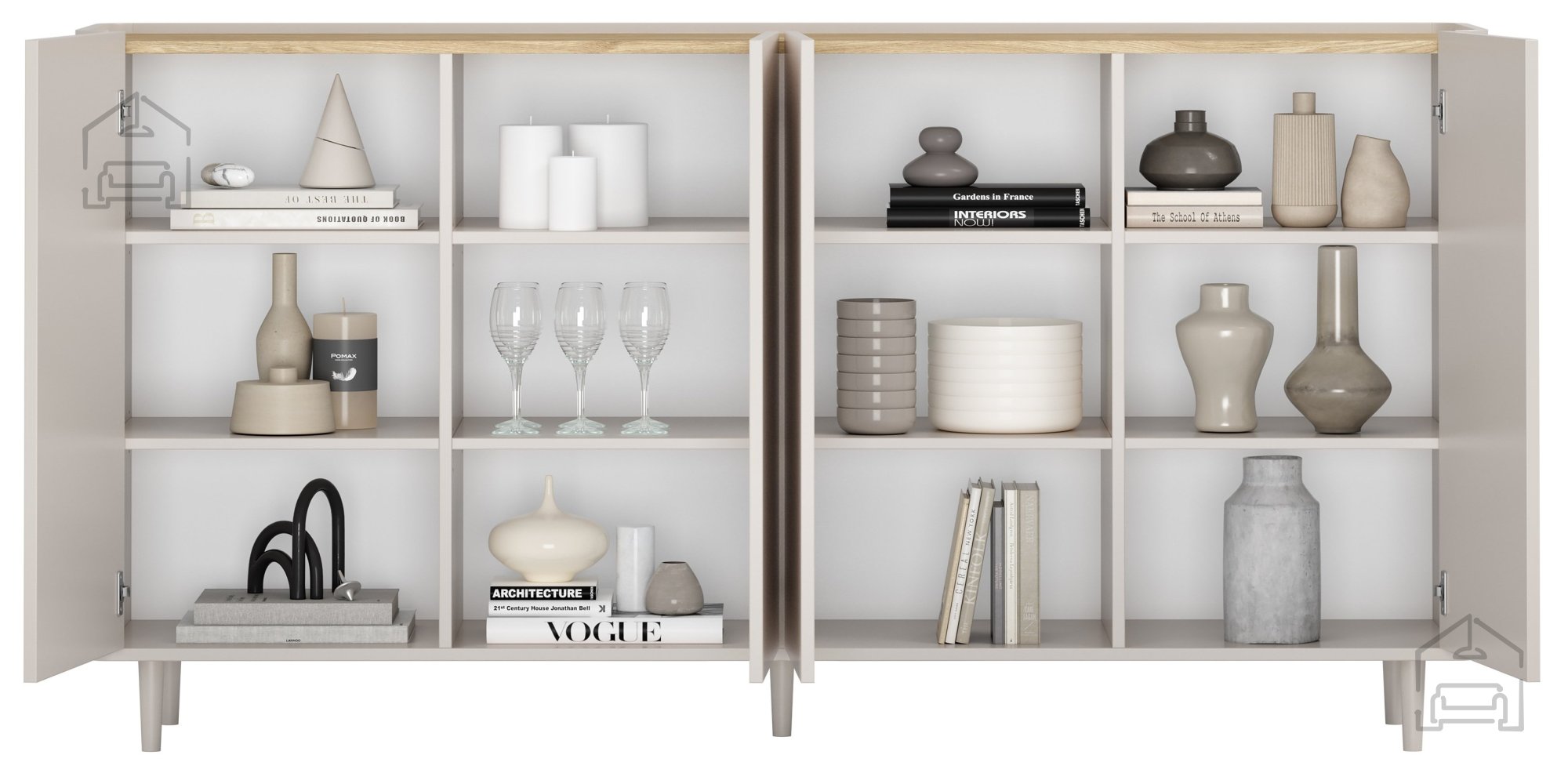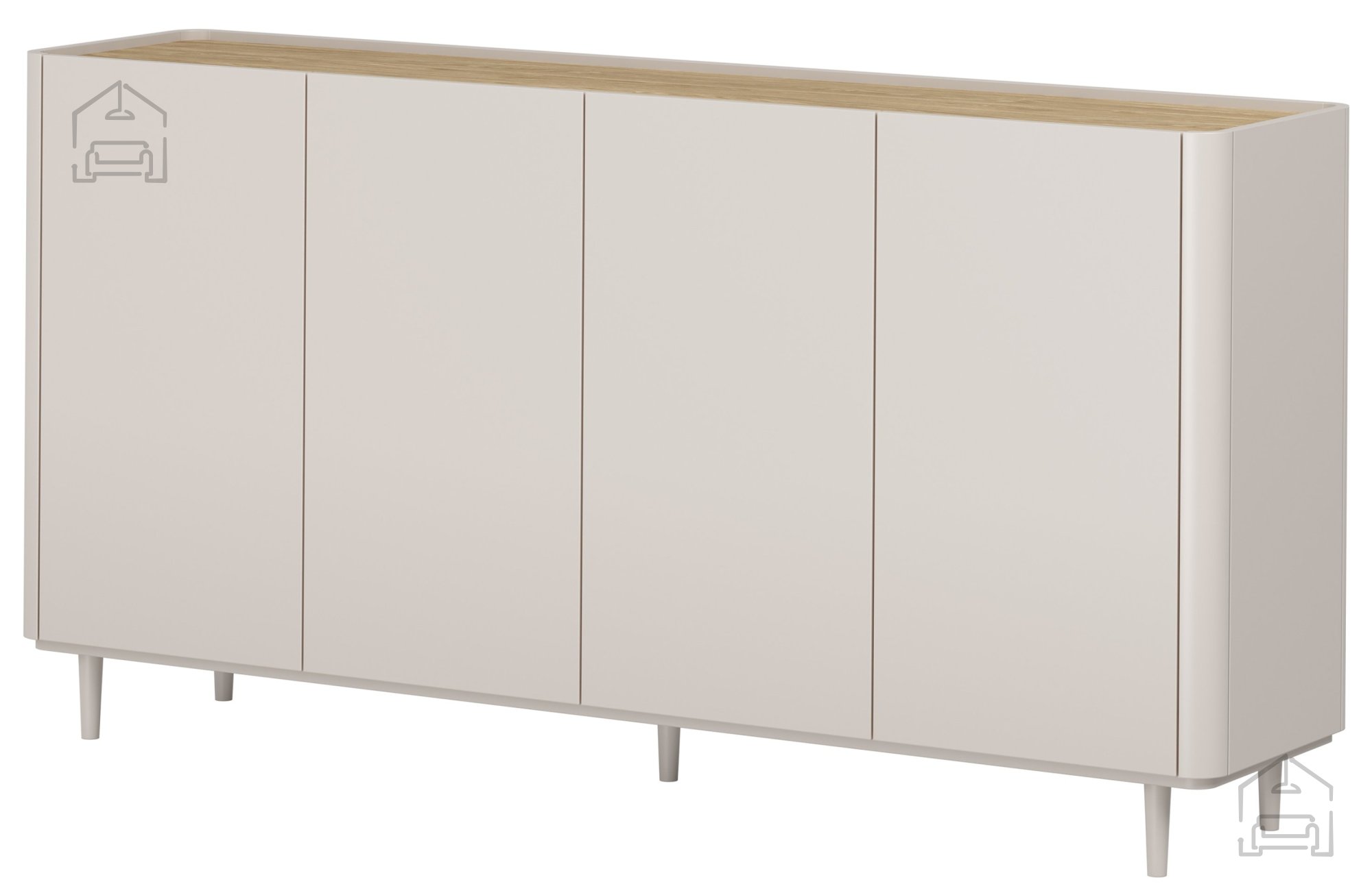 Die Kommode Elivo 200 4D mit Beinen in der Farbkombination Kaschmir und geölte Eiche steht für moderne Ästhetik und hohe Funktionalität. Mit ihren ausgewogenen Proportionen und warmen Materialien passt sie perfekt ins Wohnzimmer, Esszimmer oder Schlafzimmer – überall dort, wo Sie eine großzügige, aber zugleich elegante Stauraumlösung brauchen. Gefertigt wird sie in der Fabrik von Bogart in Polen, was für geprüfte Qualität und sorgfältige Verarbeitung jedes Details steht.