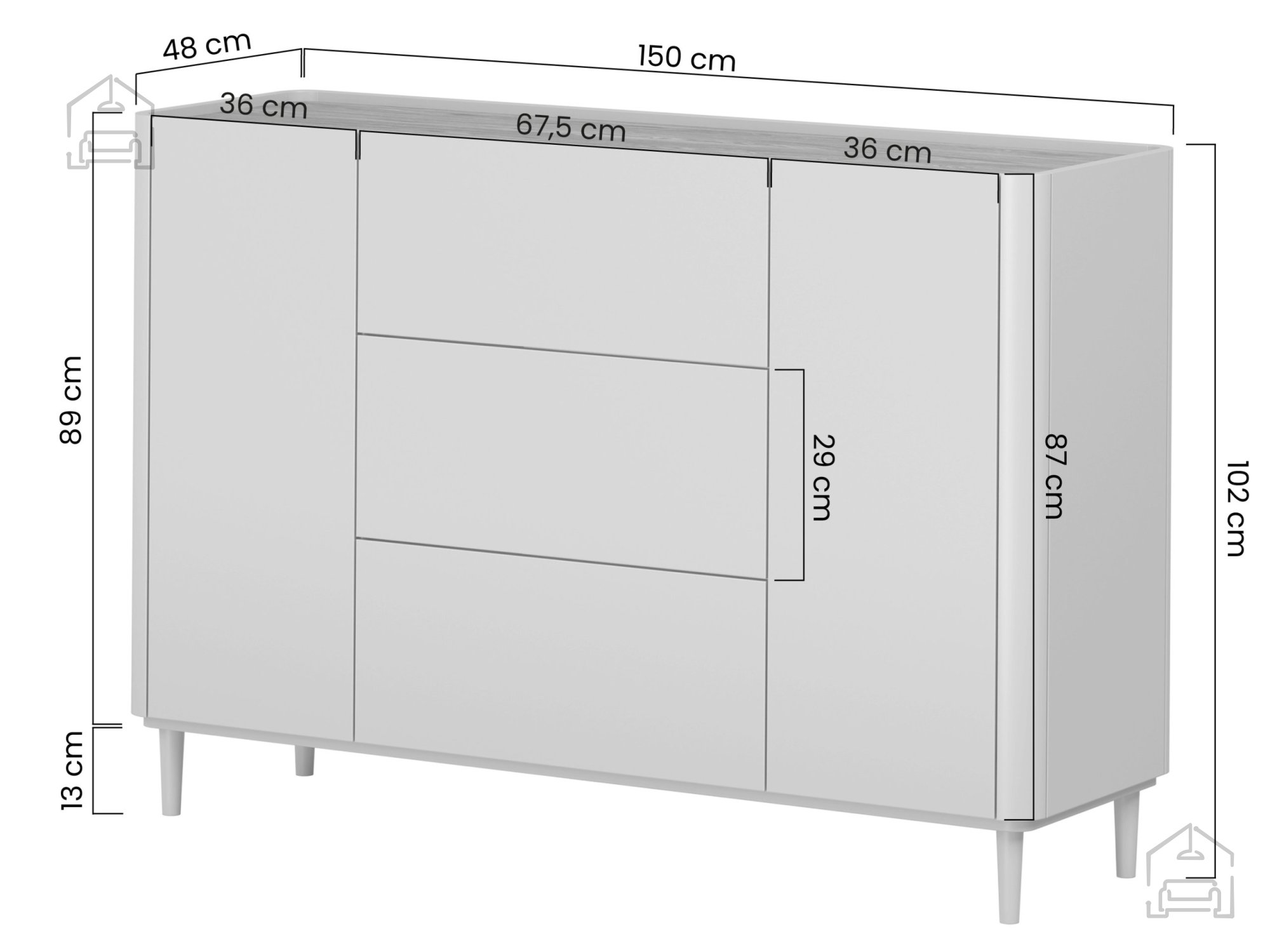 Melamin- und MDF-Platte 150 × 48 × 102 cm: Kommode Elivo 150 2D3SZ mit Beinen – Bogart.