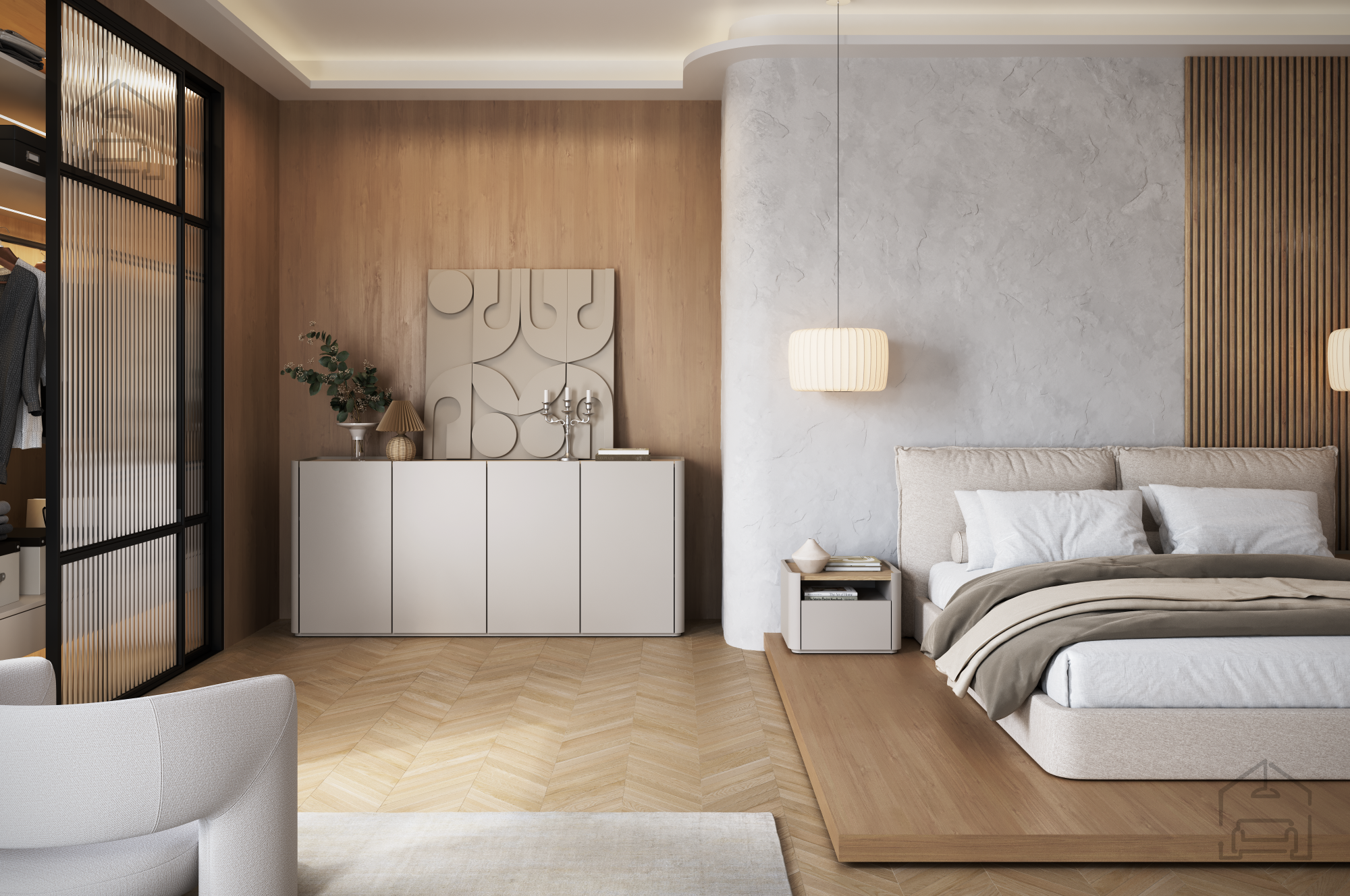Melaminplatte 18 mm in Kombination mit MDF und Buchenholz: Wohnzimmer und Schlafzimmer Elivo – Bogart.