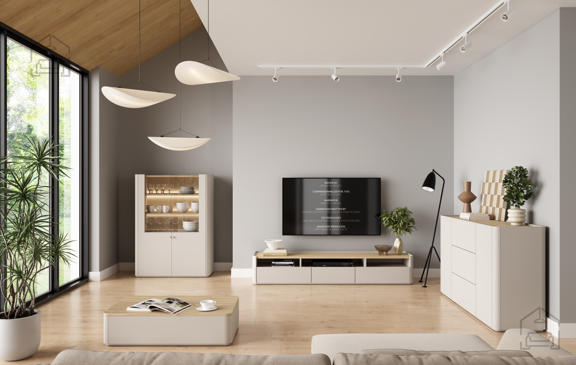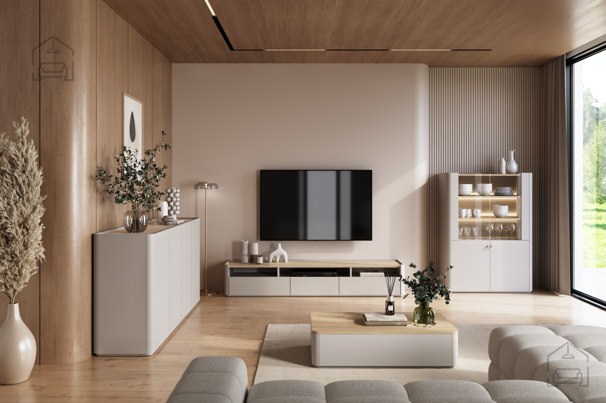 Das Wohn- und Schlafzimmer Elivo – Bogart vereint modernes Design, hochwertige Verarbeitung und eine durchdachte Funktionalität, die Ihrem Zuhause Wärme und Ordnung verleiht. Gefertigt aus langlebigen Materialien, überzeugt die Serie durch eine lange Lebensdauer und einfache Pflege. Die Oberfläche in Cashmere-Farbe mit einer Deckplatte aus geölter Eiche schafft einen angenehmen Kontrast zwischen sanften Tönen und der natürlichen Wärme des Holzes – für ein elegantes und zugleich ruhiges Raumgefühl.