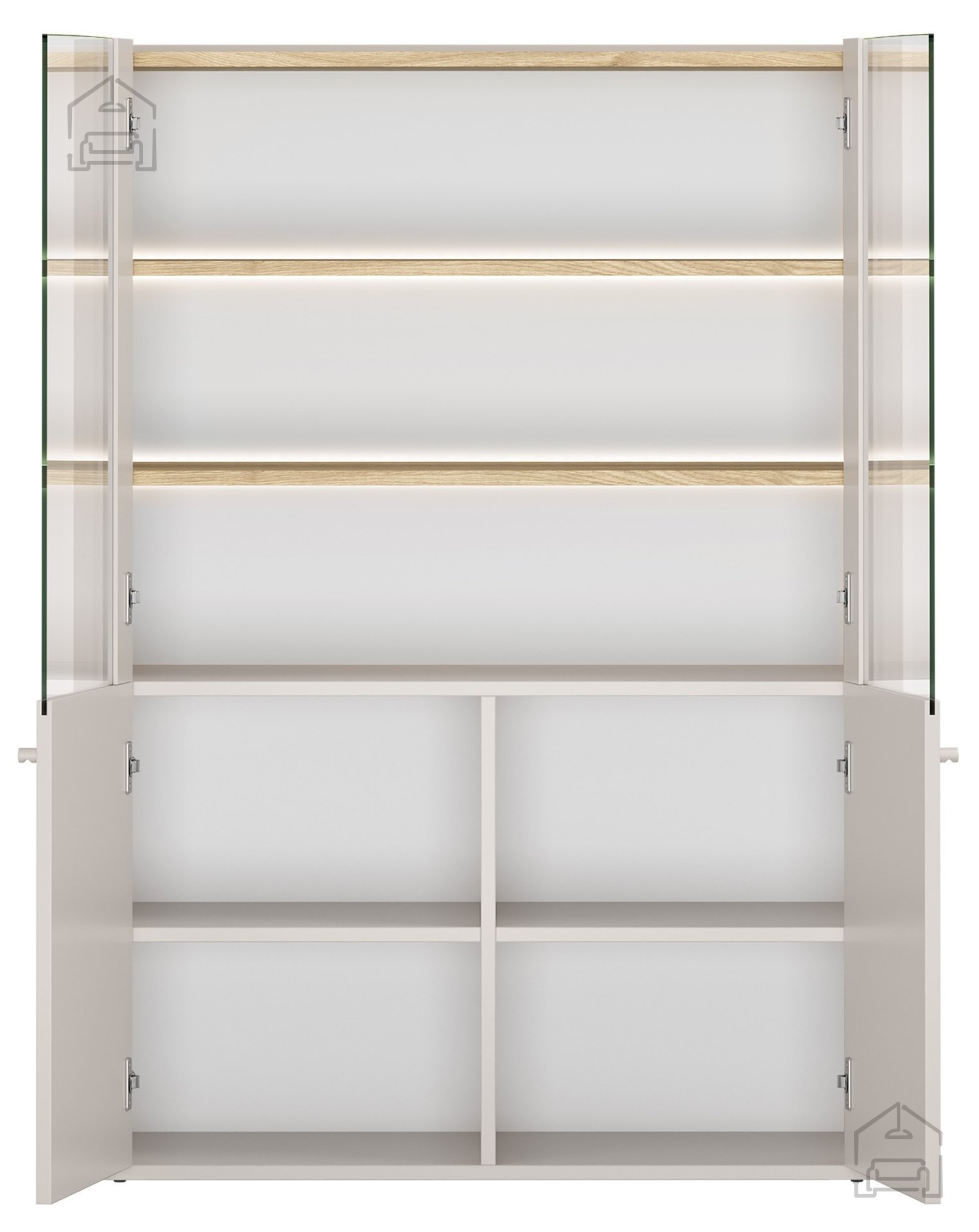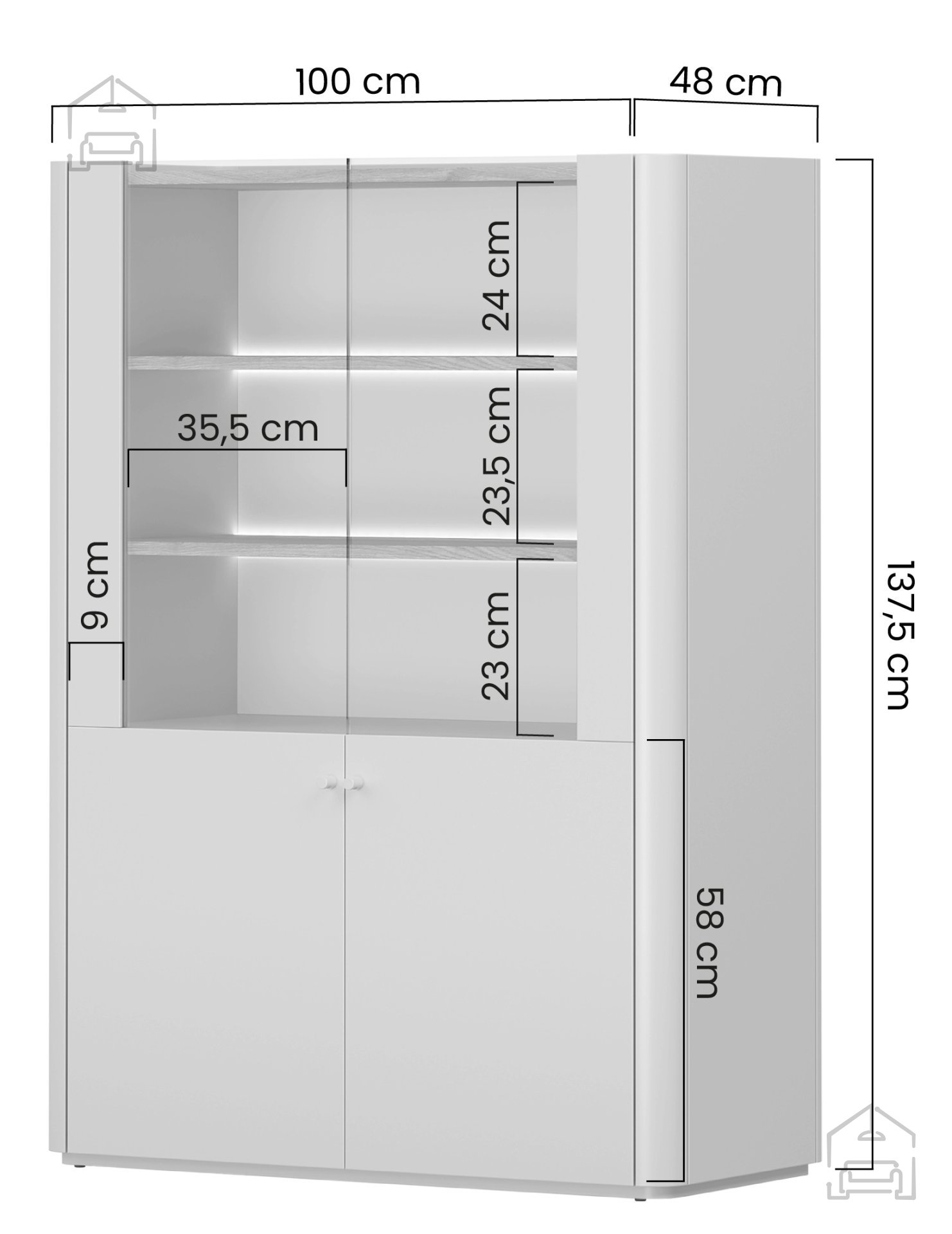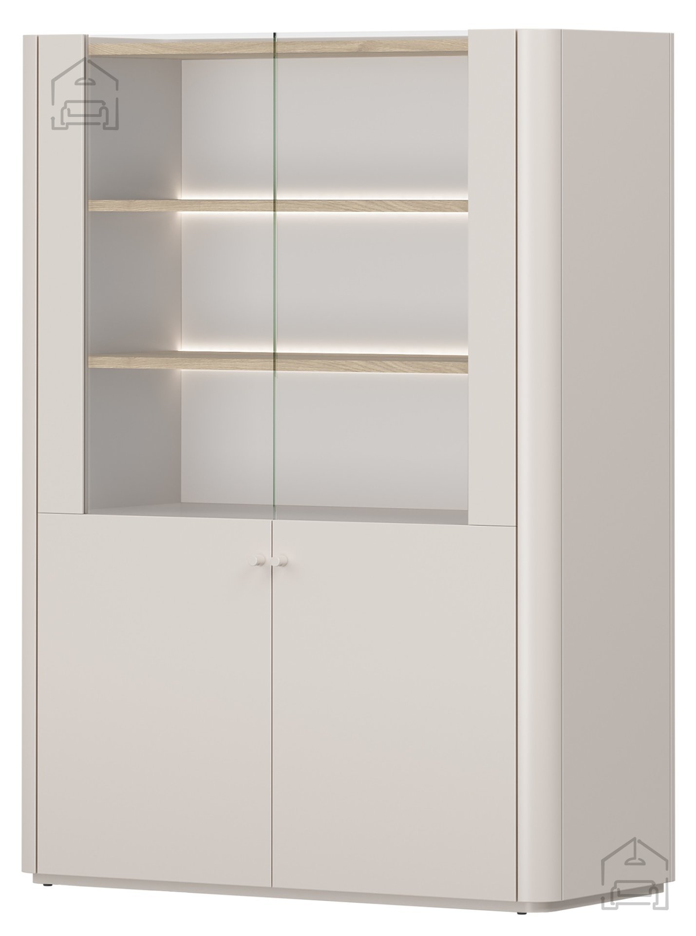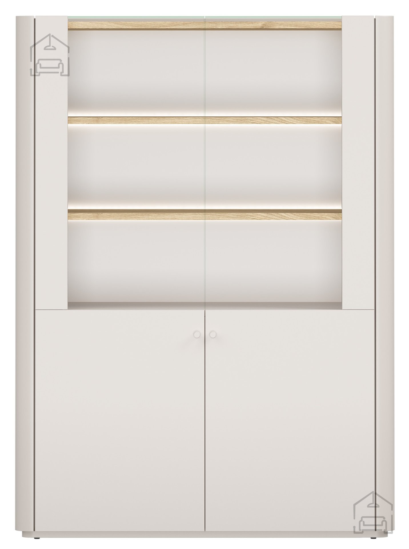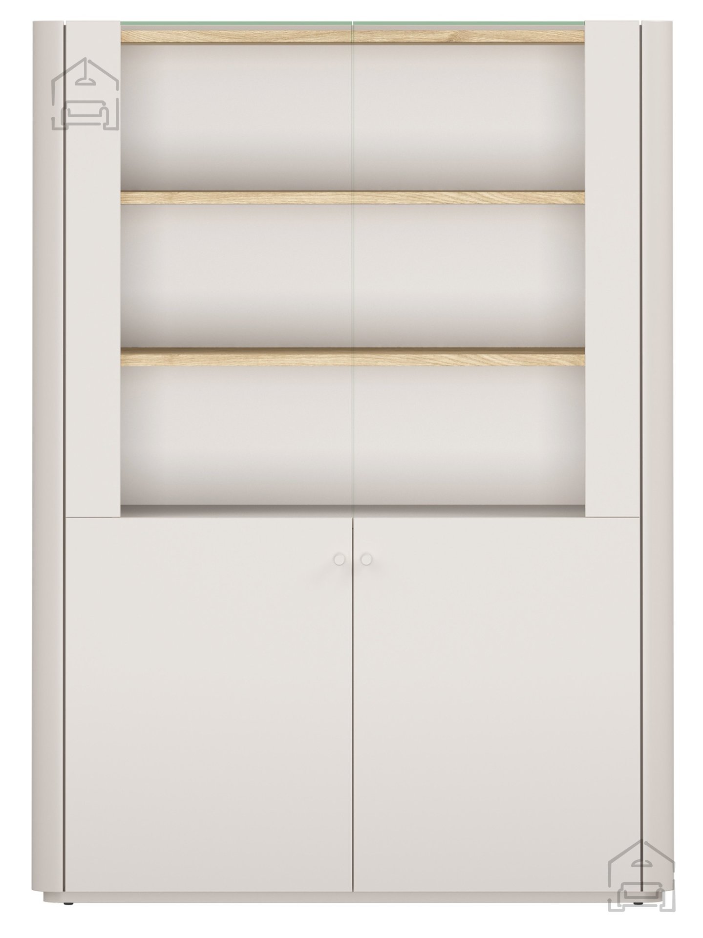 Die Vitrine Elivo 100 2D steht für einen modernen und skandinavischen Designansatz, bei dem Funktionalität und klare Formen im Mittelpunkt stehen. Die schlichten Linien betonen die natürliche Holzstruktur, während die hellen Töne den Raum optisch vergrößern. Dieses Design harmoniert wunderbar mit weiteren Möbelstücken aus der Elivo-Kollektion oder mit neutralen Einrichtungen in ähnlichen Farbtönen.