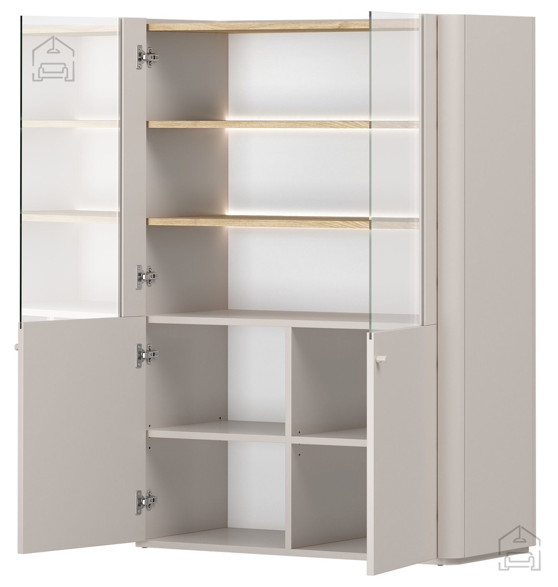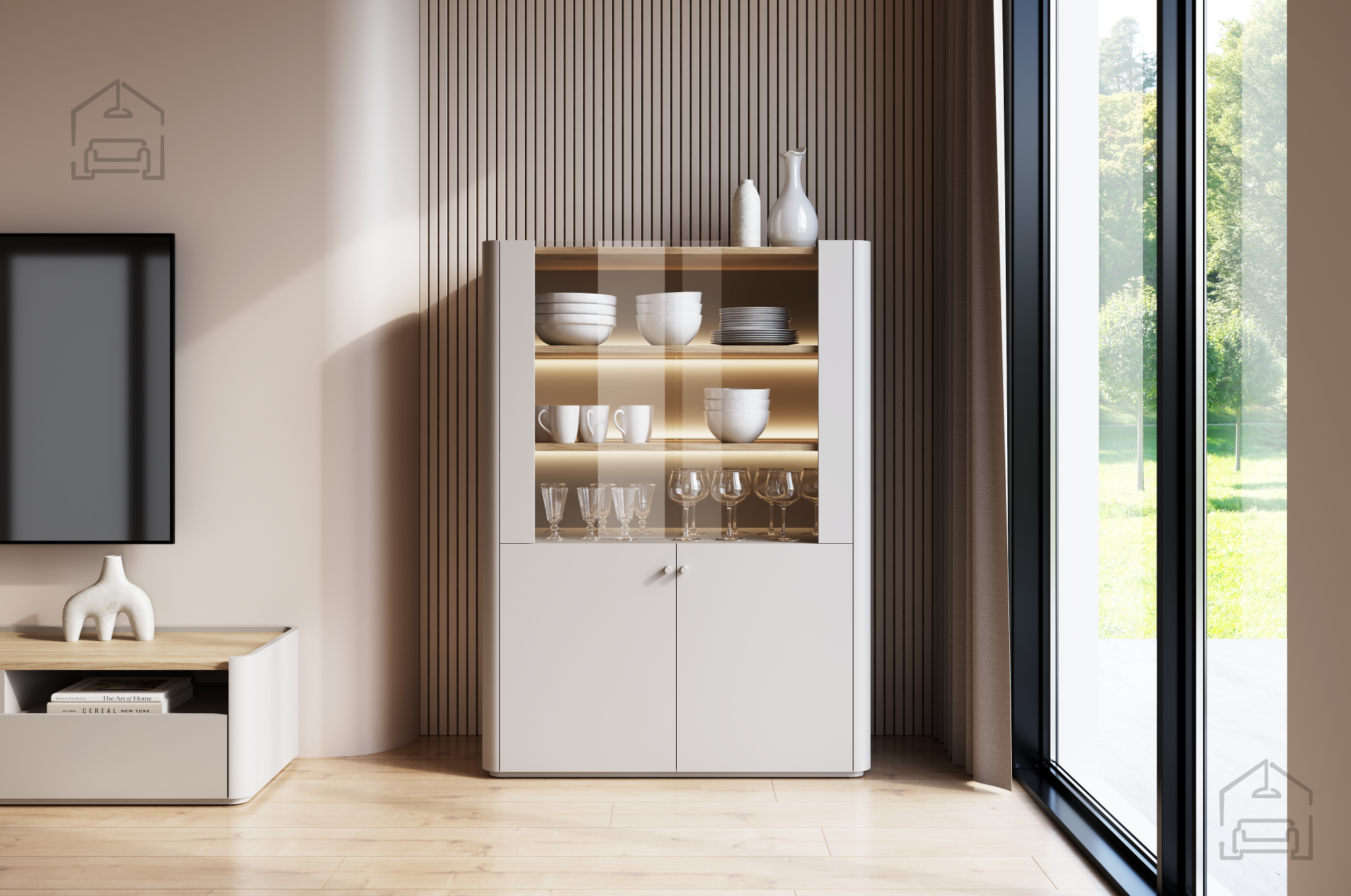 Die Vitrine Elivo 100 2D der Marke Bogart vereint die warme Ausstrahlung von natürlichem Holz mit einem eleganten Kaschmir-Ton. Diese Kombination schafft ein Erscheinungsbild, das perfekt in moderne Wohn-, Ess- oder Mehrzweckräume passt, wo ein minimalistisches, aber dennoch behagliches Ambiente gefragt ist. Gefertigt wird sie in der Bogart-Fabrik in Polen, die für ihre präzise Verarbeitung und sorgfältige Detailausführung bekannt ist. Mit ihren ausgewogenen Maßen von 100×48×137,5 cm bietet sie reichlich Stauraum, ohne im Raum zu dominant zu wirken.