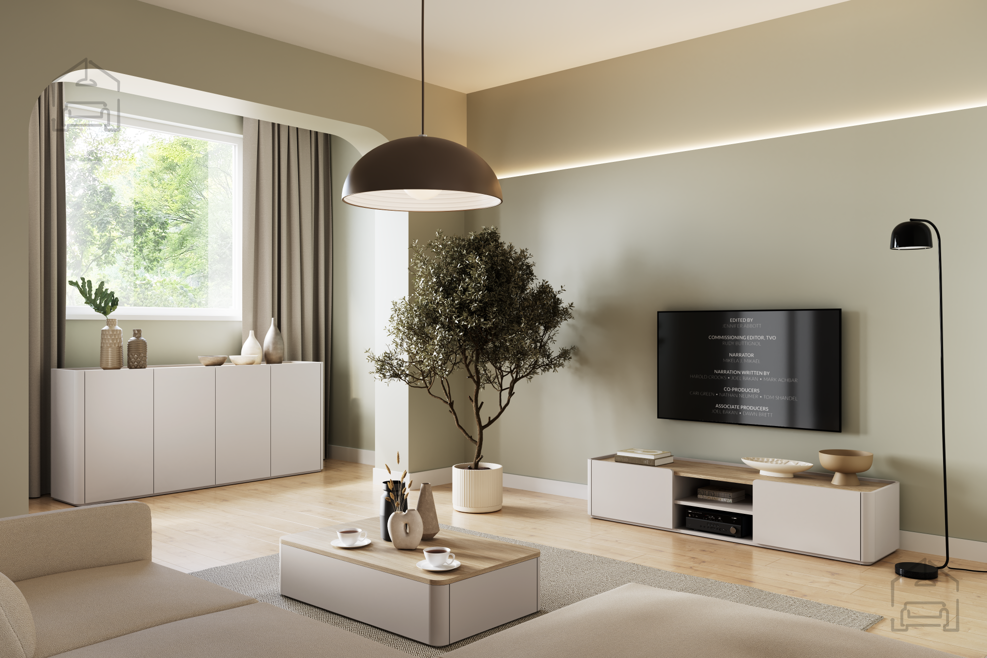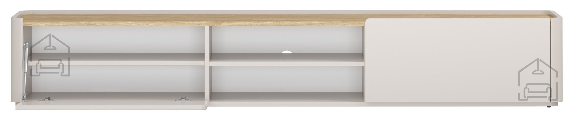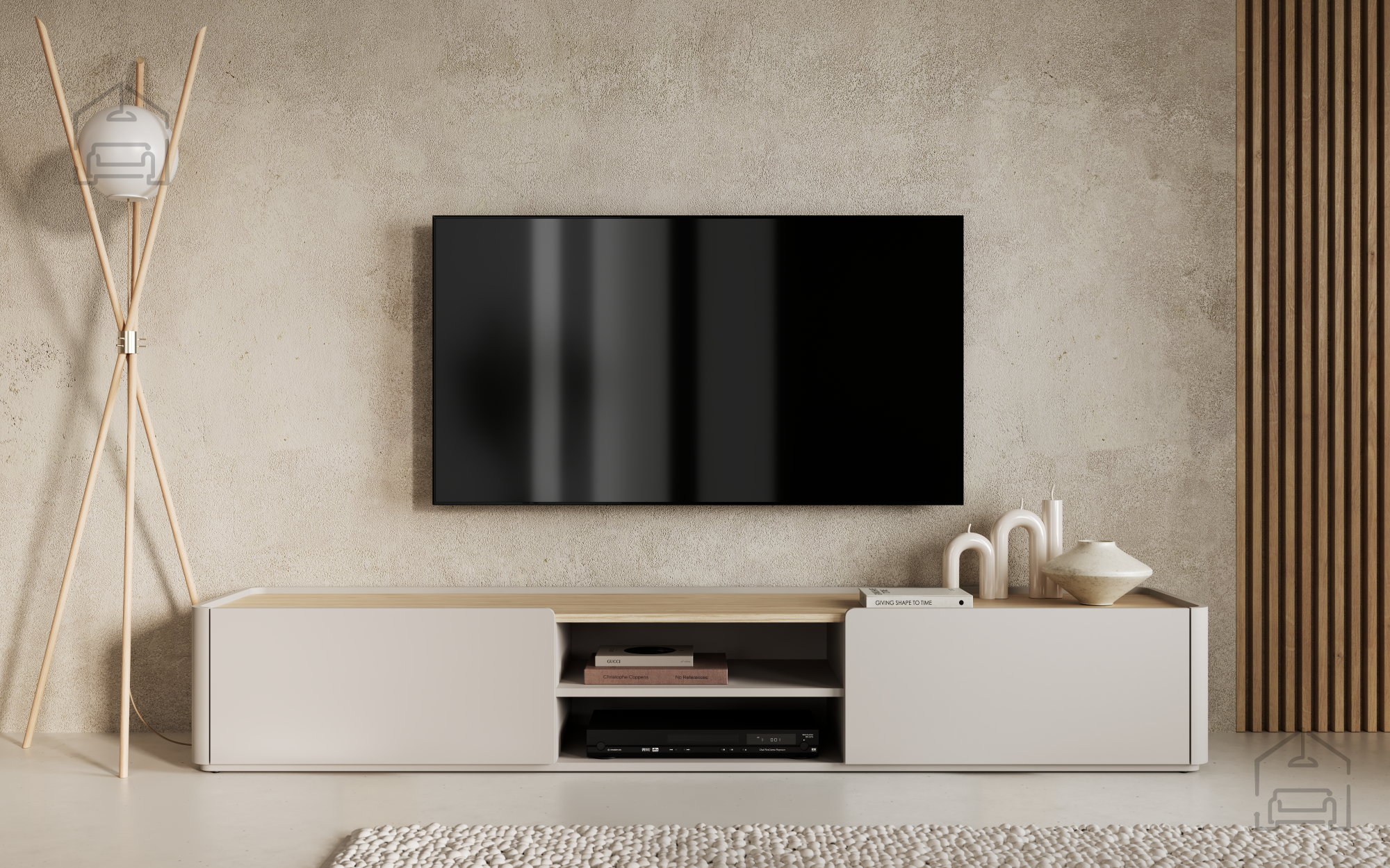 Die TV-Kommode Elivo 220 1K1SZ verbindet modernes Design, Funktionalität und hochwertige Verarbeitung, wie man sie von der Marke Bogart kennt. Die stilvolle Kombination aus matter Kaschmir-Oberfläche und warmem, geöltem Eichen-Dekor schafft einen harmonischen Kontrast, der dem Wohnraum eine behagliche, elegante und nordisch-ruhige Atmosphäre verleiht. Grifflose Fronten, klare Linien und sanft abgerundete Kanten sorgen für eine minimalistische Optik, die sich wunderbar mit verschiedensten modernen Einrichtungsstilen kombinieren lässt.