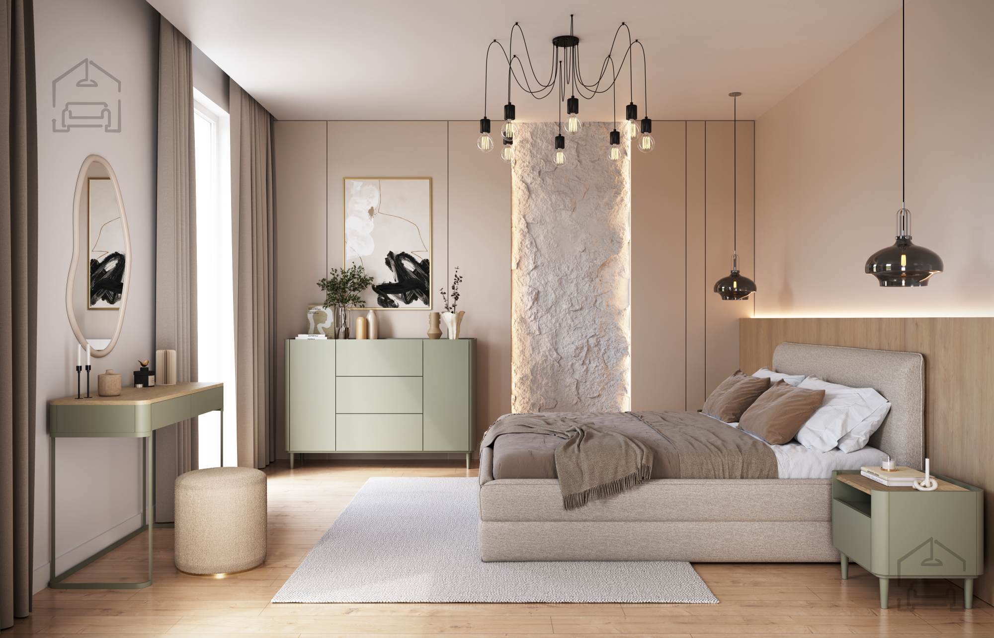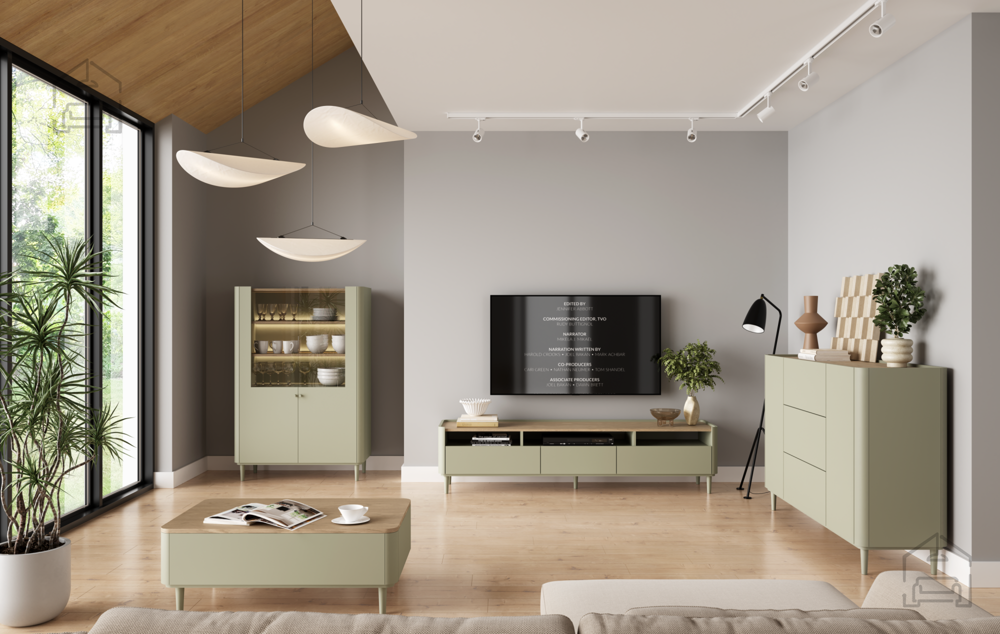 Elivo passt sowohl in moderne als auch in klassische Wohnstile. Die Farbkombination aus Eukalyptus und Baltic Dune Eiche schafft eine ruhige, warme Atmosphäre, die wunderbar mit neutralen Textilien oder metallischen Akzenten harmoniert. Durch das universelle Design eignet sich die Kollektion für verschiedene Räume – vom Wohnzimmer, wo die elegante Schlichtheit zur Geltung kommt, bis zum Schlafzimmer, wo sie Ruhe und Behaglichkeit betont.