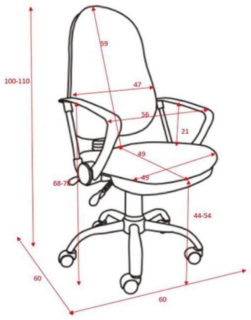 Die Abmessungen des Stuhls betragen 60x50x104 cm und bieten ein bequemes Sitzgefühl ohne einengend zu wirken. Die Rückenlehne ist so gestaltet, dass sie eine gute Unterstützung für den Rücken bietet, während Sitzbreite und -tiefe für Stabilität und eine gleichmäßige Gewichtsverteilung sorgen. Der Stuhl passt gut zu gängigen Schreibtischen und benötigt nur wenig Platz – ideal also auch für kleinere Büros oder Arbeitsecken zu Hause.