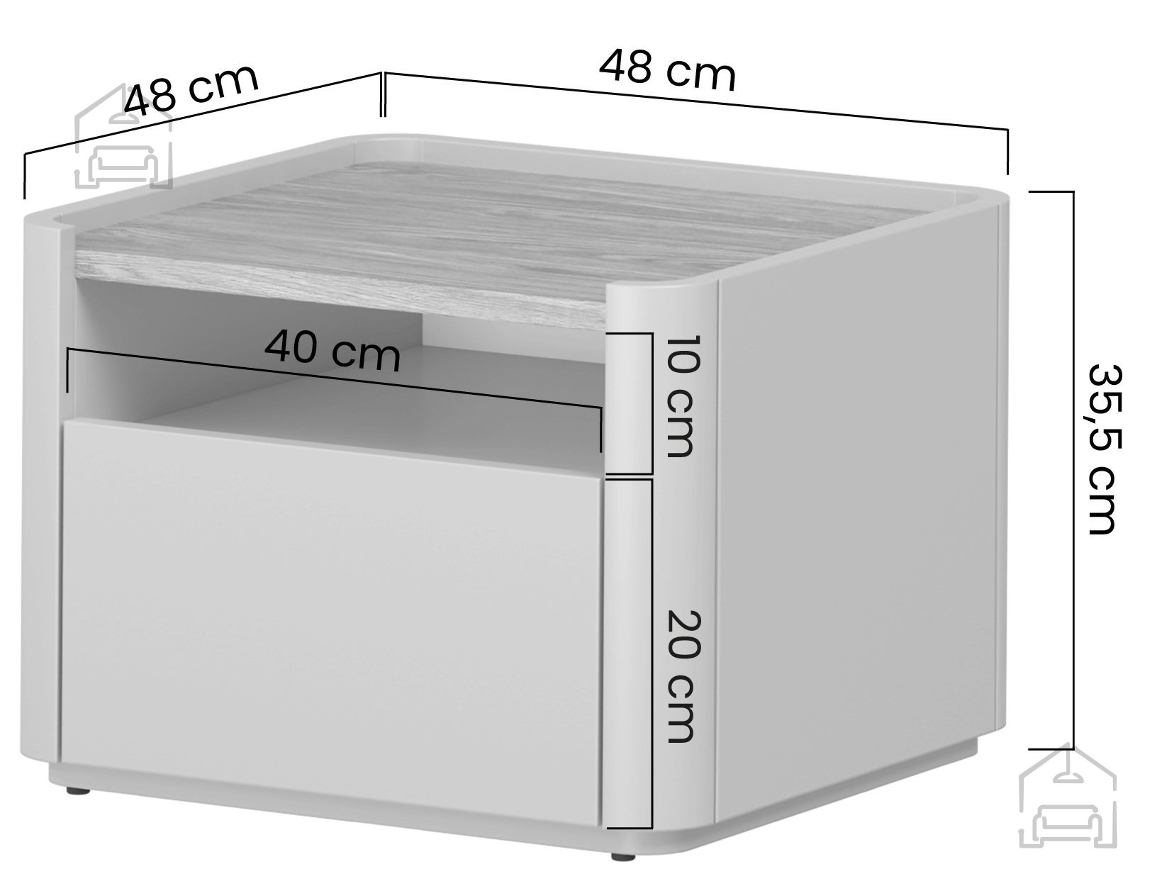 Melaminplatte 18 mm und MDF-Konstruktion: Nachtkästchen Elivo 50 1SZ – Bogart.