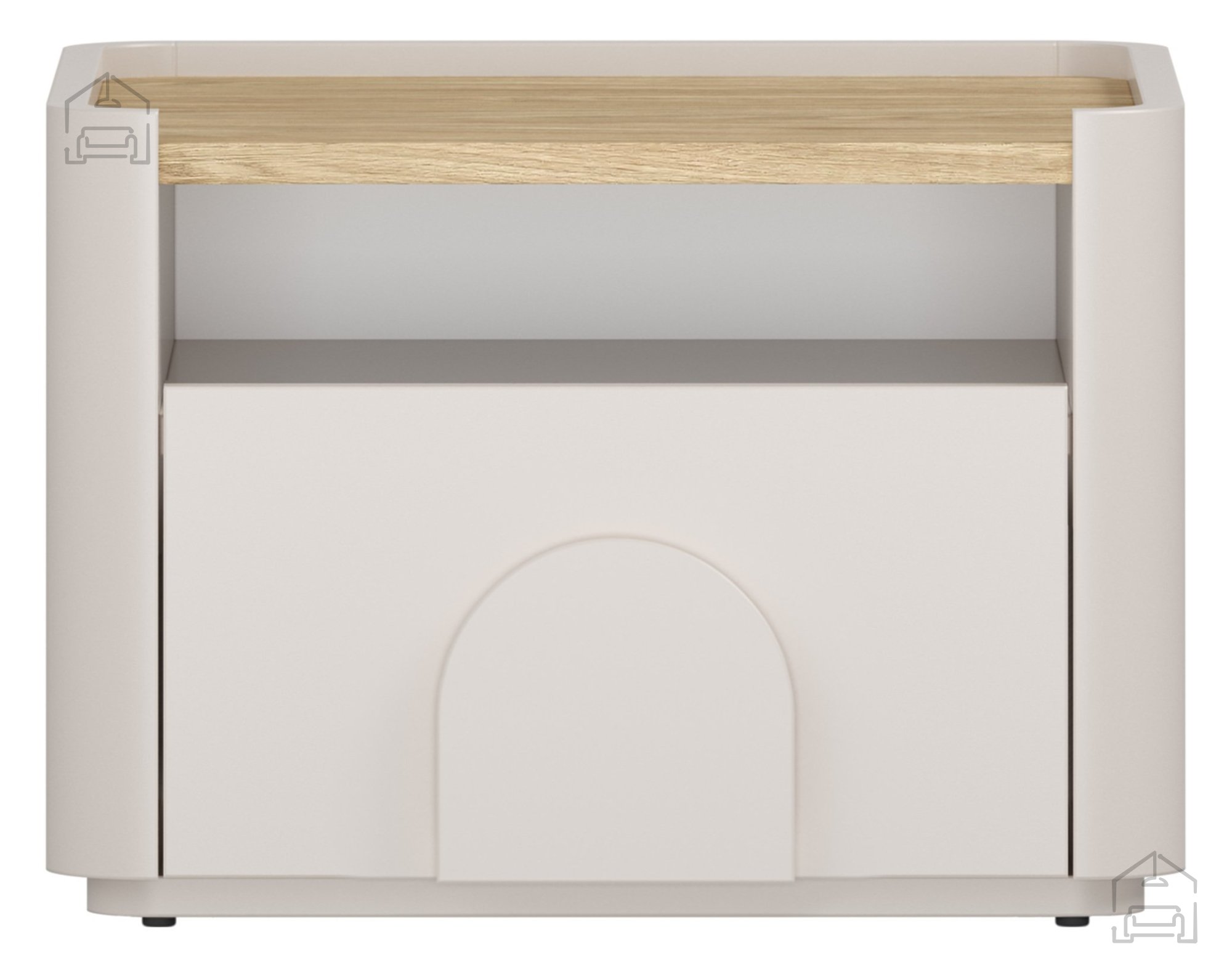 Das Nachtkästchen Amilio 50 1SZ der Marke Bogart überzeugt durch die edle Kombination aus Kaschmir und geölter Eiche, die dem Schlafzimmer eine warme und elegante Atmosphäre verleiht. Mit seinen Maßen von 48 × 35 × 48 cm passt es sowohl in moderne als auch in klassische Einrichtungen und bietet zugleich praktischen Stauraum für Alltagsgegenstände. Präzise Verarbeitung, hochwertige Materialien und sorgfältig abgestimmte Details sorgen für Langlebigkeit und ein harmonisches Erscheinungsbild.