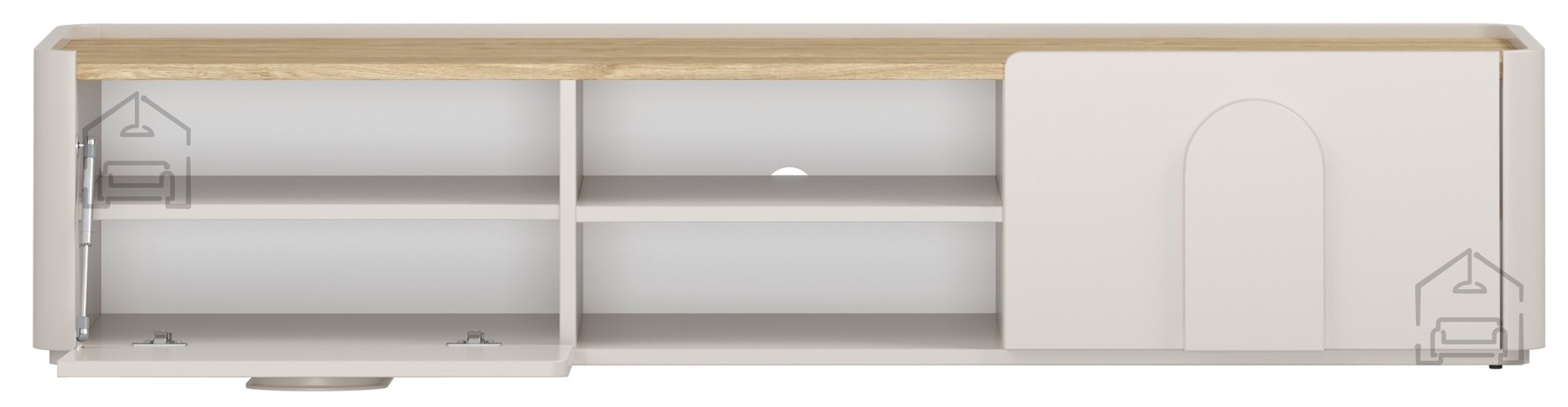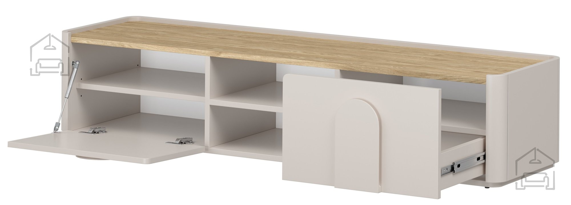 Die TV-Kommode Amilio 170 1K1SZ ist mit einem modernen Soft‑Close‑System ausgestattet, das ein sanftes und leises Schließen der Schubladen und der Klappe ermöglicht. Dieser Mechanismus verhindert ein Zuschlagen, verlängert die Lebensdauer des Möbels und sorgt für ein angenehmes Nutzungserlebnis.