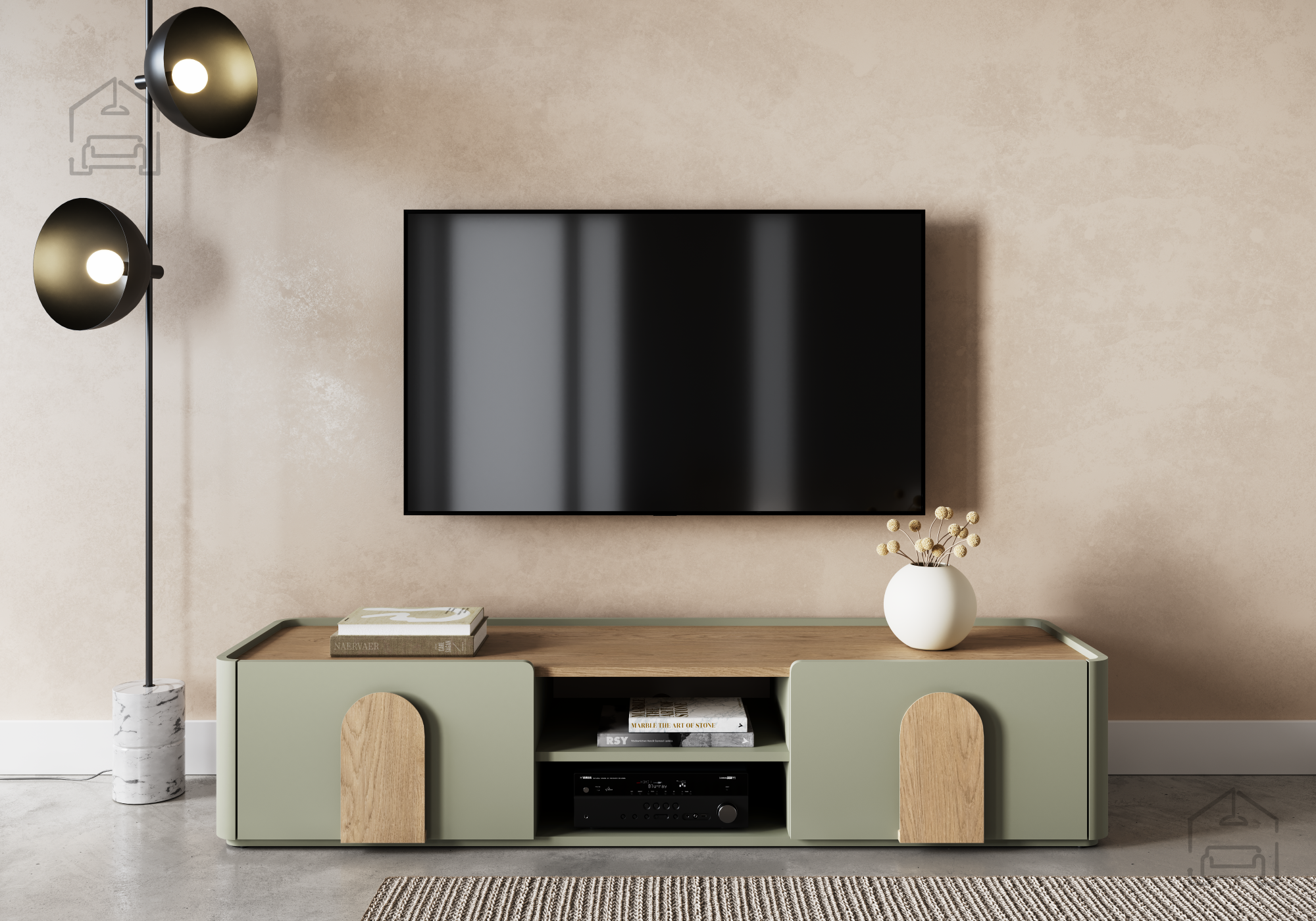 Die TV‑Kommode Amilio 170 1K1SZ – Bogart überzeugt mit ausgewogenen Proportionen und eignet sich sowohl für großzügige Wohnzimmer als auch für kleinere Räume. Die niedrige Höhe sorgt für einen sicheren Stand des Fernsehers und lässt den Raum gleichzeitig offen und luftig wirken. In Kombination mit weiteren Elementen der Amilio‑Serie oder ähnlichen Möbeln in natürlichen Farbtönen entsteht ein stimmiges Gesamtbild, das Funktionalität und Ästhetik vereint.