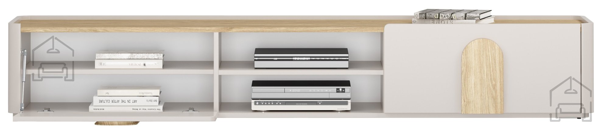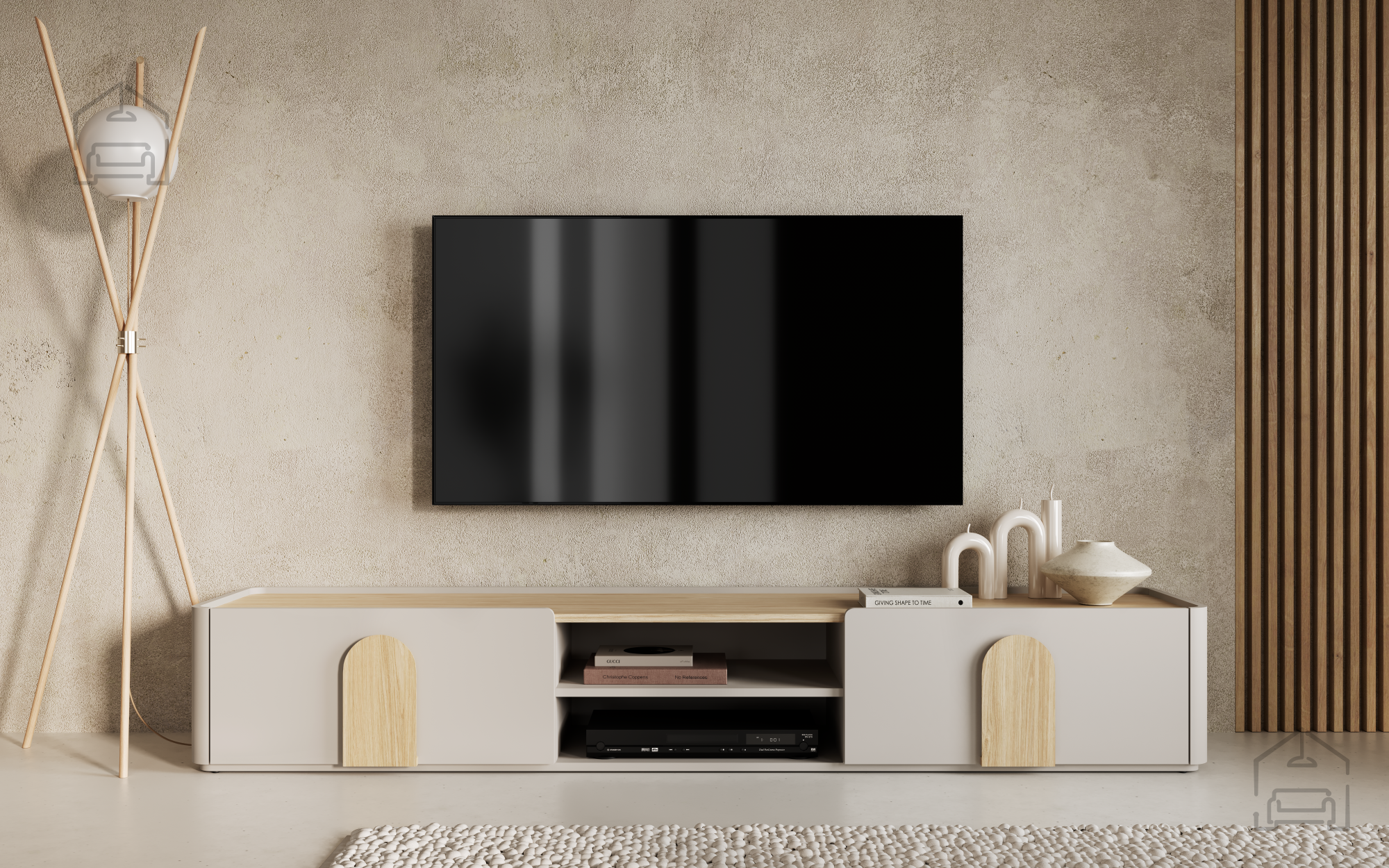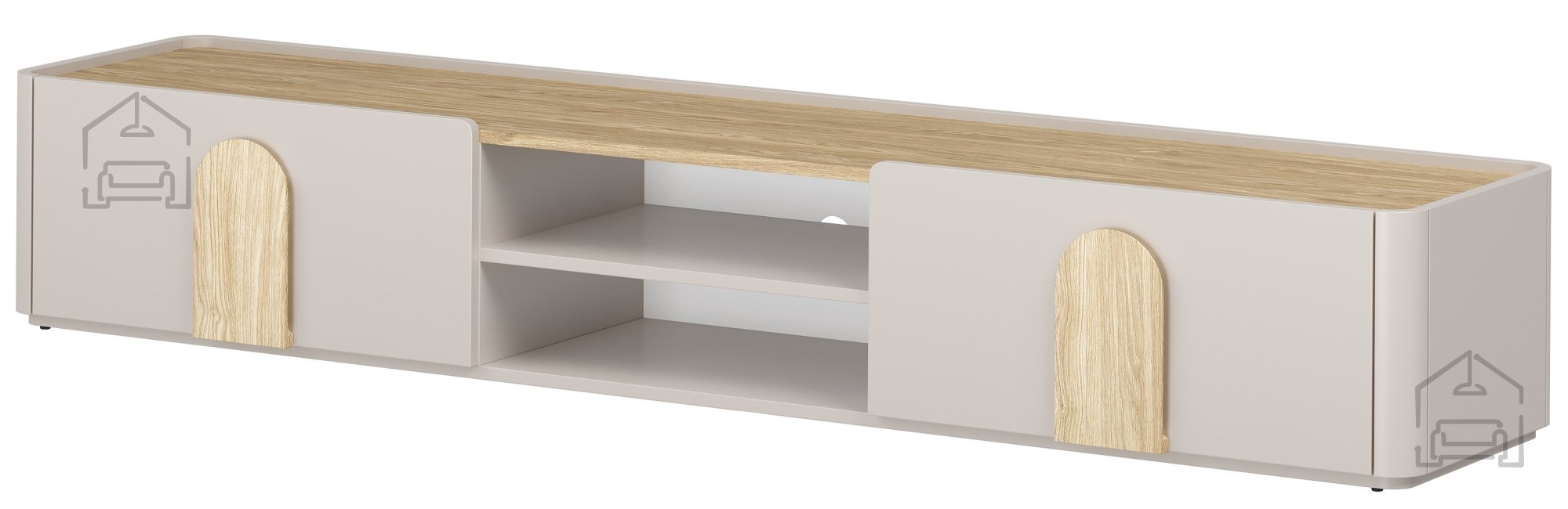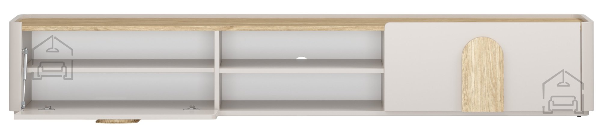 Die TV‑Kommode Amilio 220 1K1SZ der Marke Bogart vereint den eleganten skandinavischen Stil mit der hohen Funktionalität eines modernen Wohnzimmers. Ihr harmonisches Erscheinungsbild in den Farben Kaschmir und geölte Eiche wird durch Griffe in hellem Eichenholzton abgerundet und schafft so ein warmes, ausgewogenes Gesamtbild. Mit einer Länge von 220 cm, einer Tiefe von 48 cm und einer Höhe von 35,5 cm bietet sie ausreichend Platz für den Fernseher, Multimedia‑Geräte und Zubehör – ohne den Raum optisch zu überladen.