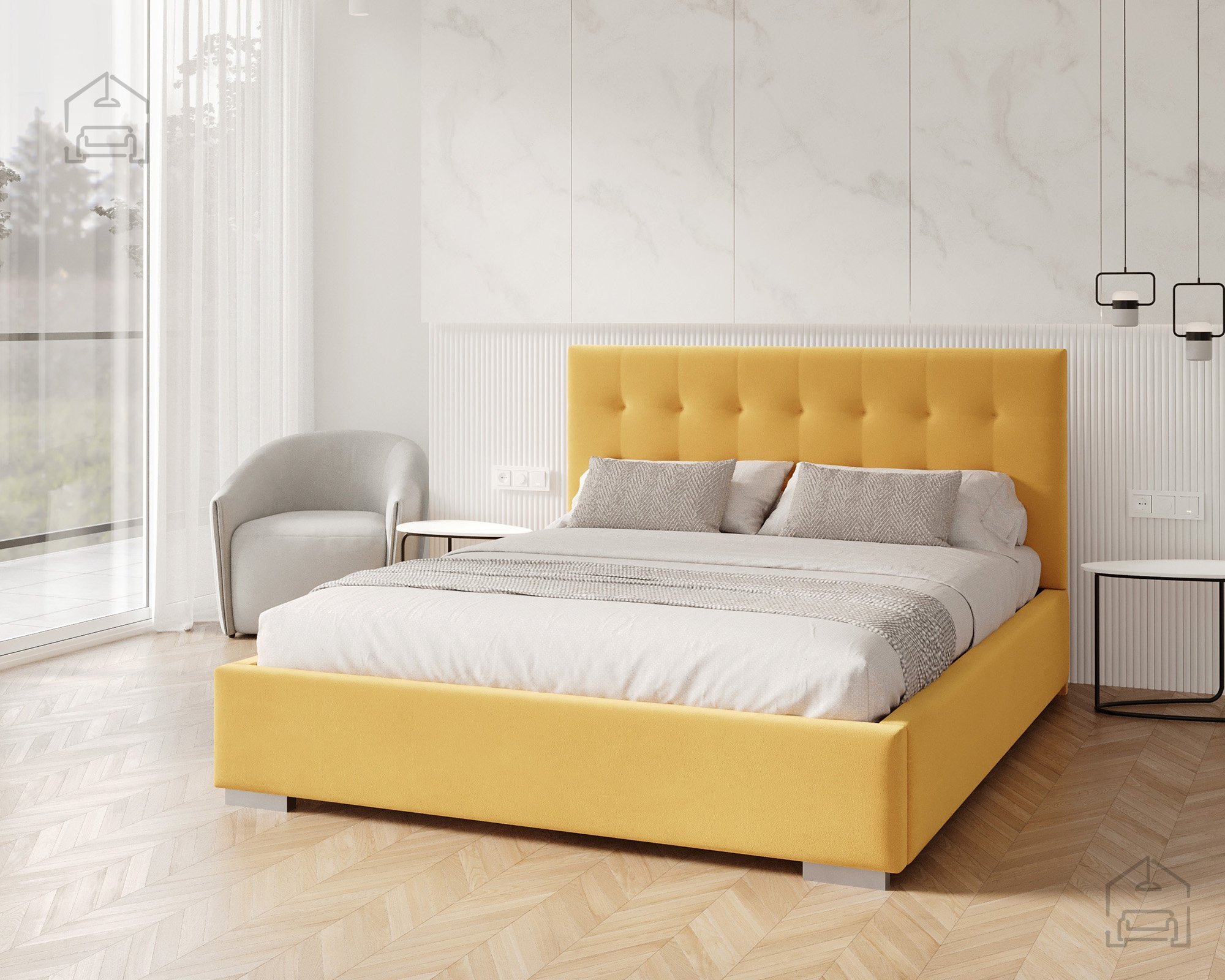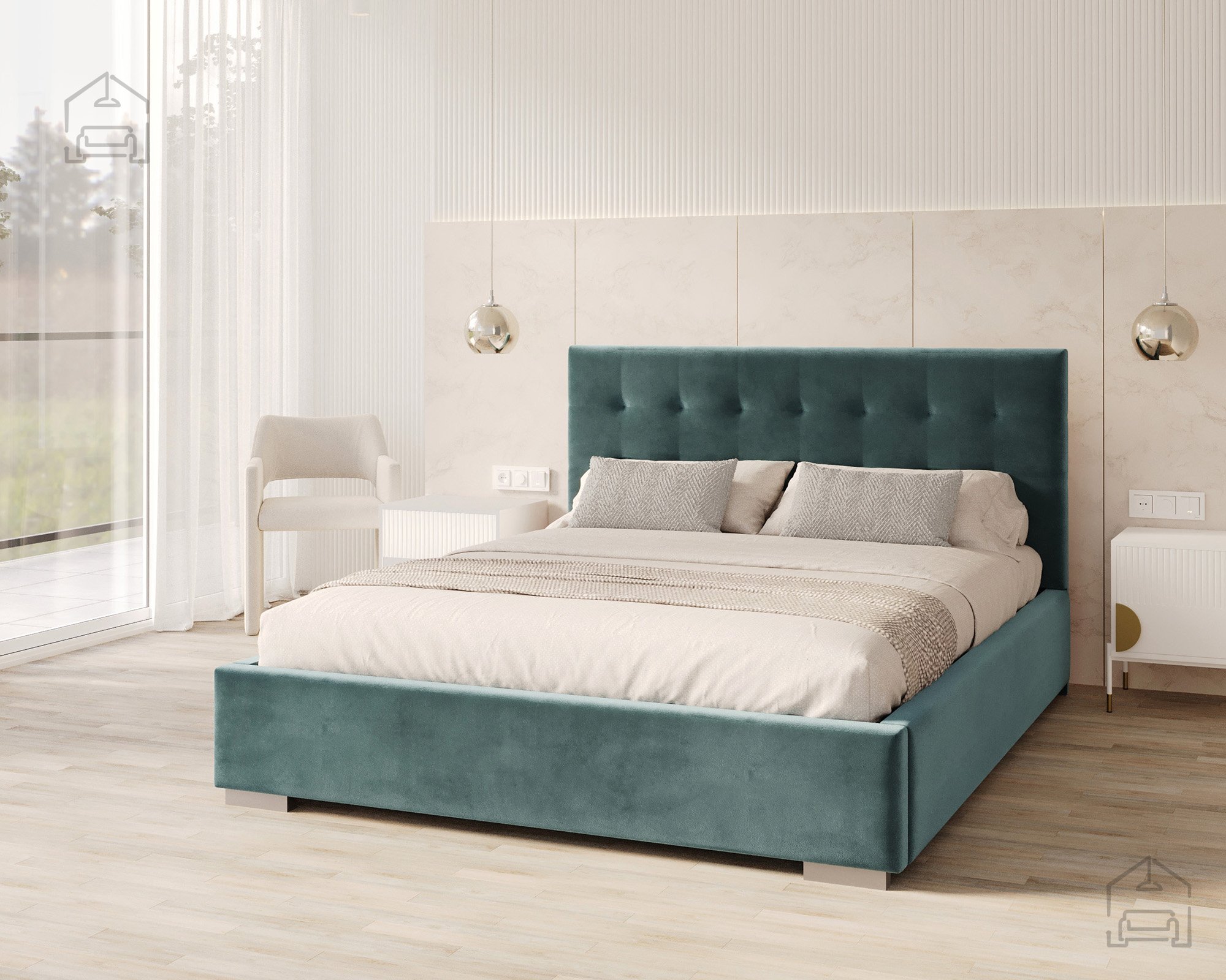 Das Bett Lucerna überzeugt mit einem gepolsterten Kopfteil, das dem Bett eine elegante Note verleiht und gleichzeitig eine bequeme Stütze beim Lesen oder Fernsehen bietet. Die harmonische Gestaltung mit klaren Linien und der sanften Stoffstruktur schafft eine gemütliche Atmosphäre im Schlafzimmer. Stilvolle Bettfüße runden das Erscheinungsbild ab und sorgen für Stabilität, ohne die Leichtigkeit des Designs zu beeinträchtigen.