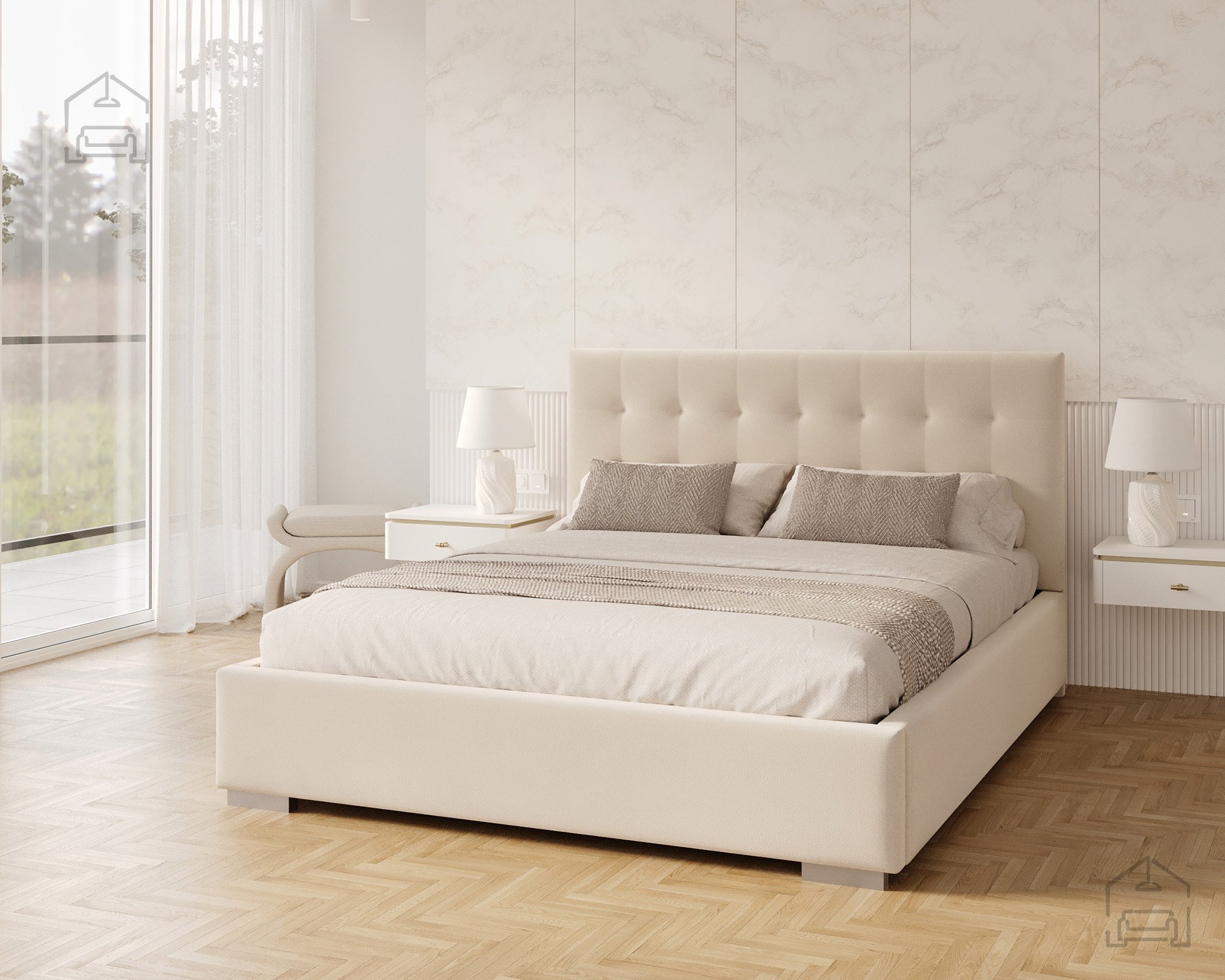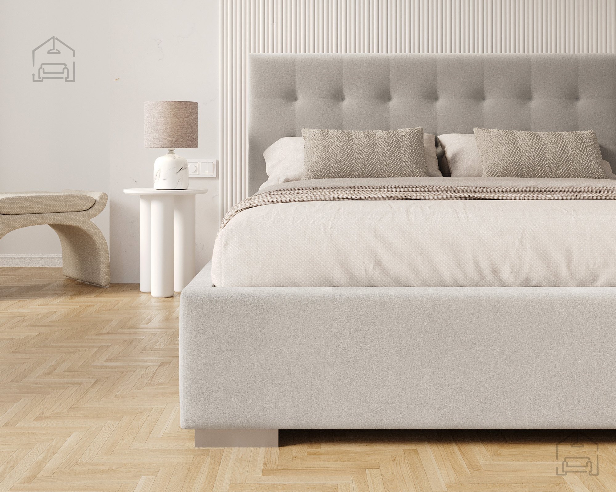 Auf dem Foto ist das Bett im Stoff Paris Light Grey zu sehen – ein hellgrauer Ton, der jedem Raum eine elegante und ruhige Atmosphäre verleiht. Der Stoff fühlt sich angenehm an und ist gleichzeitig robust genug für den täglichen Gebrauch. Das Modell Lucerna ist in mehreren Farben erhältlich, sodass es sich leicht an unterschiedliche Schlafzimmerstile – von modern bis klassisch – anpassen lässt.