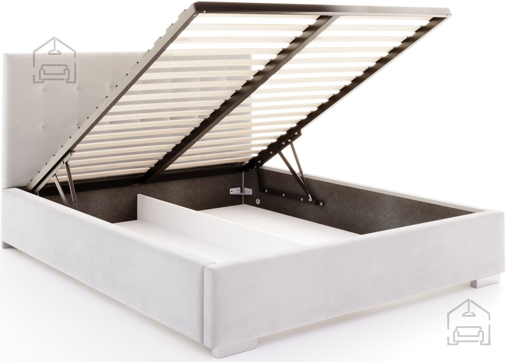 Das größte Plus der Lucerna ist ihr Hebemechanismus aus Holz, der ein einfaches und stabiles Anheben der Liegefläche sowie den Zugang zu einem großzügigen Bettkasten ermöglicht. Dieser versteckte Stauraum eignet sich ideal für Bettwäsche, Decken oder saisonale Kleidung – besonders nützlich in kleineren Schlafzimmern. Der Hebemechanismus ist so konstruiert, dass er eine sichere Handhabung und eine lange Lebensdauer gewährleistet.