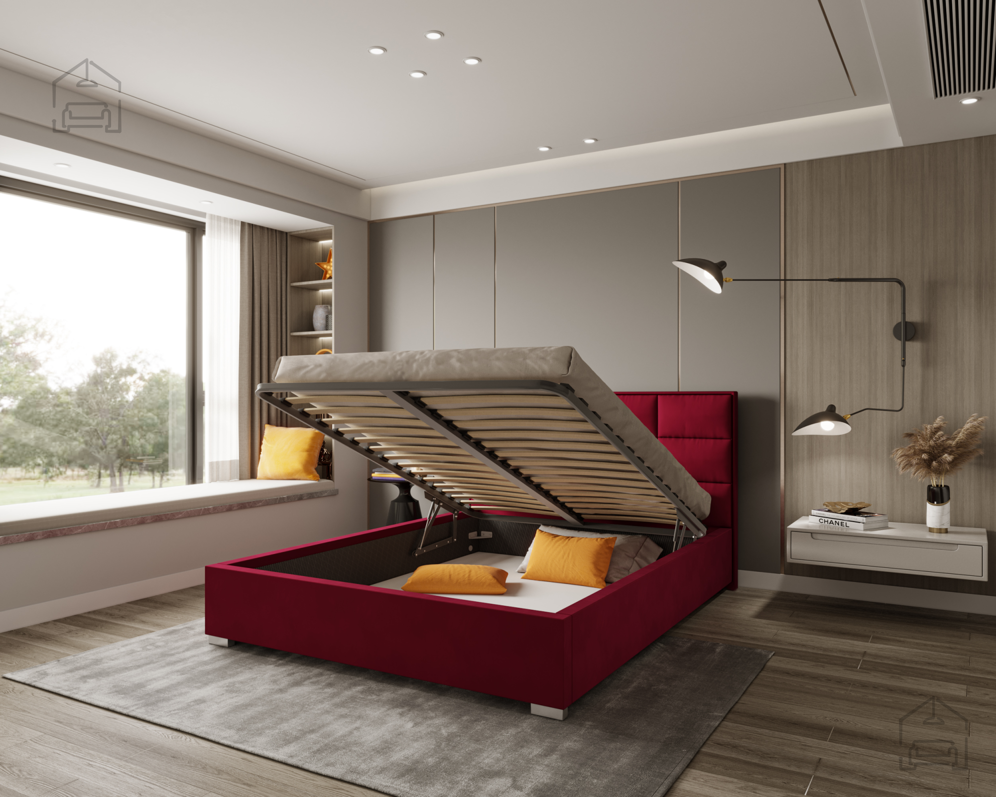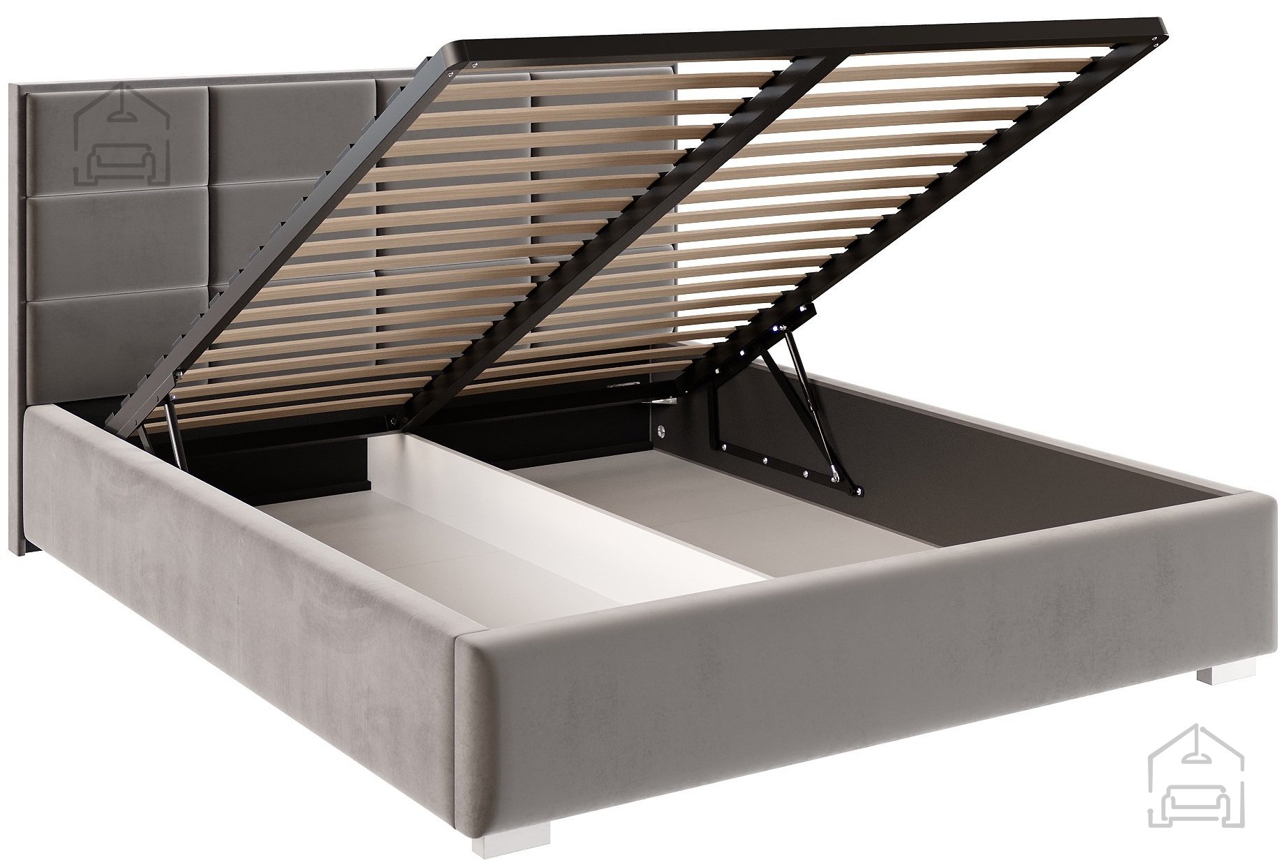 Das Modell Apollo bietet weit mehr als nur eine bequeme Liegefläche – unter der Matratze verbirgt sich ein großer Bettkasten, in dem Decken, Kissen oder saisonale Textilien ordentlich verstaut werden können. Das Stauraumvolumen ist optimal genutzt, was besonders in kleineren Schlafzimmern oder Studios praktisch ist. Der Hebemechanismus aus Holz sorgt für ein leichtes Öffnen der Liegefläche, ohne großen Kraftaufwand – so bleibt die tägliche Handhabung angenehm und sicher.