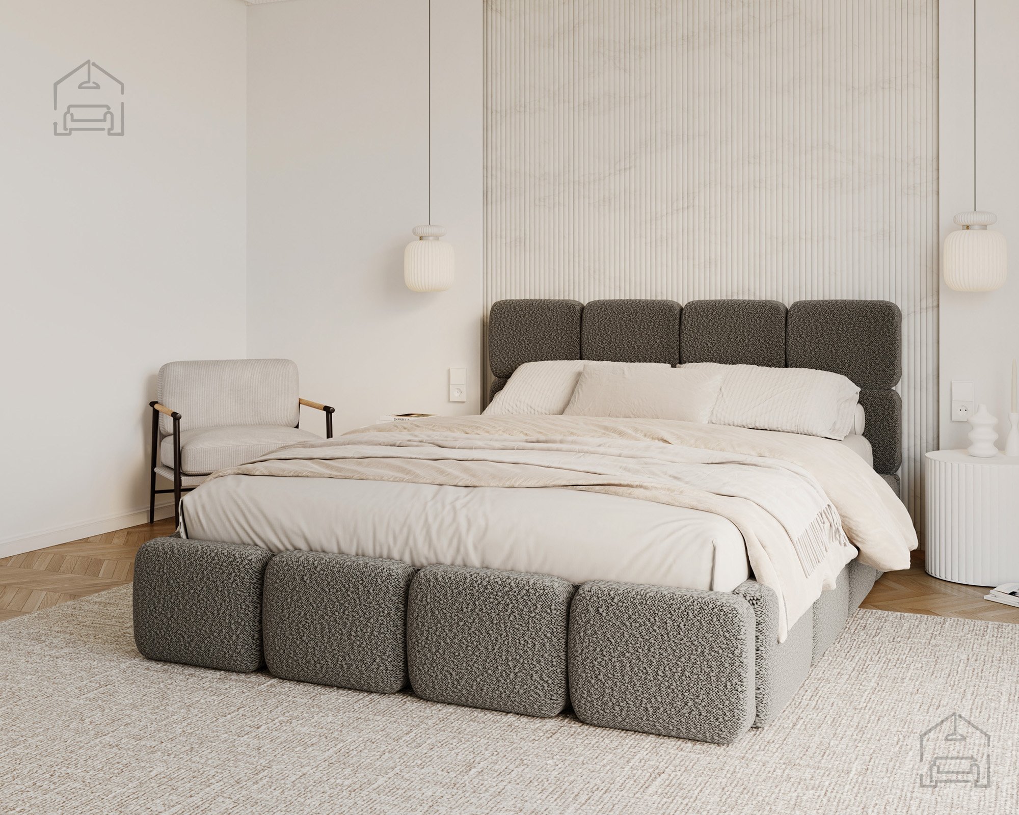 Das Bett Delicato ist nicht nur funktional, sondern auch ein optisches Highlight im Schlafzimmer. Das gepolsterte Kopfteil setzt einen eleganten Akzent und bietet gleichzeitig bequeme Unterstützung beim Lesen oder Fernsehen. Der weiche Rahmen vermittelt ein angenehmes Gefühl, während die ausgewogenen Linien und die harmonische Farbgestaltung sowohl zu modernen als auch zu klassischen Einrichtungen passen.