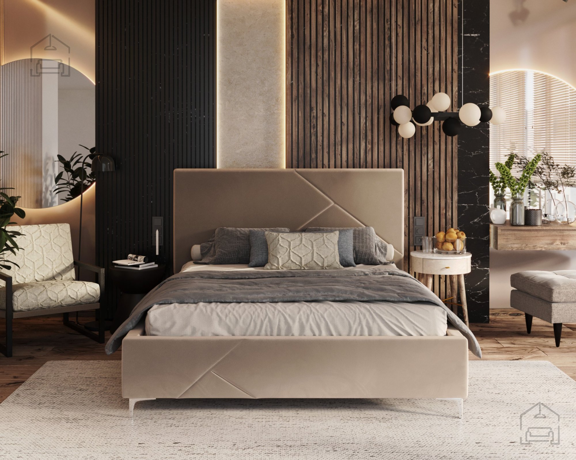 Das Modell Navaro ist ideal für alle, die Eleganz, Komfort und Alltagstauglichkeit miteinander verbinden möchten. Der integrierte Hebemechanismus ermöglicht eine effiziente Raumnutzung, während das breite Kopfteil und der gepolsterte Rahmen für ein harmonisches Gesamtbild im Schlafzimmer sorgen. Dank der wählbaren Größen und Stoffe lässt sich das Bett mühelos in verschiedenste Einrichtungsstile integrieren – von modern bis klassisch.