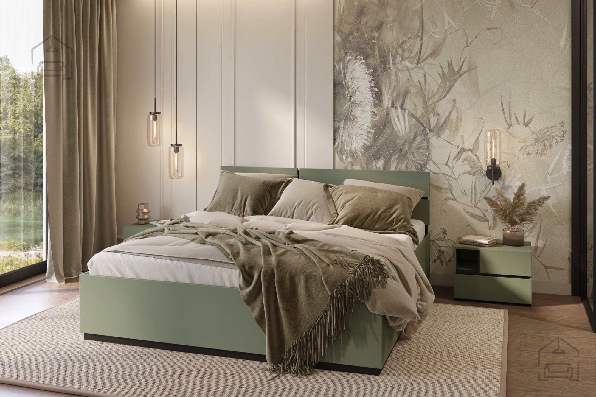 Elegante Kombination aus Grün und Schwarz: Schlafzimmer Cross S – Helvetia Meble.