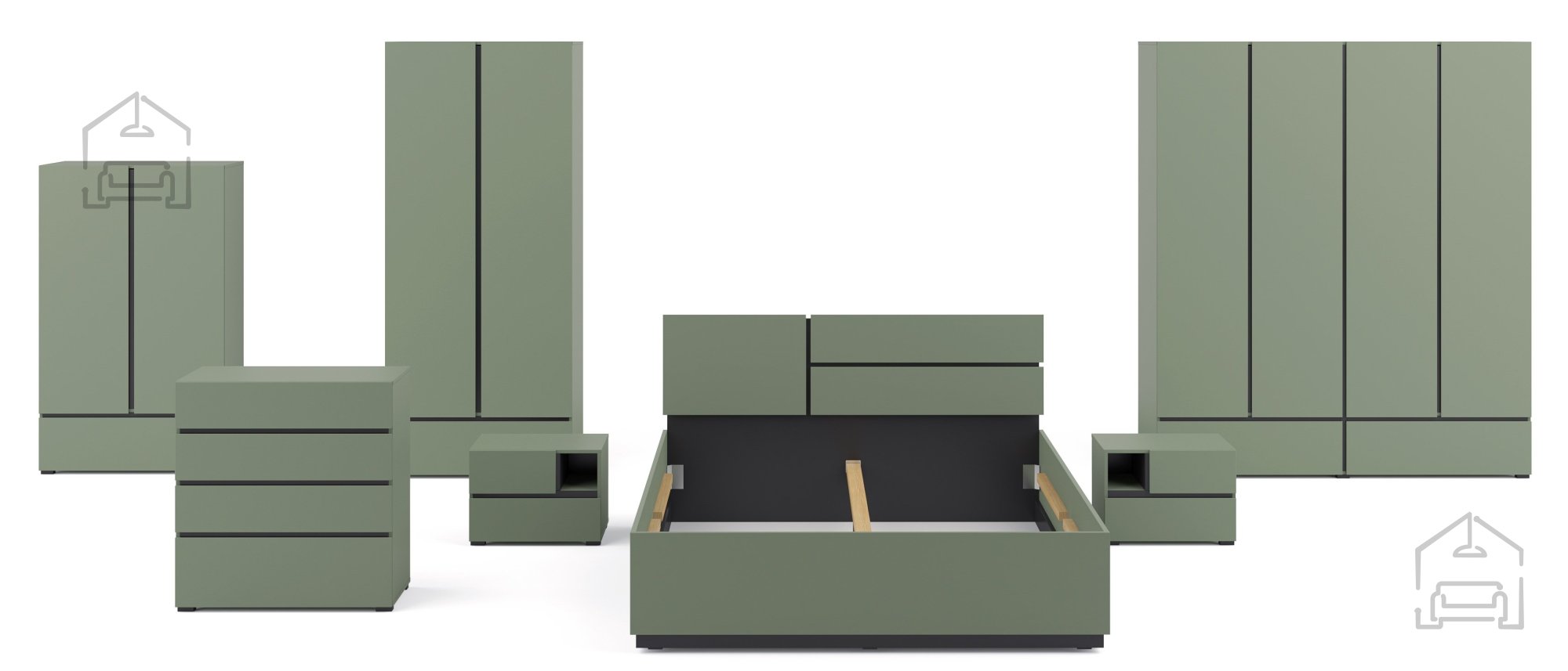 Elegante Kombination aus Grün und Schwarz: Kommode Cross S – Helvetia meble.