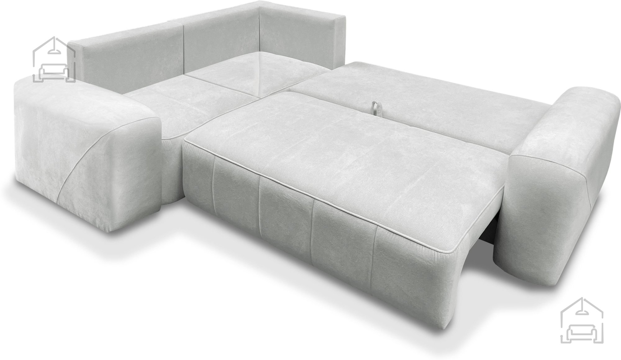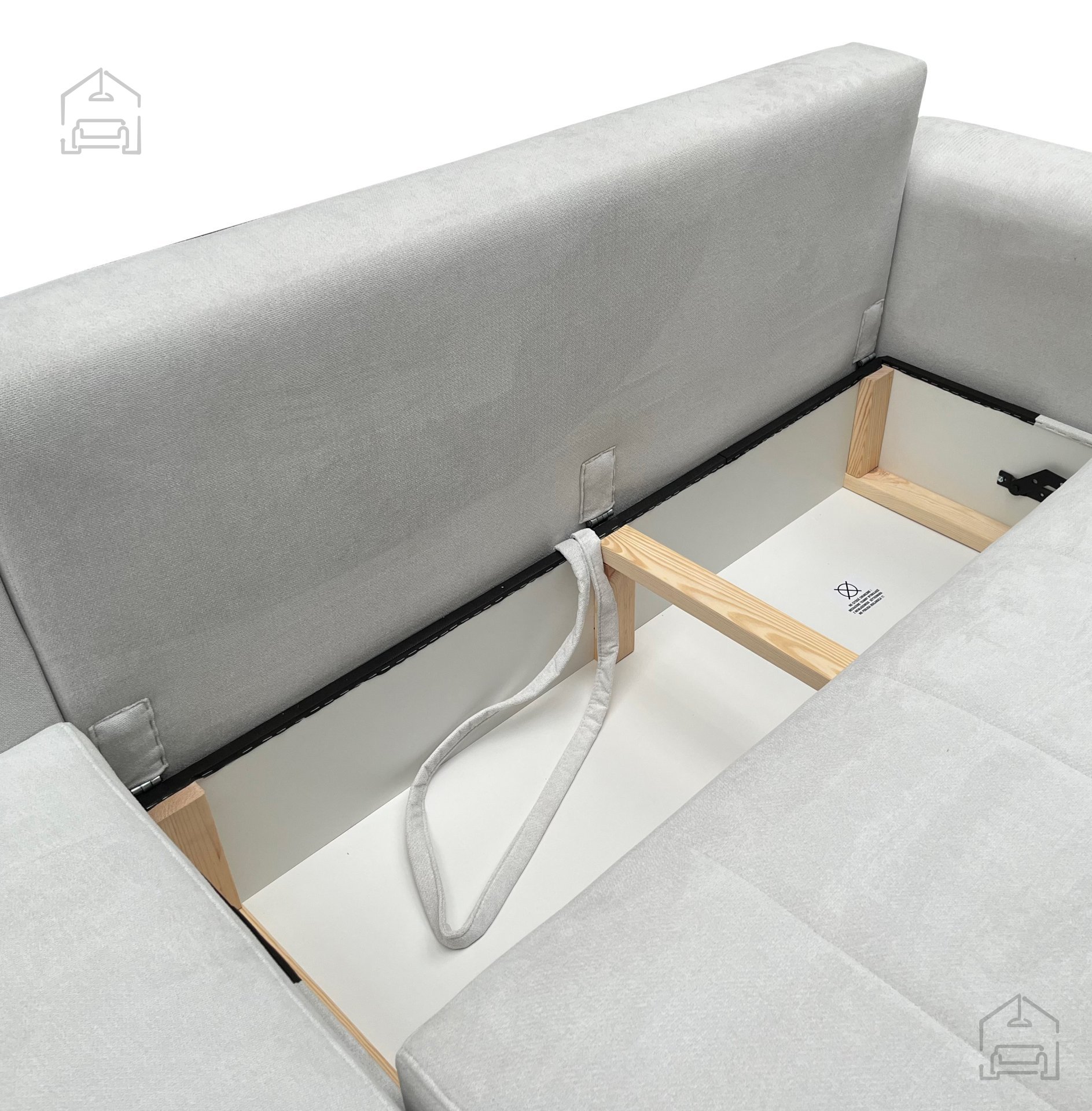 Das Modell Novelo II ist mit einem zuverlässigen Euro-Mechanismus ausgestattet, der das Ausziehen zu einem Bett einfach und rasch ermöglicht. Im ausgezogenen Zustand entsteht eine komfortable Liegefläche von 205x125 cm, ideal für zwei Personen. Zusätzlich verfügt die Garnitur über einen Bettkasten, in dem Sie Decken, Kissen oder Bettwäsche ordentlich verstauen können – eine praktische Lösung für mehr Ordnung im Raum. So gewinnen Sie an Funktionalität, ohne auf ein ansprechendes Design zu verzichten.